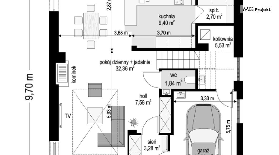 Łączna powierzchnia tzw. pomieszczeń użytkowych. Przede wszystkim nie zalicza się do niej powierzchni garażu, nieużytkowego strychu, piwnicy, kotłowni.