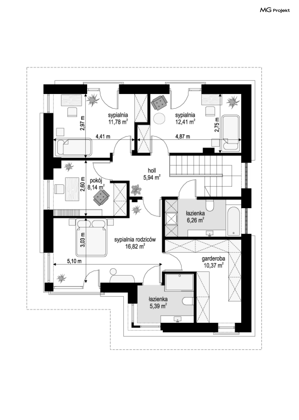 Zapoznaj się ze szczegółowymi rysunkami rzutów kondygnacji w PDF dla tego projektu.