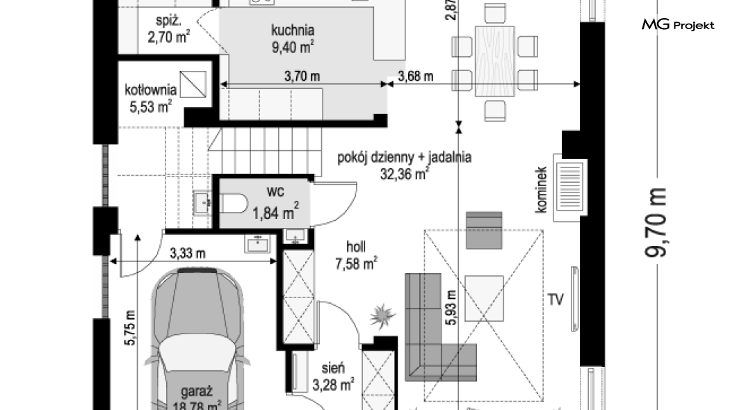 Obejmuje koszt wszystkich robót stanu surowego, wykonania instalacji wewnętrznych oraz robót wykończeniowych.