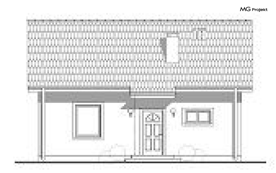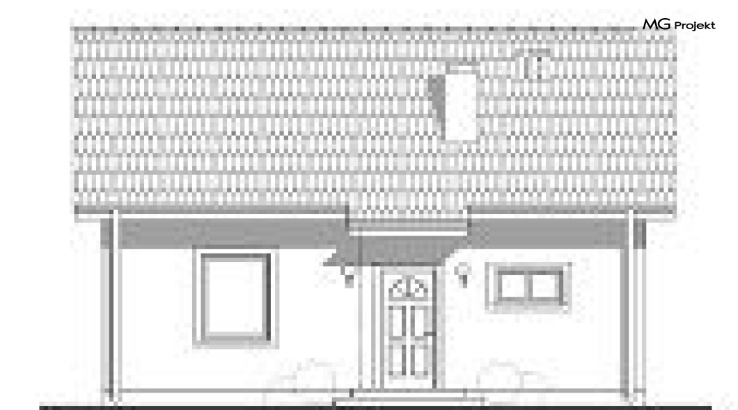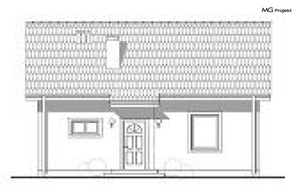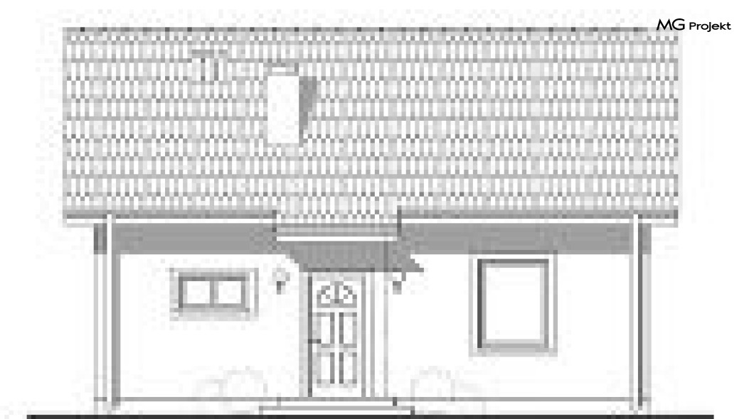 Wariant projektu ze zlikwidowanym WC - wewnętrzna ściana nośna w linii prostej (likwidacja okienka od WC). W powiększonej sypialni - przeniesienie okna na ścianę frontową budynku. Likwidacja kominka. Likwidacja elementów drewnianych elewacji.