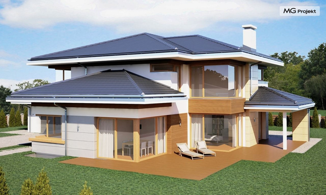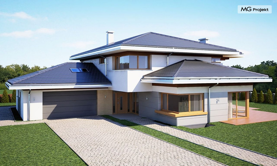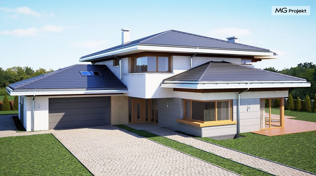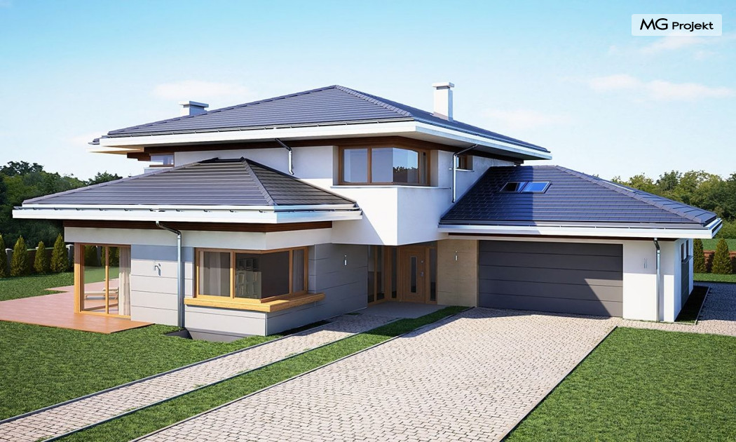 Koszt wzniesienia budynku wraz z pokryciem dachu i stolarką zewnętrzną (okna i drzwi). Bez instalacji, ocieplenia i robót wykończeniowych.