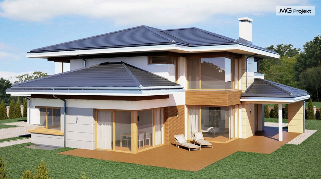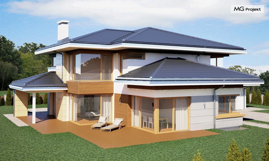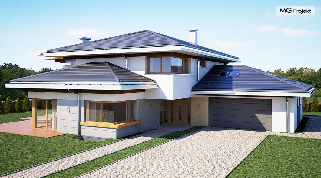 Wysokość wyznaczona od poziomu terenu do najwyżej położonej części dachu (np. kalenicy), zwykle bez uwzględnienia kominów.
