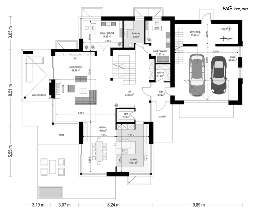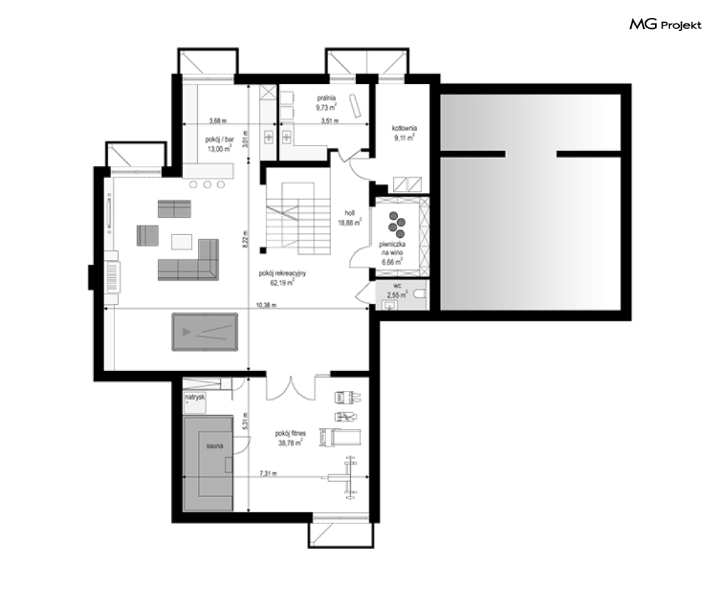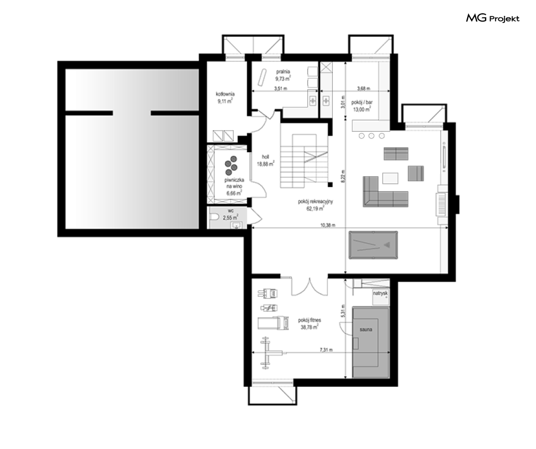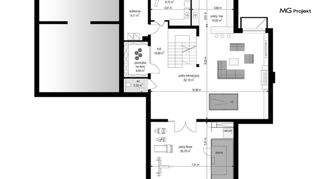 Łączna powierzchnia tzw. pomieszczeń użytkowych. Przede wszystkim nie zalicza się do niej powierzchni garażu, nieużytkowego strychu, piwnicy, kotłowni.