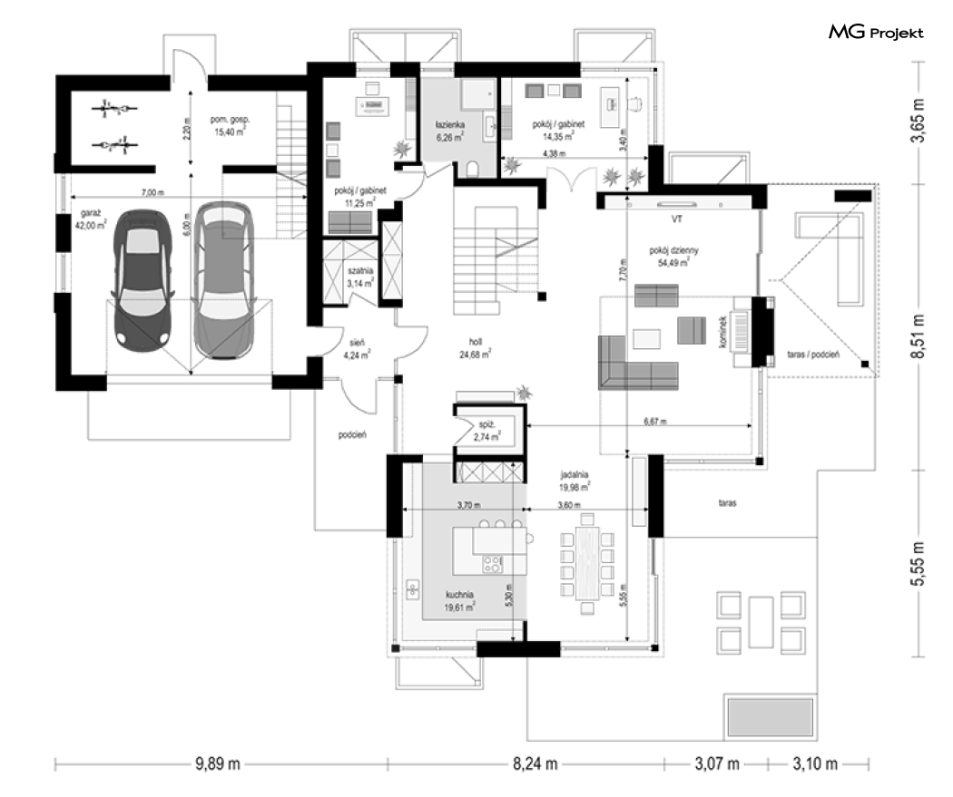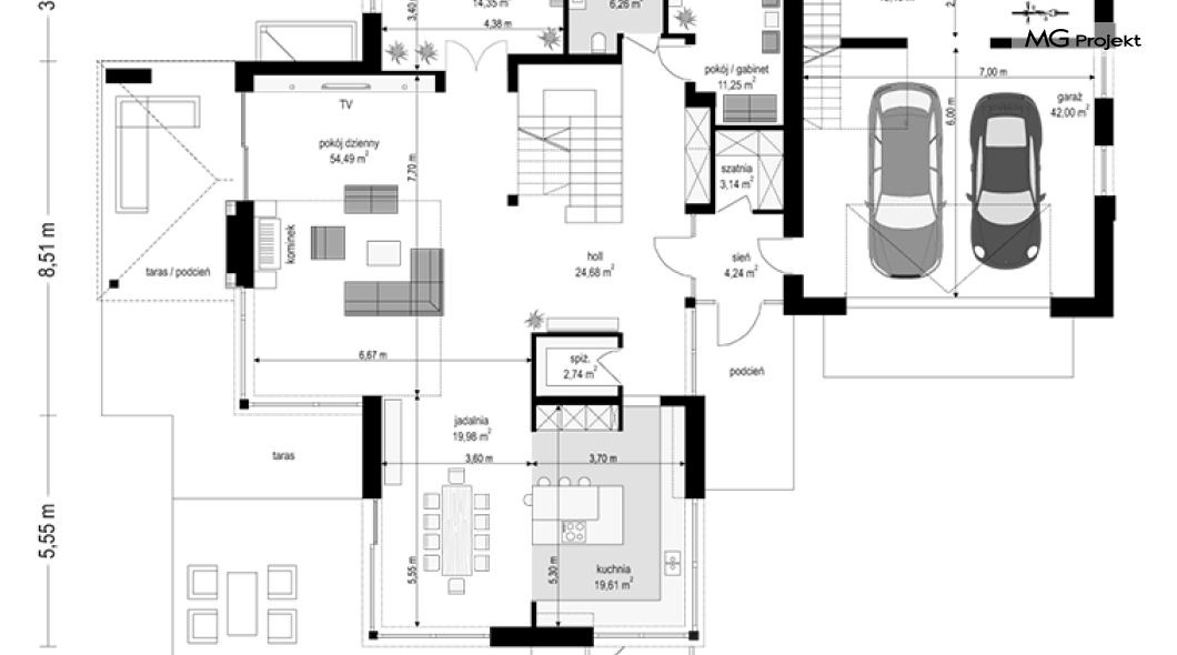Obejmuje koszt wszystkich robót stanu surowego, wykonania instalacji wewnętrznych oraz robót wykończeniowych.