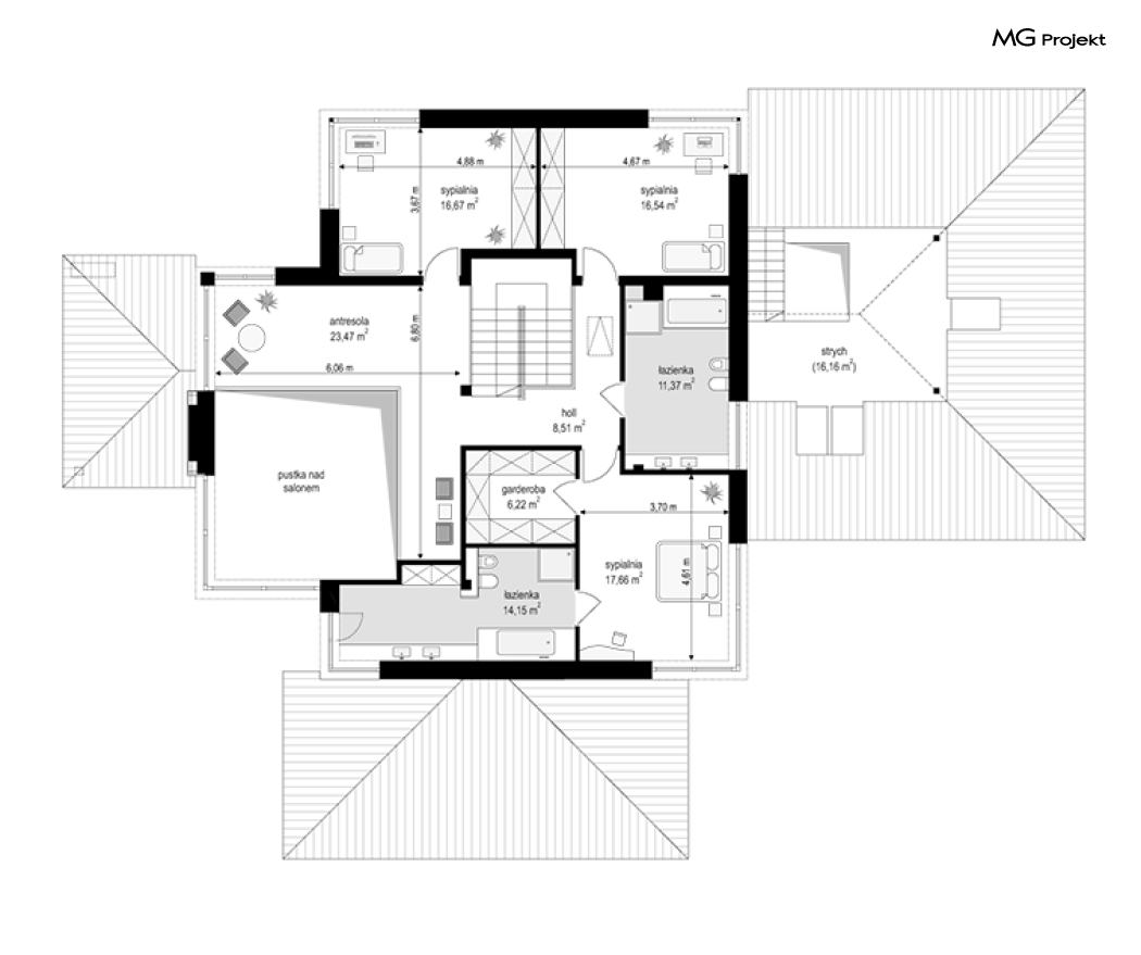 Zapoznaj się ze szczegółowymi rysunkami rzutów kondygnacji w PDF dla tego projektu.