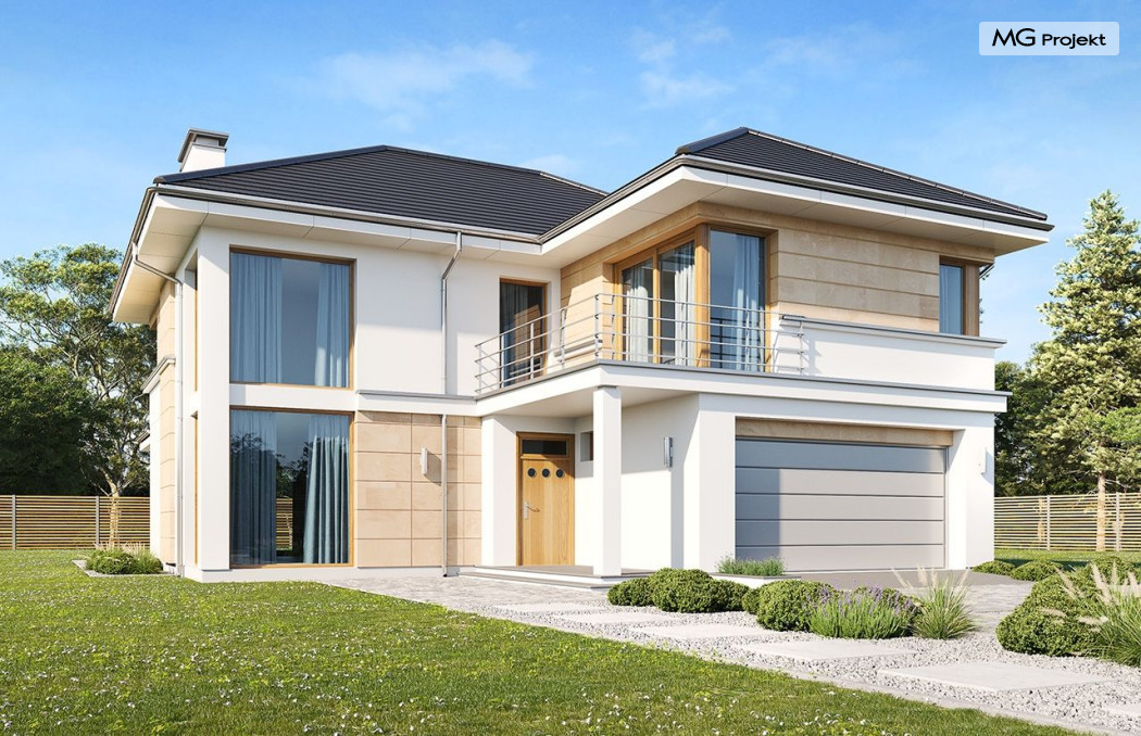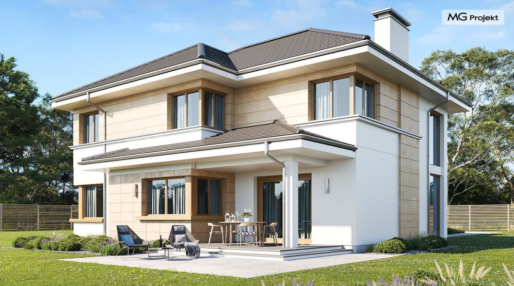 Koszt wzniesienia budynku wraz z pokryciem dachu i stolarką zewnętrzną (okna i drzwi). Bez instalacji, ocieplenia i robót wykończeniowych.