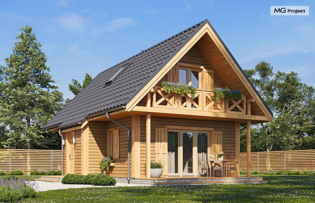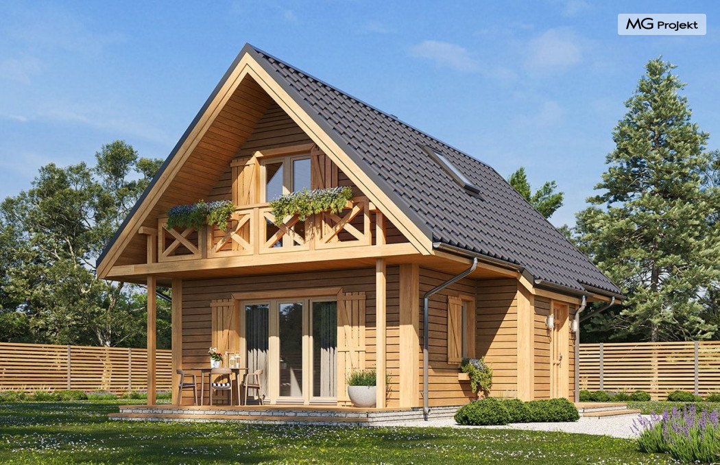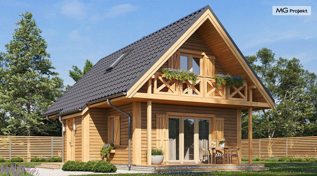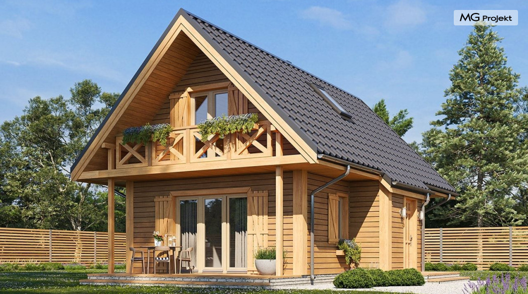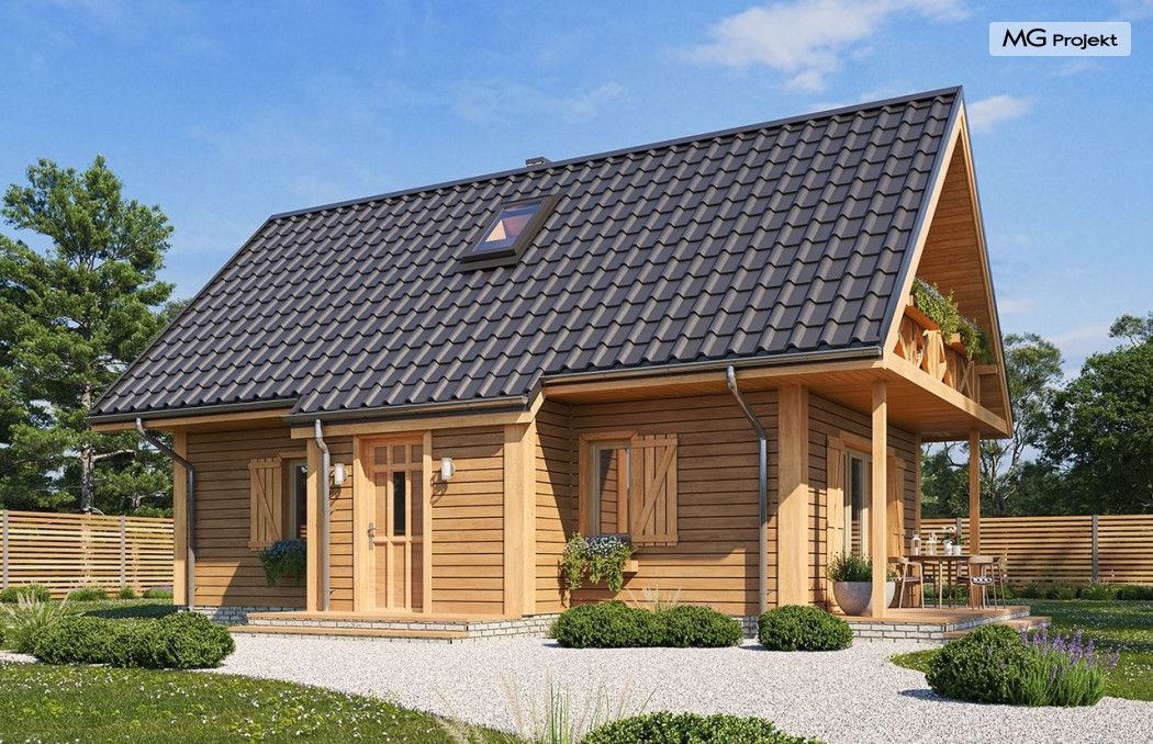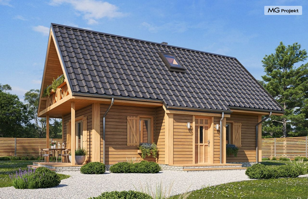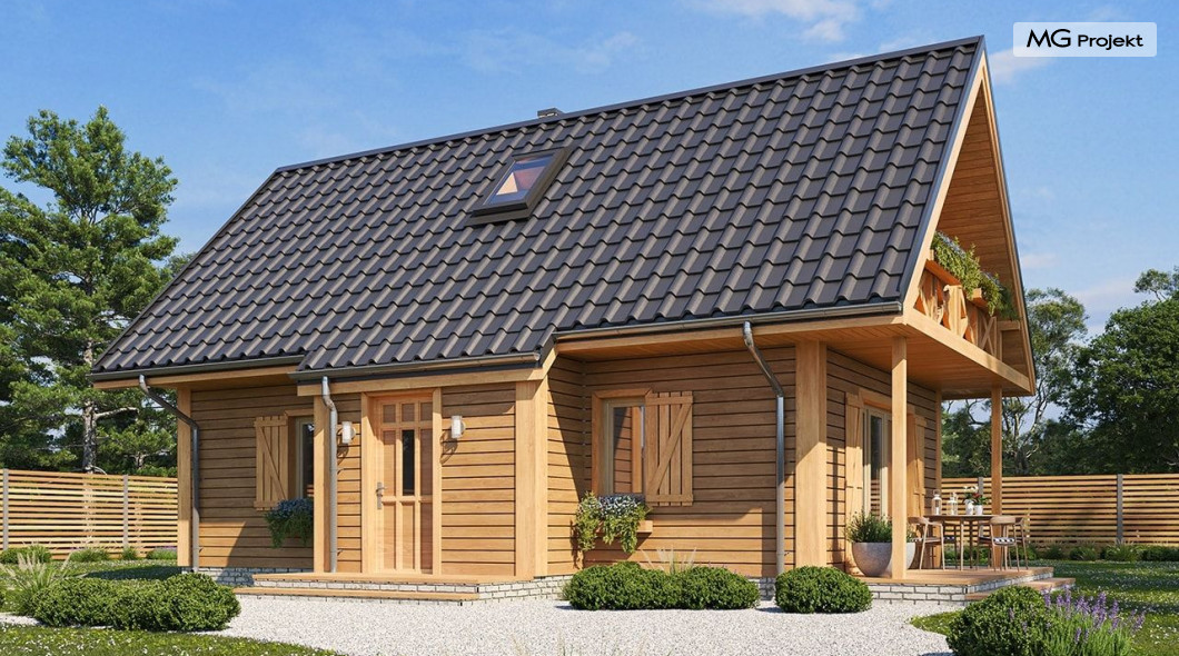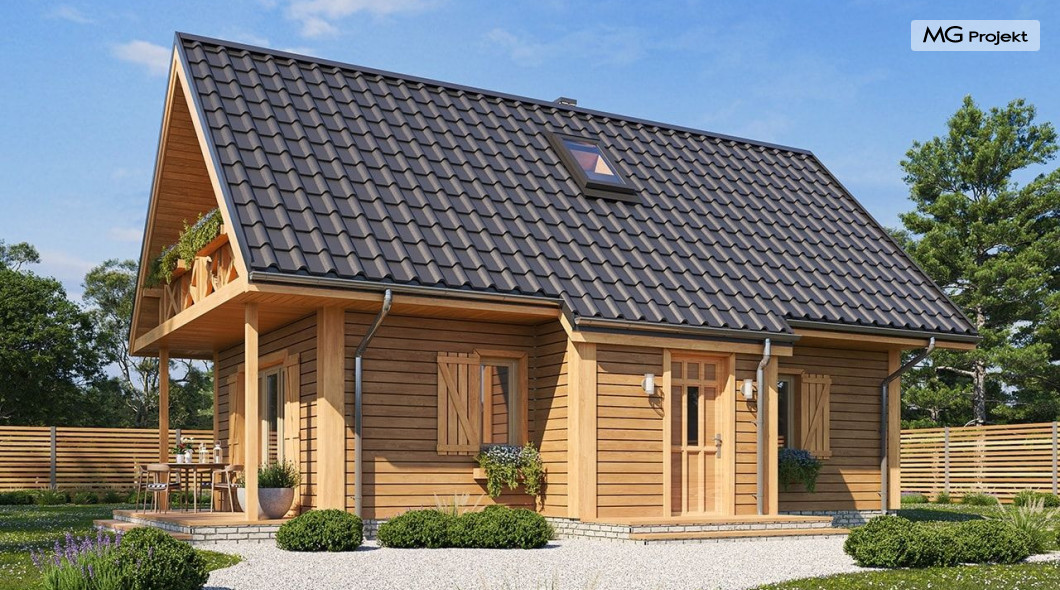 Wariant poszerzony o 1 m, łazienka na poddaszu, ogrzewanie gazowe.