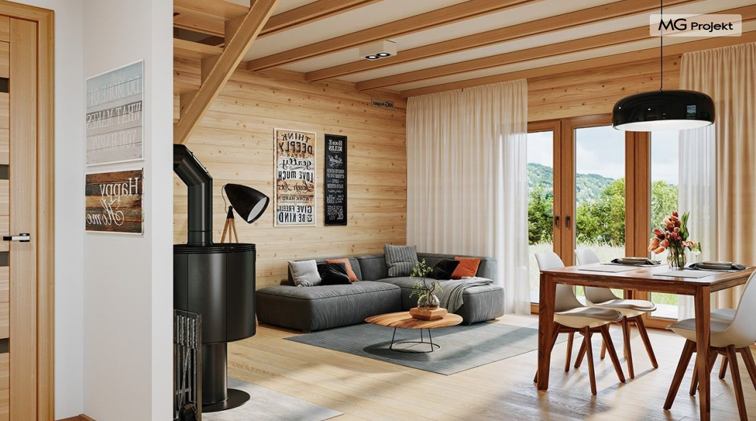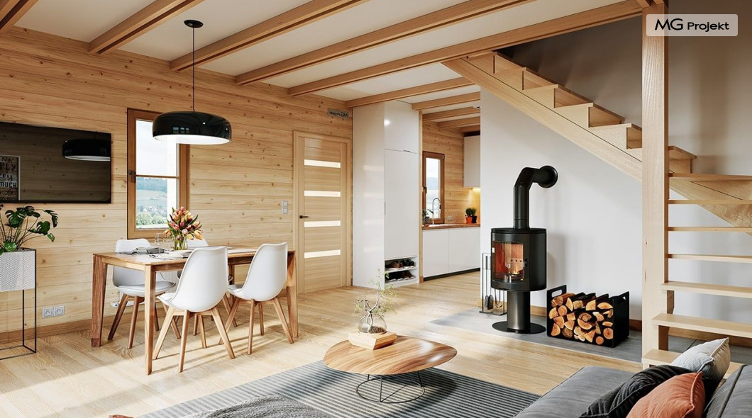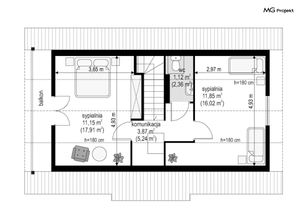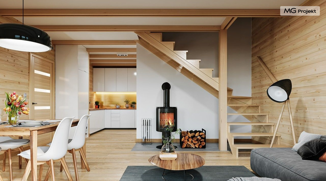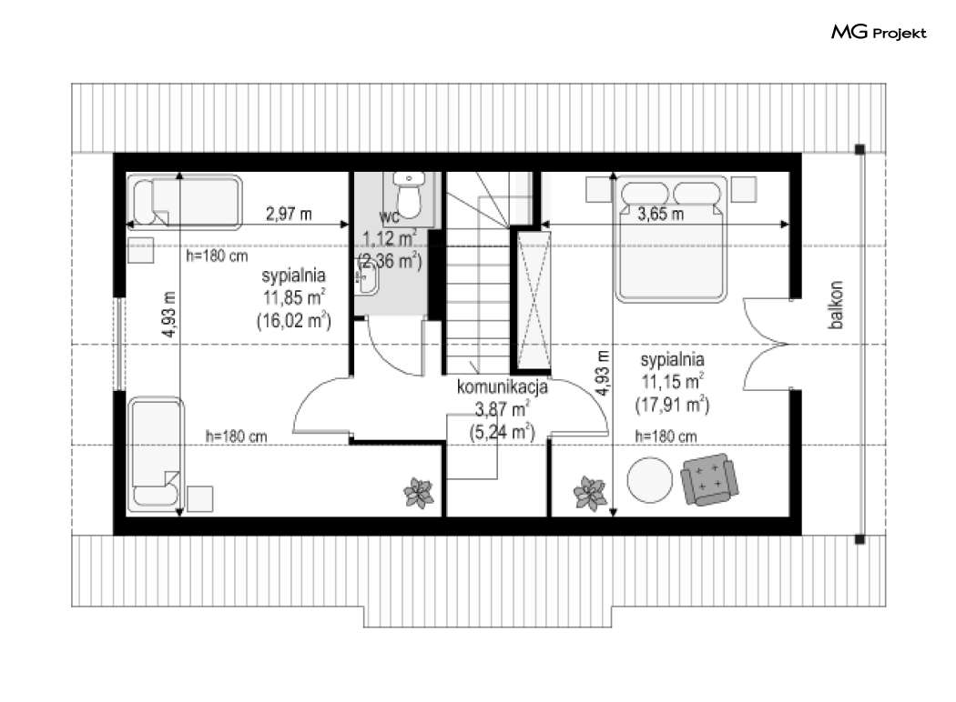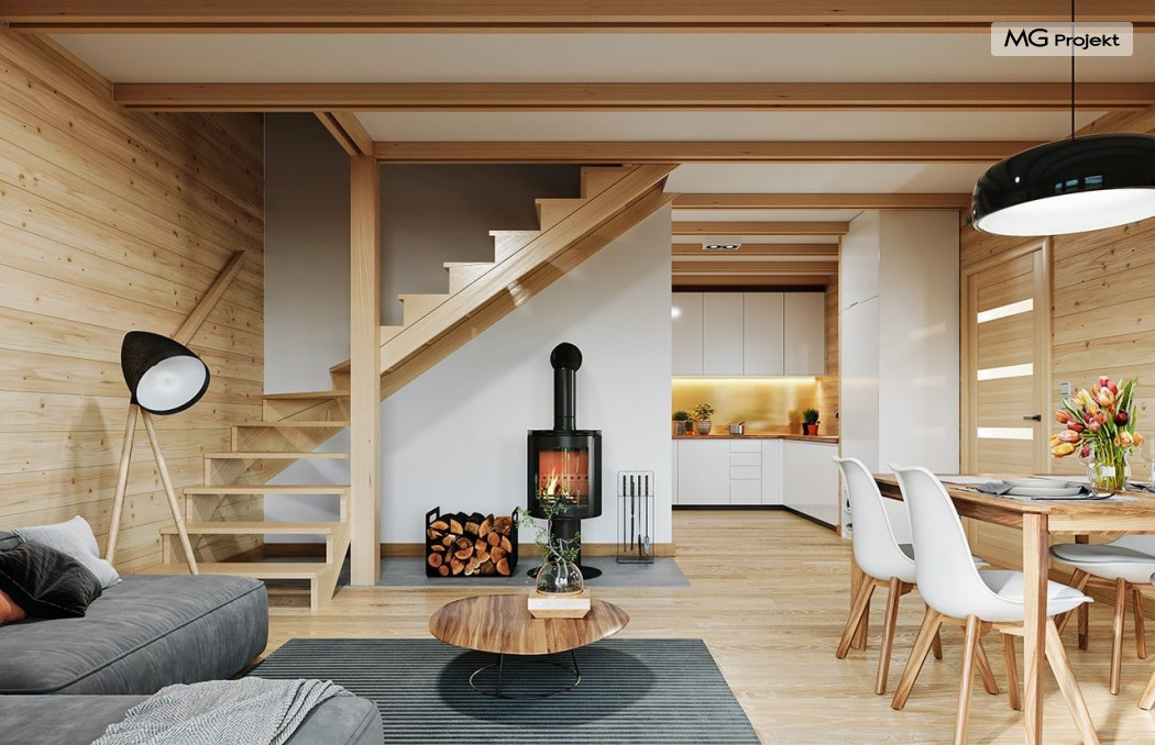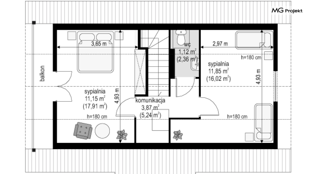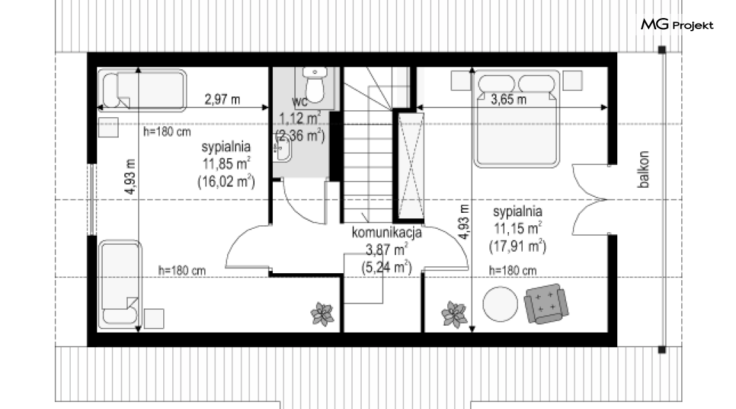 Wariant poszerzony o 1 m, łazienka na poddaszu, ogrzewanie gazowe.