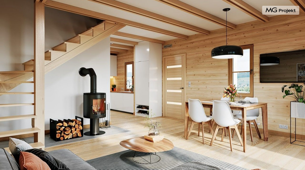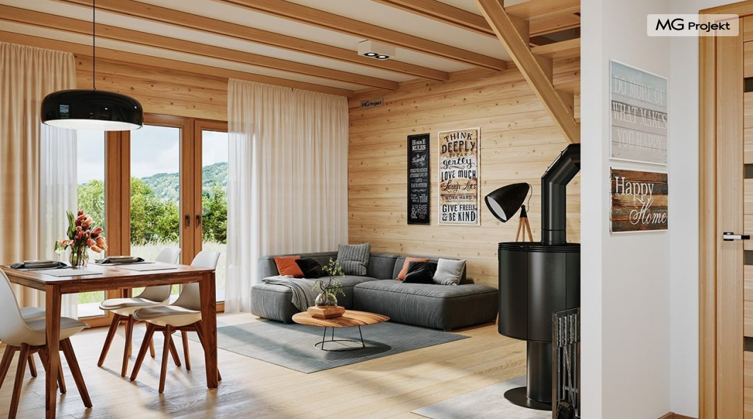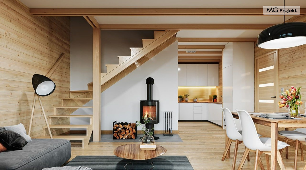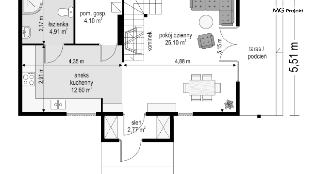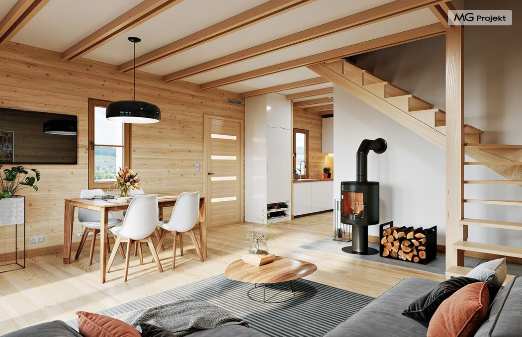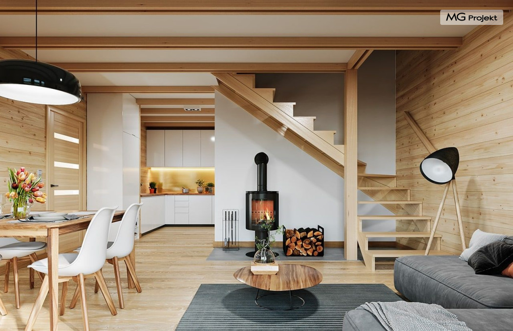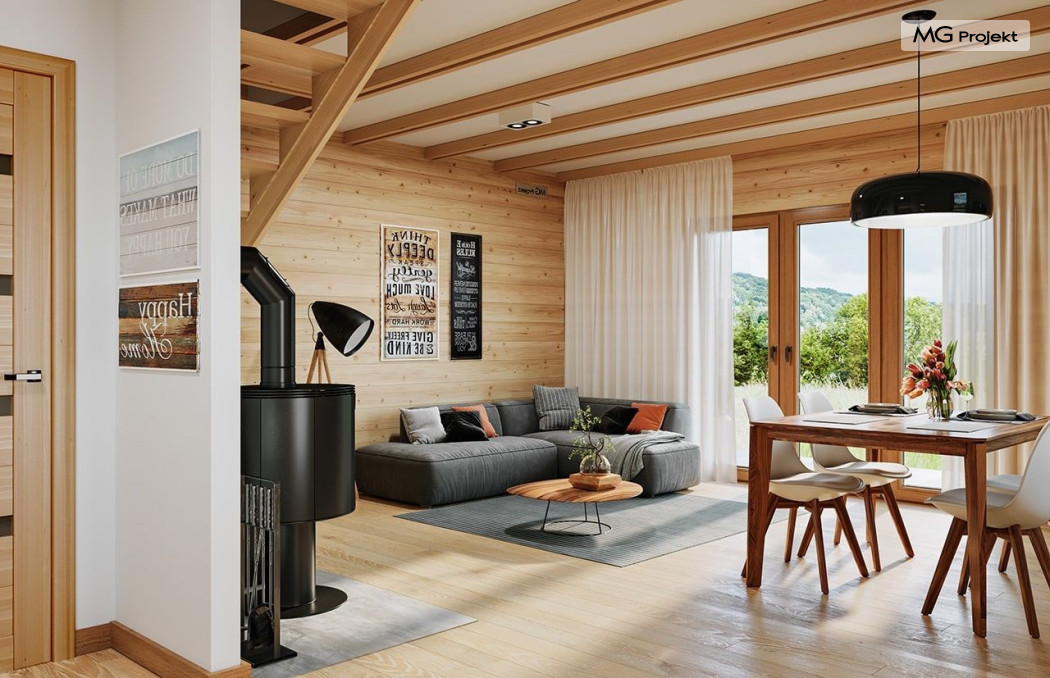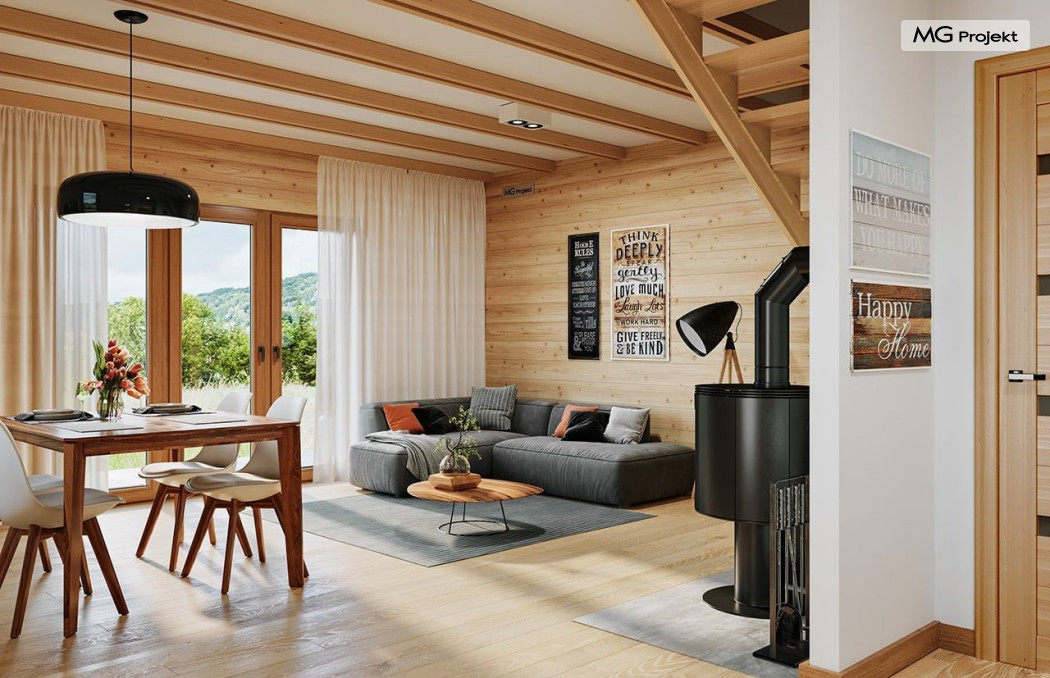 Wariant poszerzony o 1 m, łazienka na poddaszu, ogrzewanie gazowe.