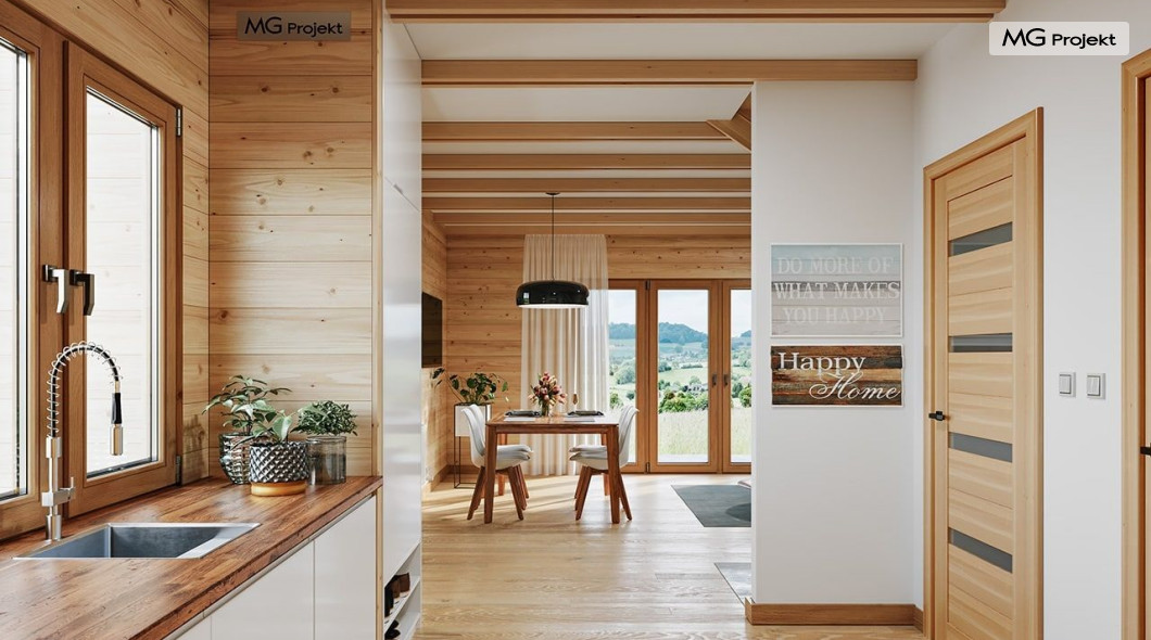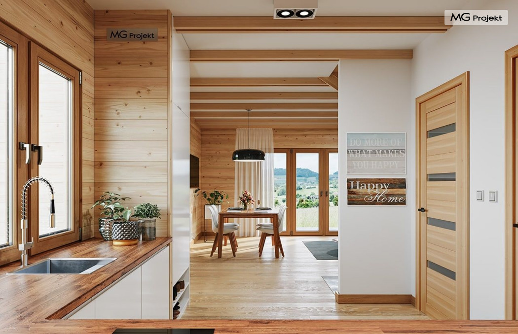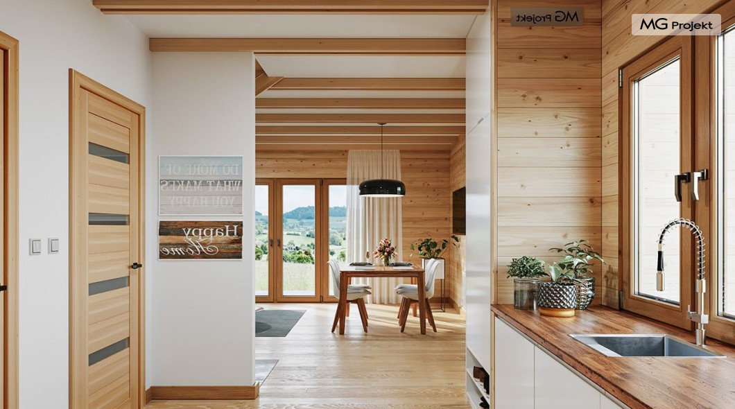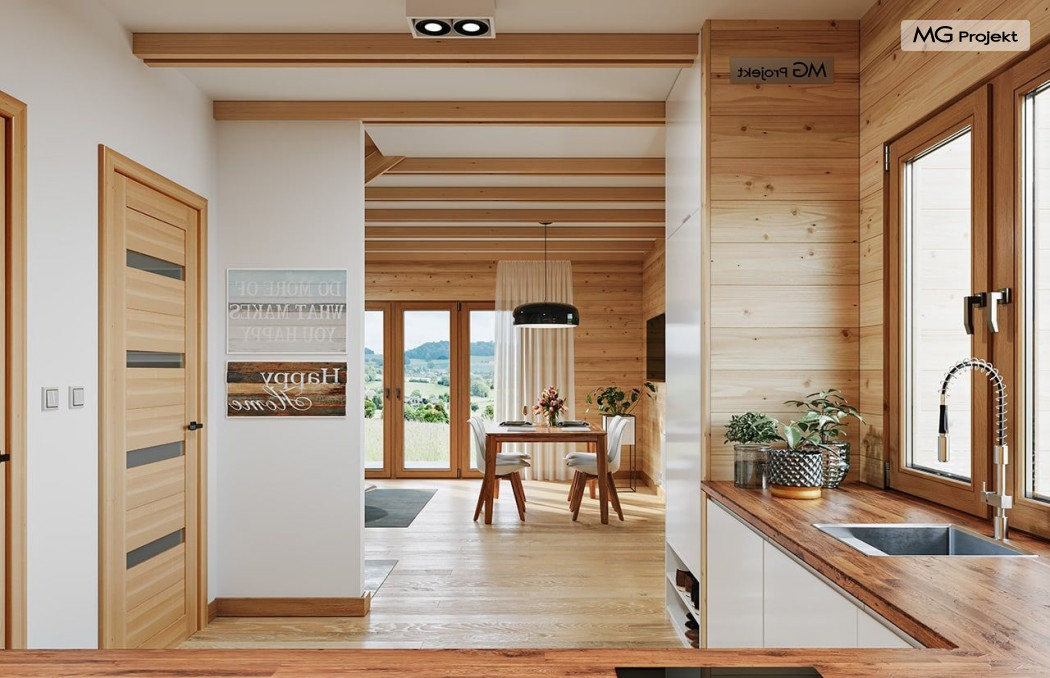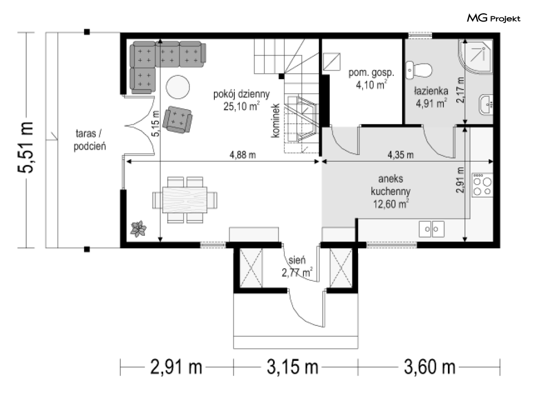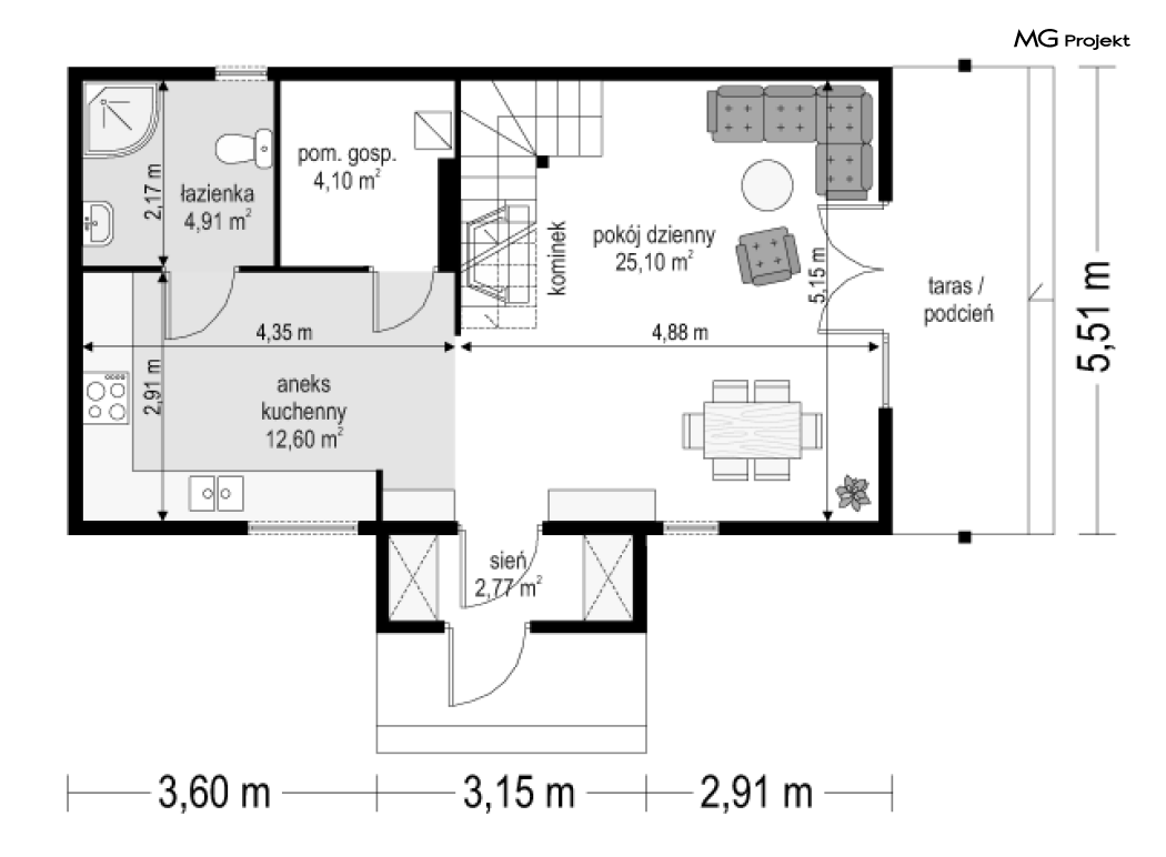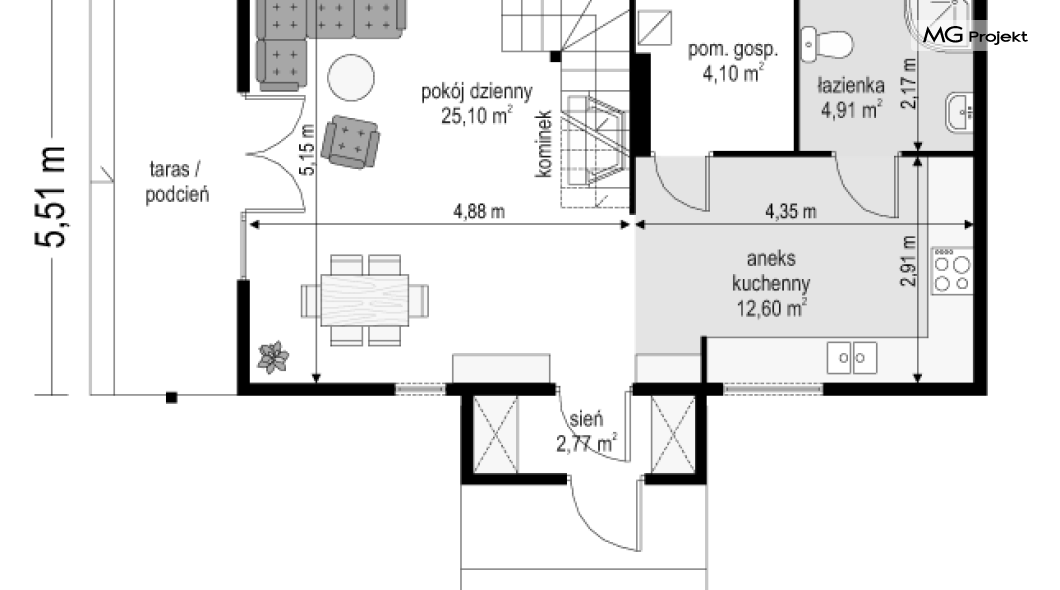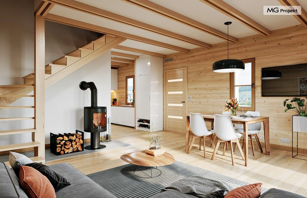 Wariant poszerzony o 1 m, łazienka na poddaszu, ogrzewanie gazowe.