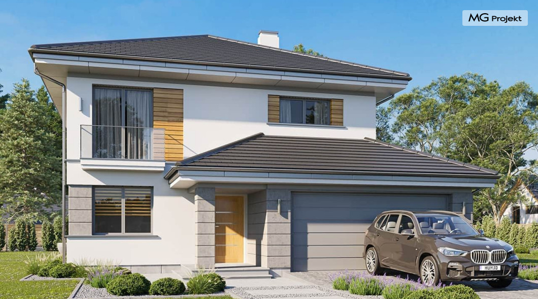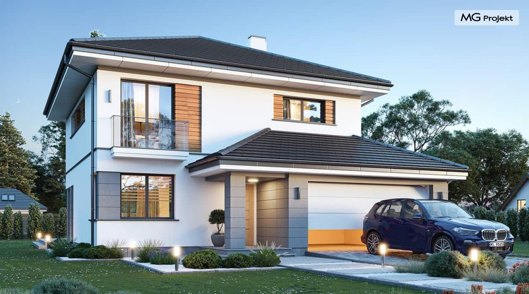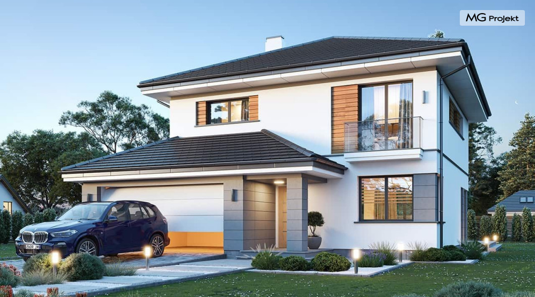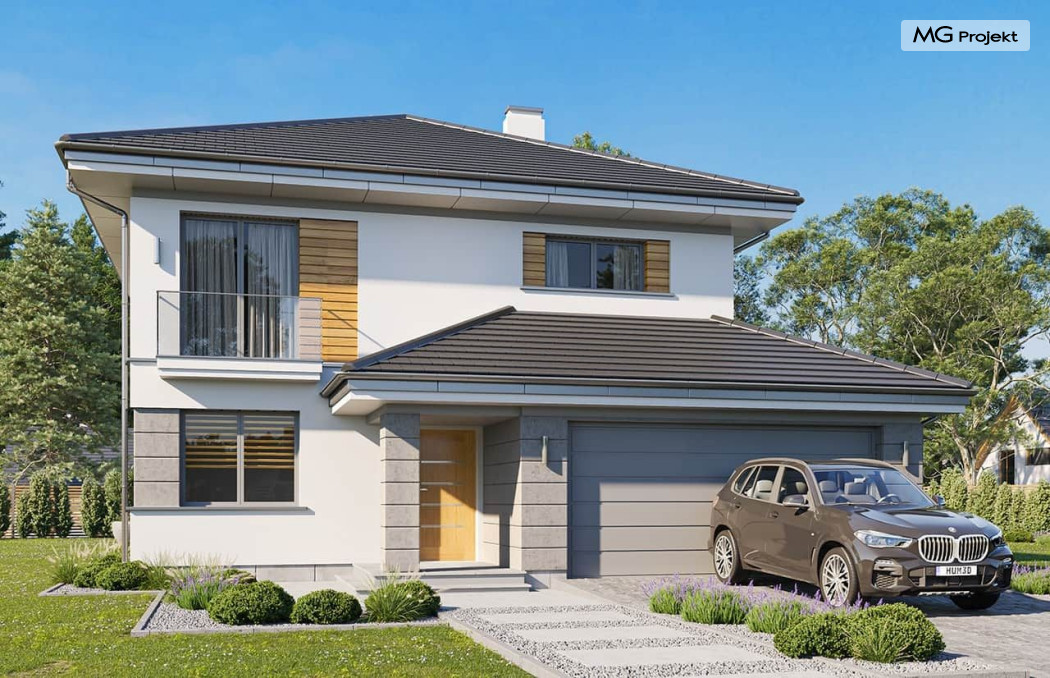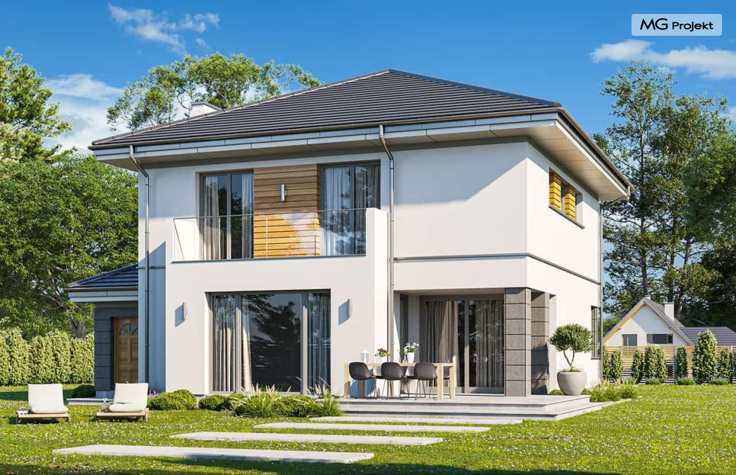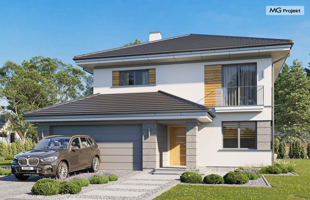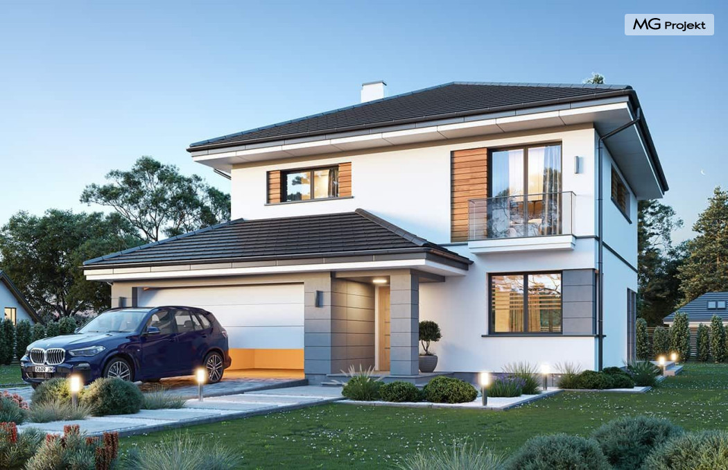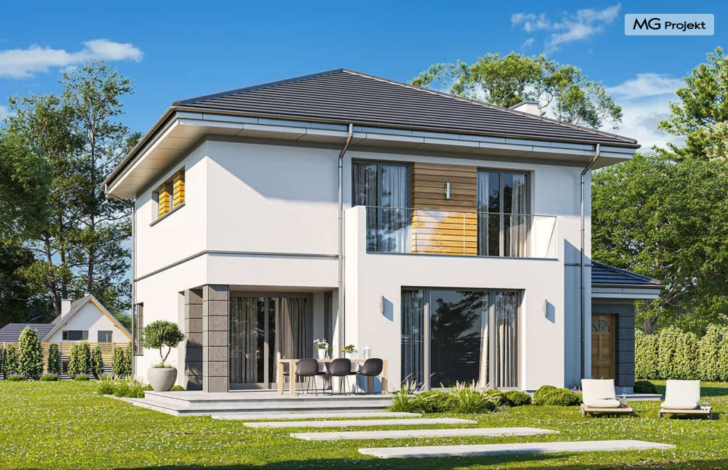 Koszt wzniesienia budynku wraz z pokryciem dachu i stolarką zewnętrzną (okna i drzwi). Bez instalacji, ocieplenia i robót wykończeniowych.