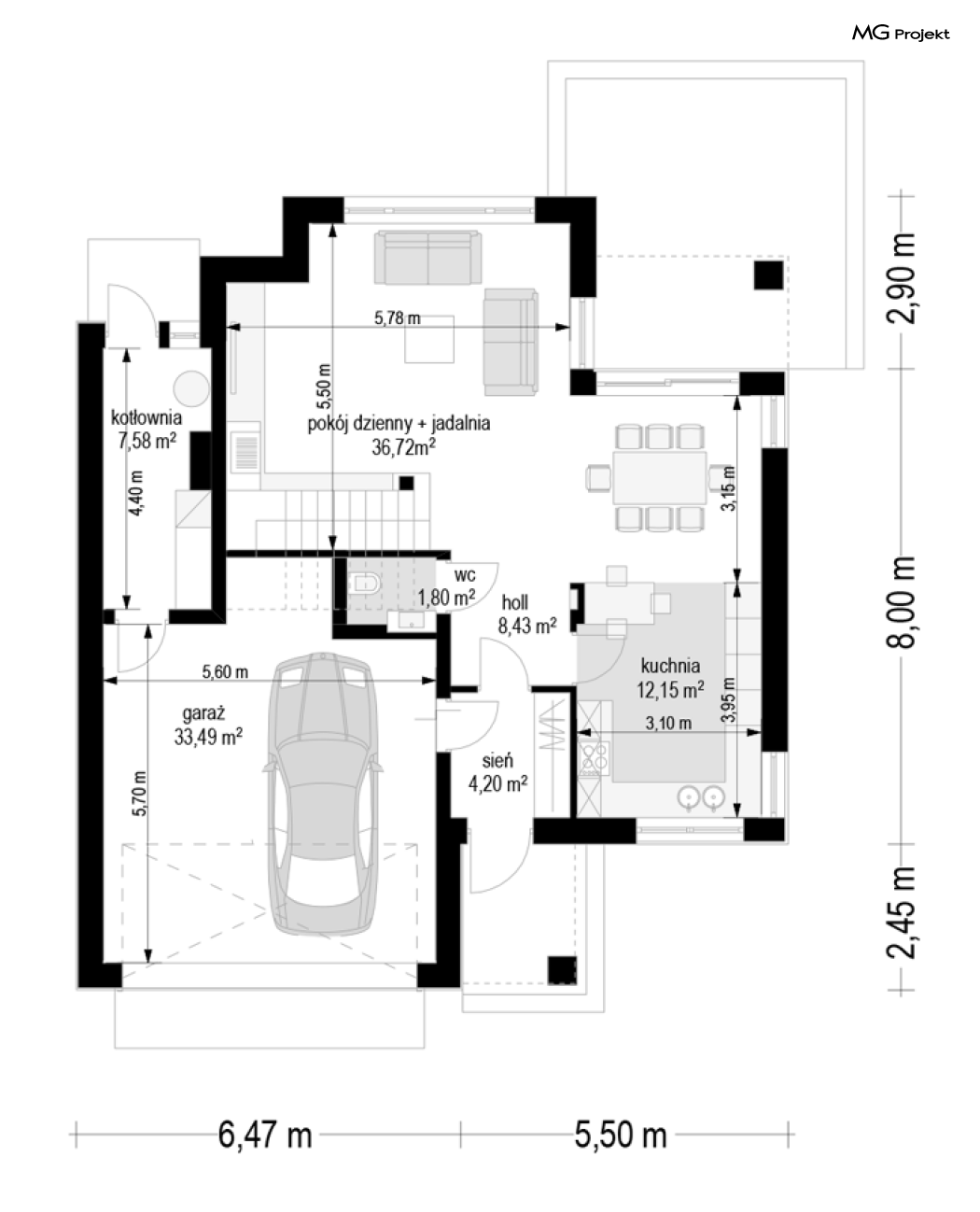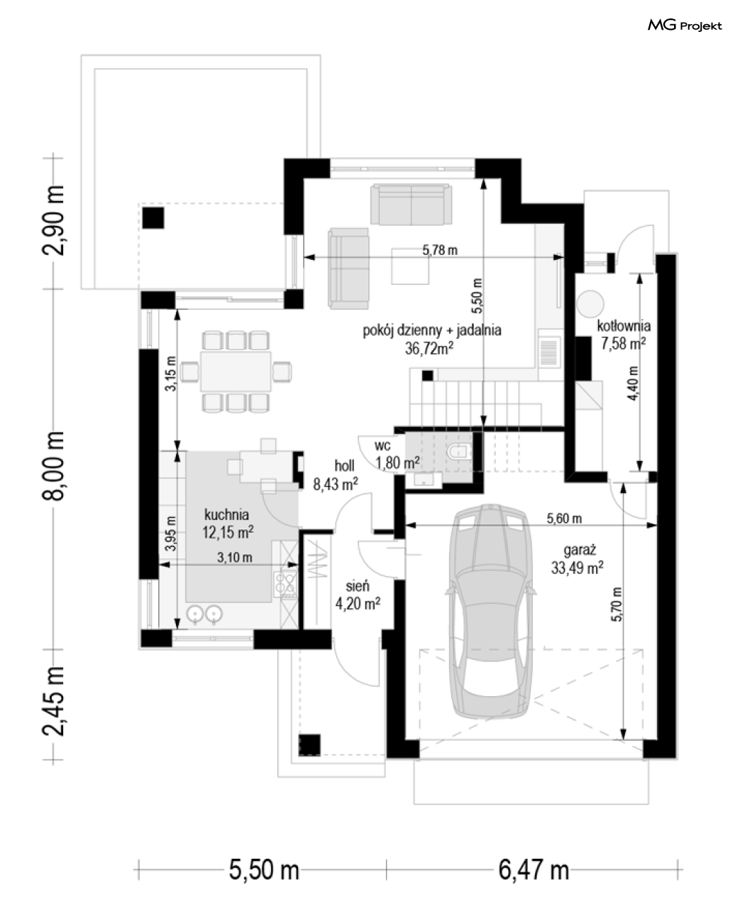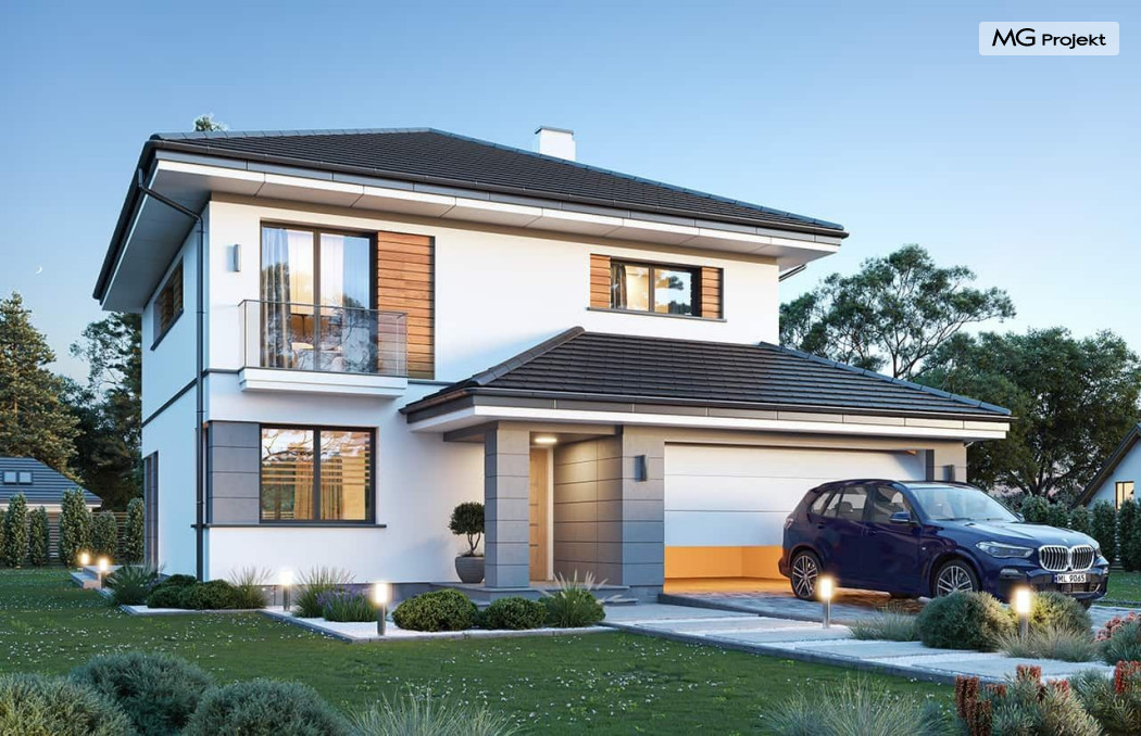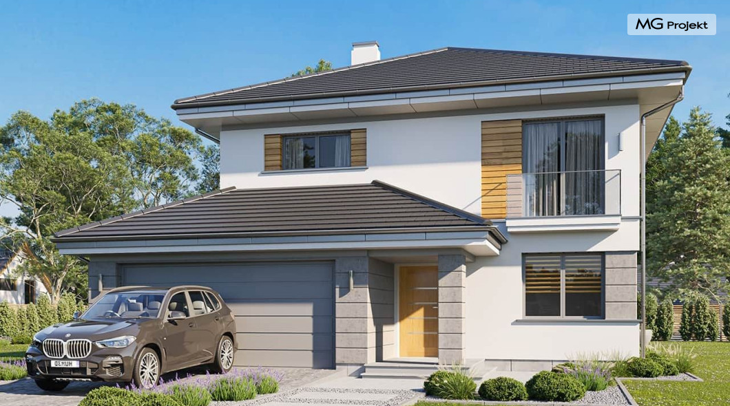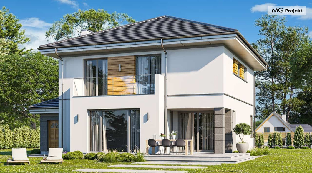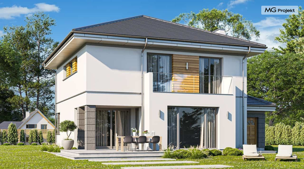Koszt wzniesienia budynku wraz z pokryciem dachu i stolarką zewnętrzną (okna i drzwi). Bez instalacji, ocieplenia i robót wykończeniowych.