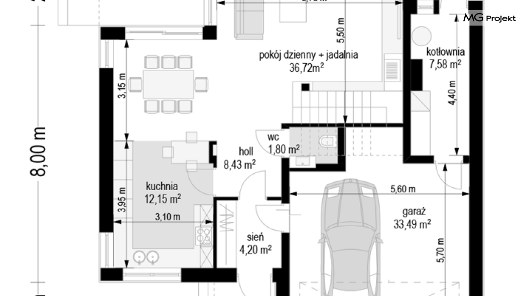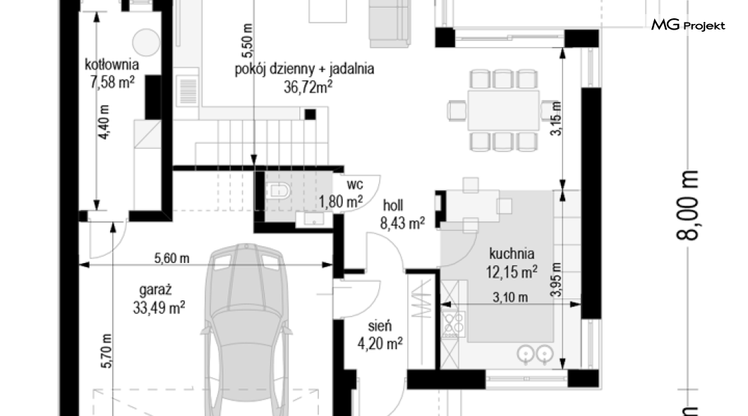 Obejmuje koszt wszystkich robót stanu surowego, wykonania instalacji wewnętrznych oraz robót wykończeniowych.