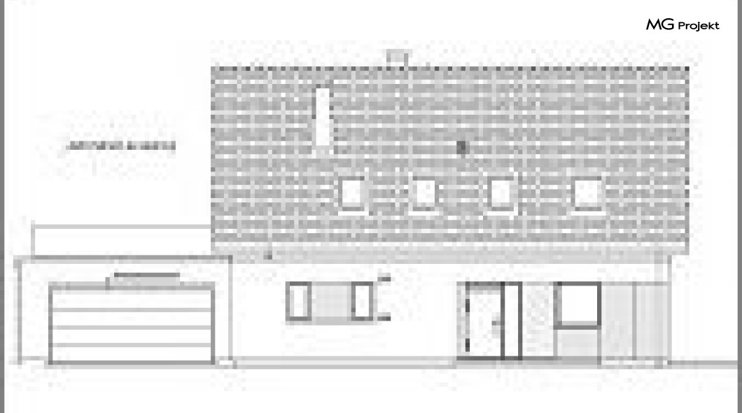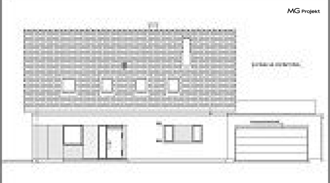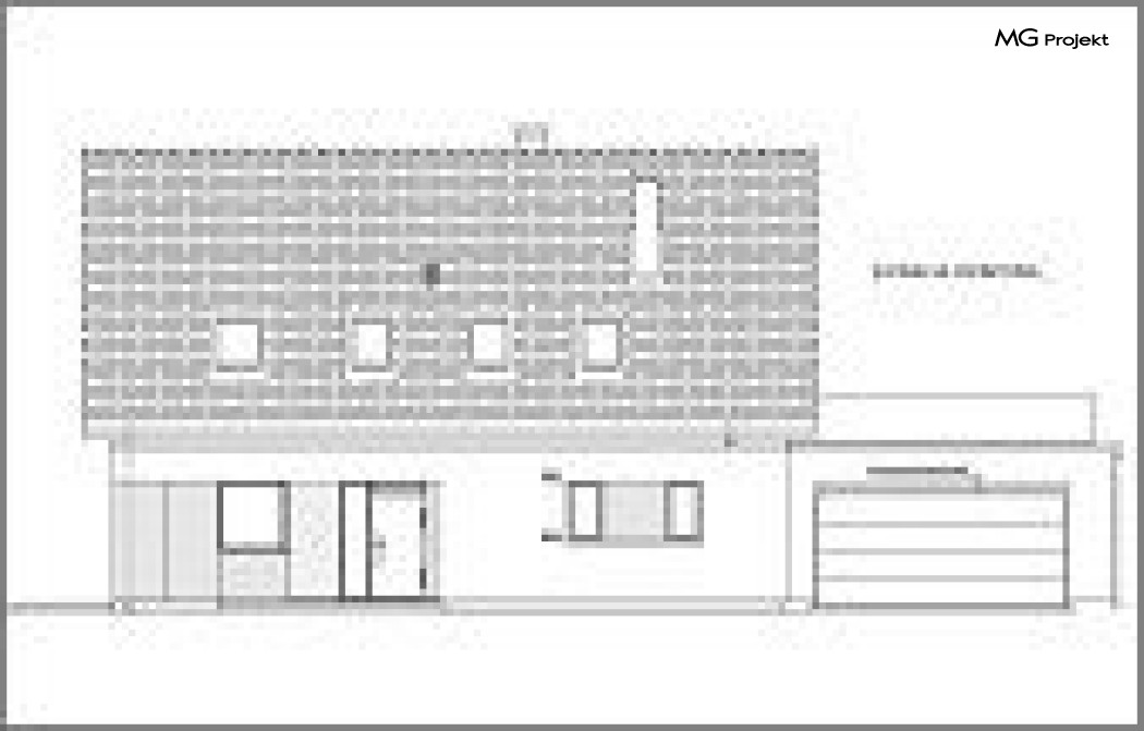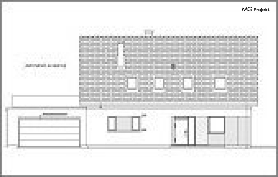 Wariant projektu z przeniesionym garażem na boczną elewację oraz przeniesionym okiem na elewację tylną,z zaprojektowanym tarasem nad garażem z wejściem z sypialni. Przeniesienie i odbicie lustrzane klatki schodowej, zmiana układu pomieszczeń w obrębie klatki schodowej i wejścia do garażu.