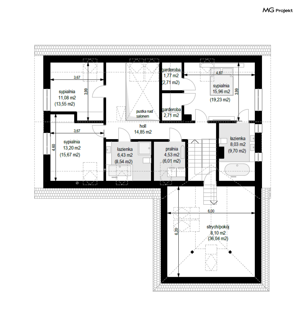 Zapoznaj się ze szczegółowymi rysunkami rzutów kondygnacji w PDF dla tego projektu.