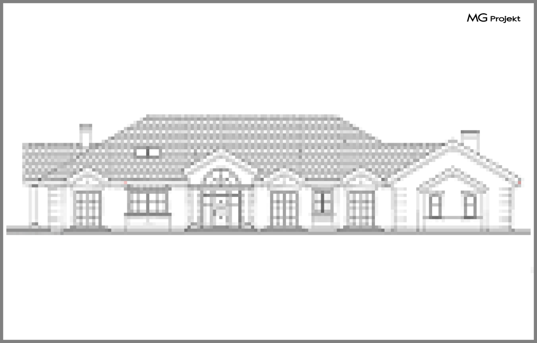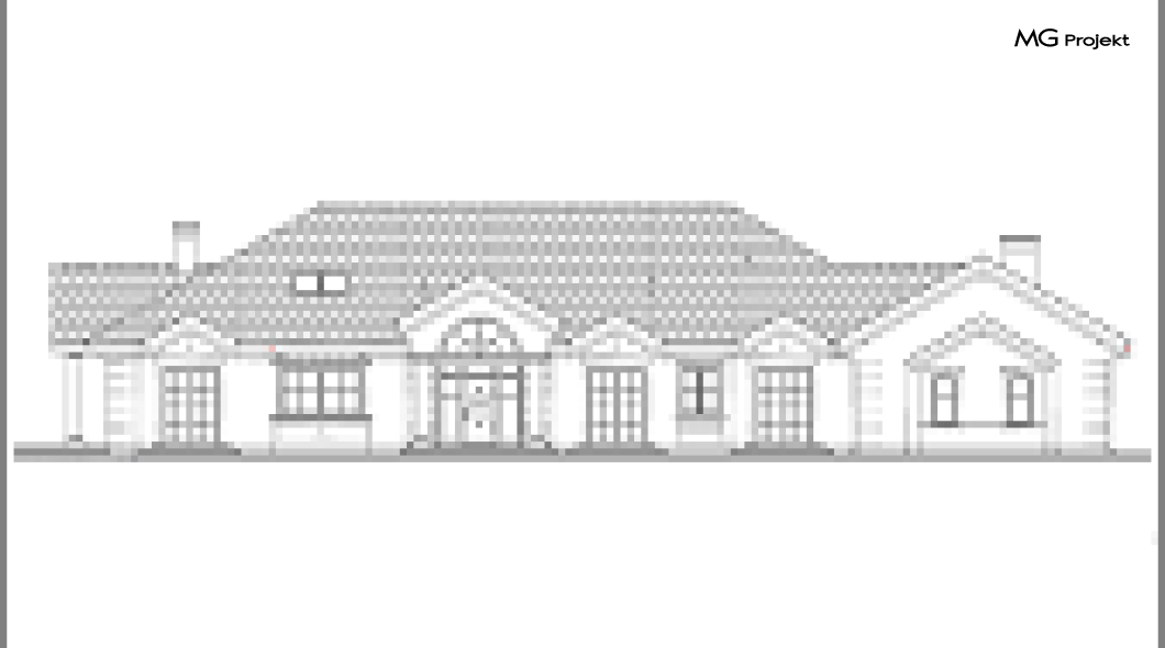Wariant projektu z przeniesionym garażem i kotłownią, zmiana lokalizacji naświetla w sypialni, zmiana układu pomieszczeń.