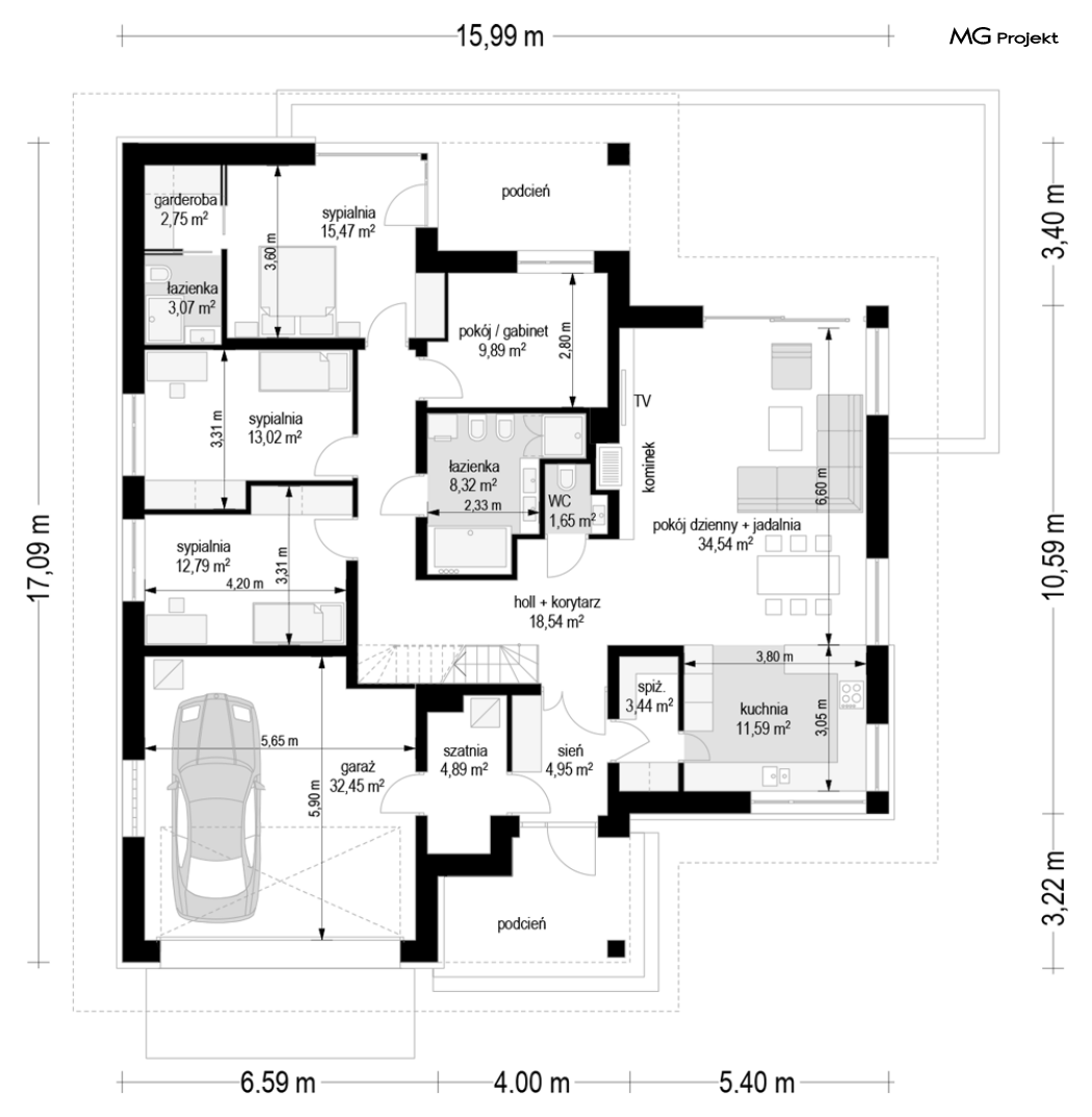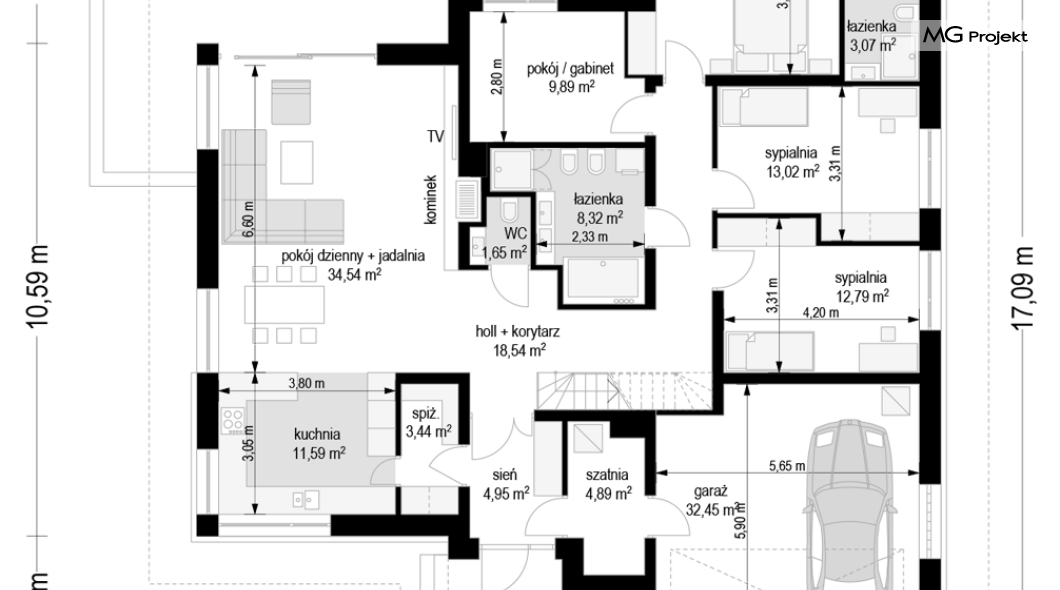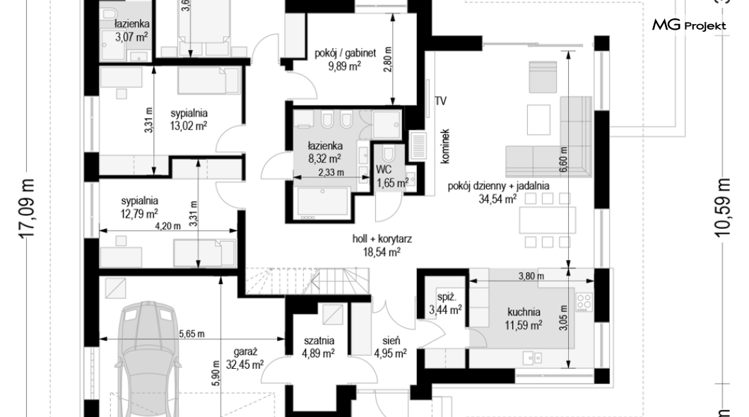 Łączna powierzchnia tzw. pomieszczeń użytkowych. Przede wszystkim nie zalicza się do niej powierzchni garażu, nieużytkowego strychu, piwnicy, kotłowni.