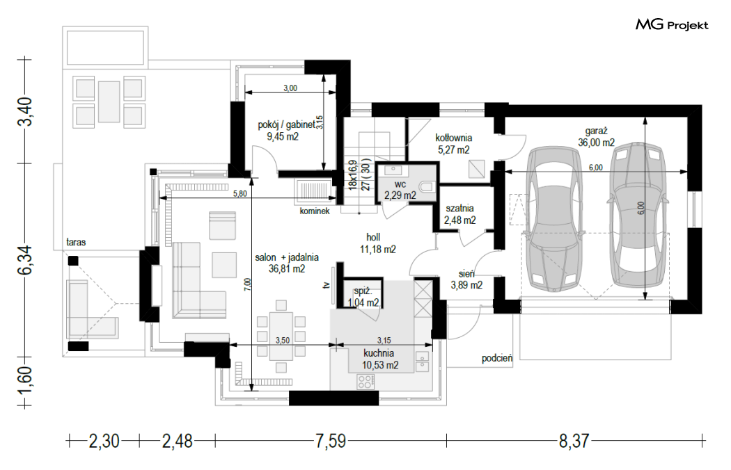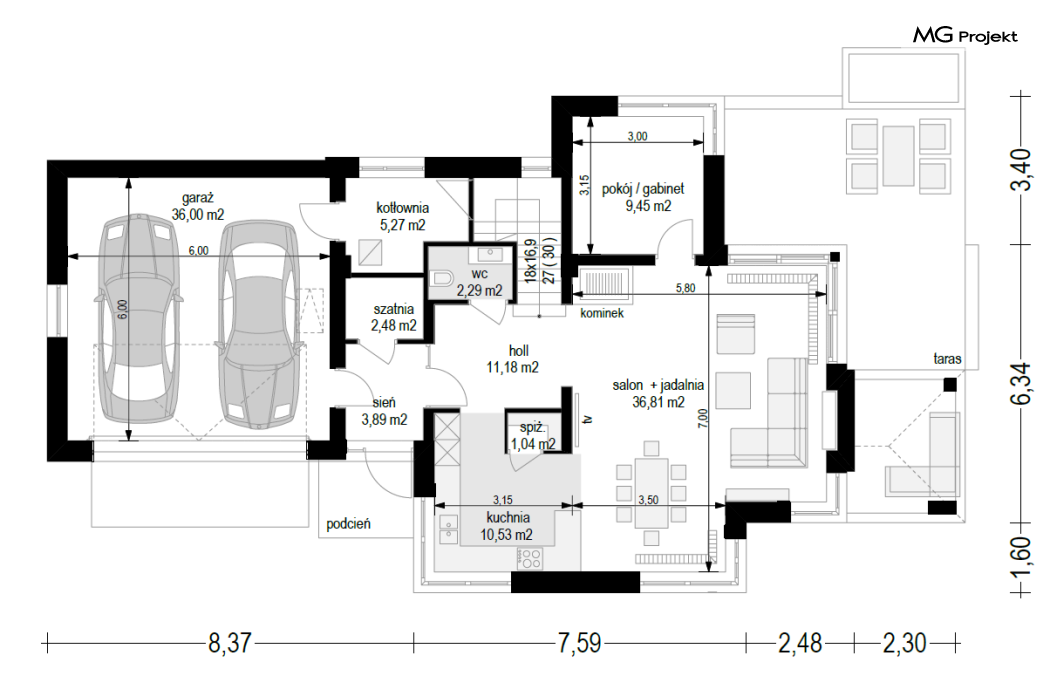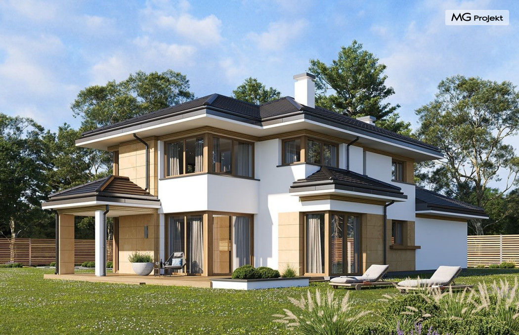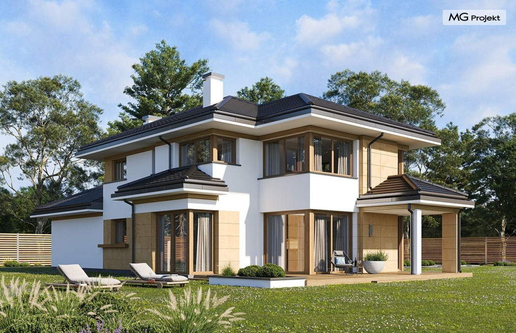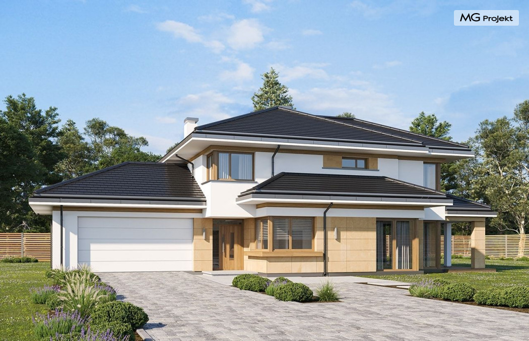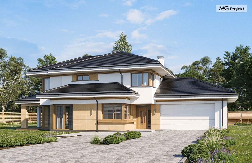 Koszt wzniesienia budynku wraz z pokryciem dachu i stolarką zewnętrzną (okna i drzwi). Bez instalacji, ocieplenia i robót wykończeniowych.