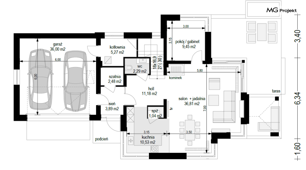 Obejmuje koszt wszystkich robót stanu surowego, wykonania instalacji wewnętrznych oraz robót wykończeniowych.