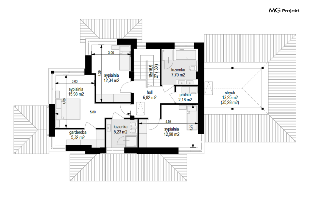 Maksymalna szerokość budynku wraz z grubością izolacji cieplnej oraz okładzin ściennych.