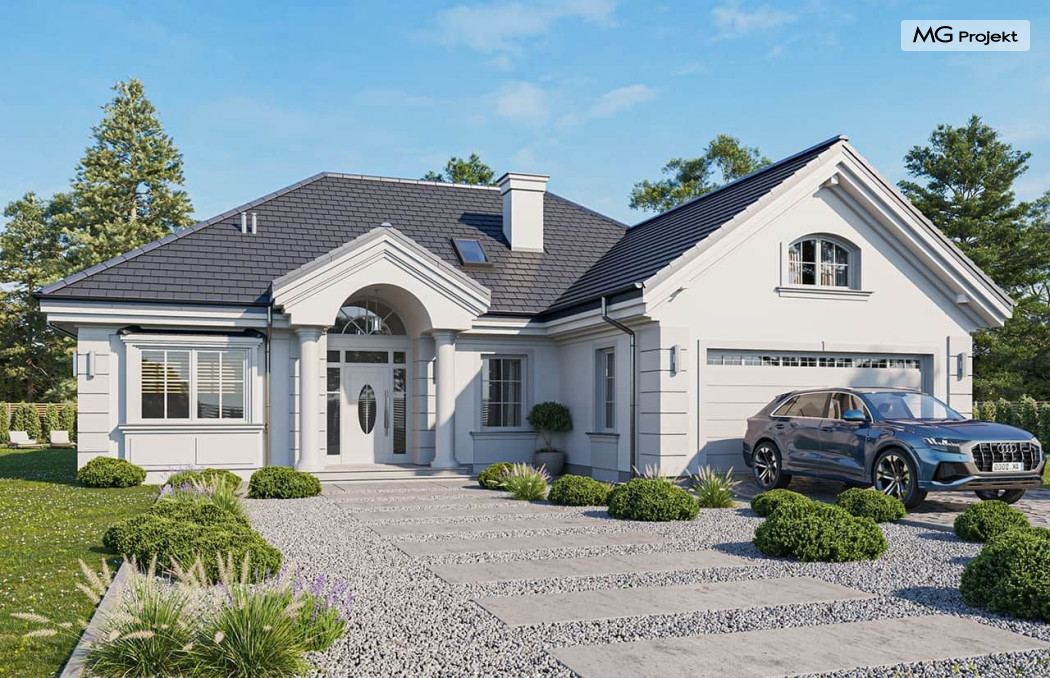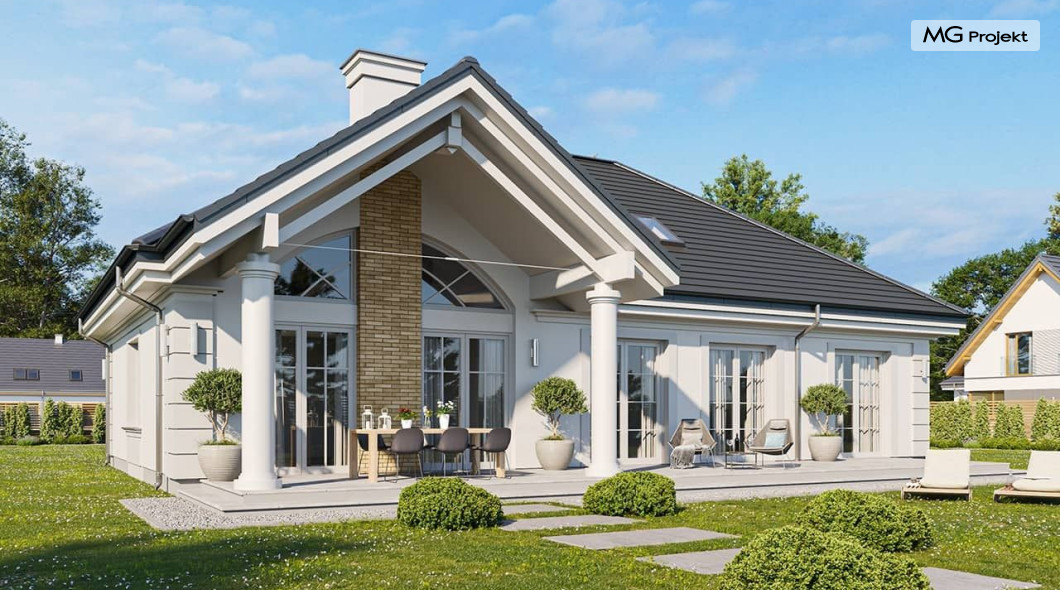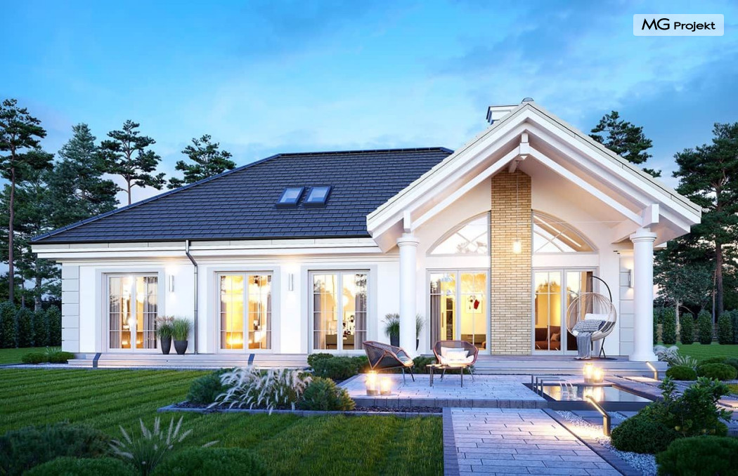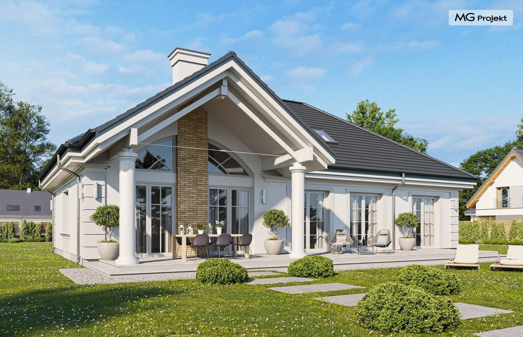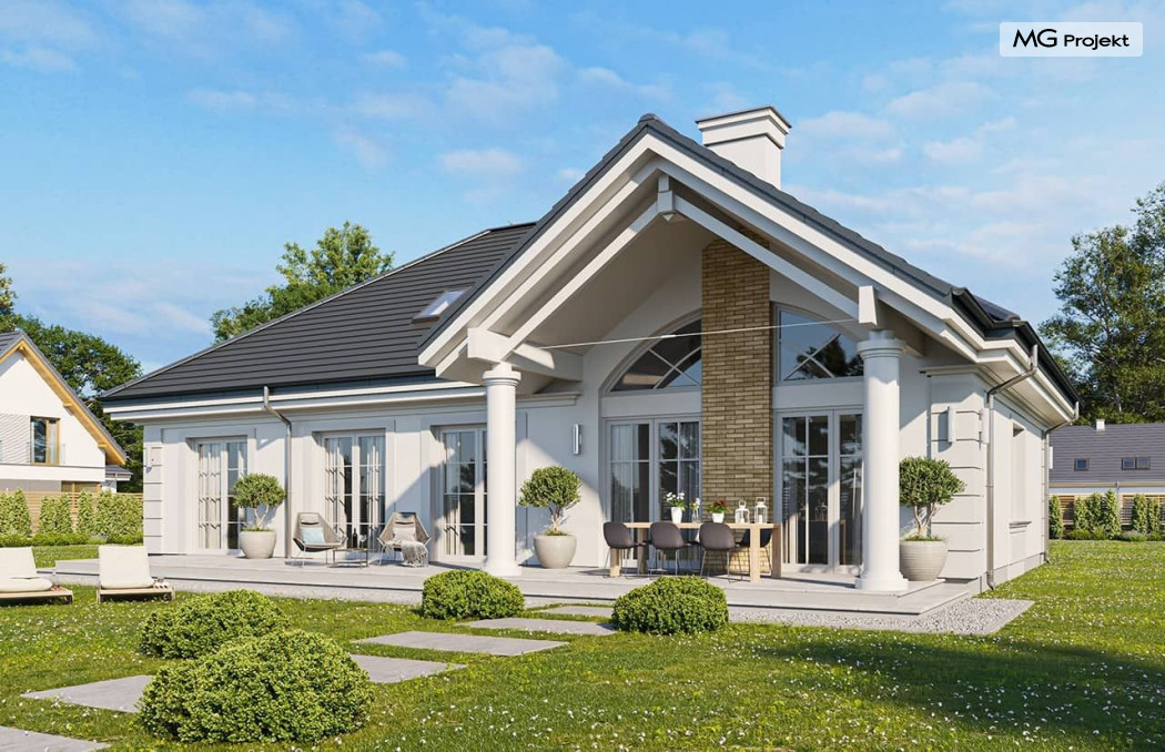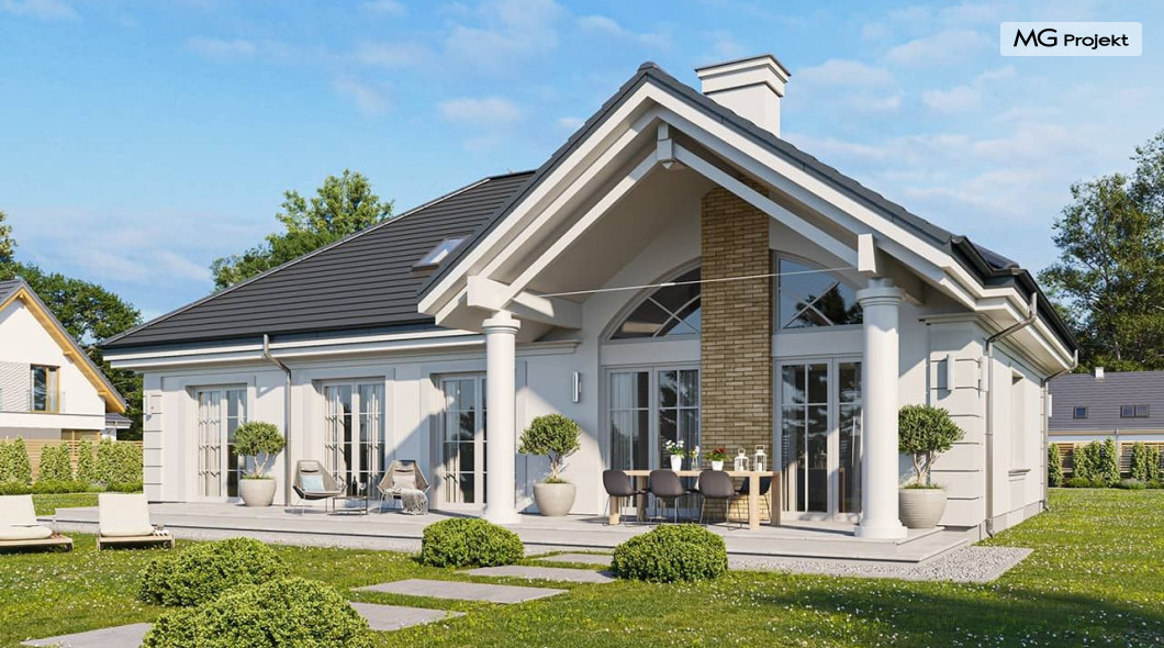 Koszt wzniesienia budynku wraz z pokryciem dachu i stolarką zewnętrzną (okna i drzwi). Bez instalacji, ocieplenia i robót wykończeniowych.
