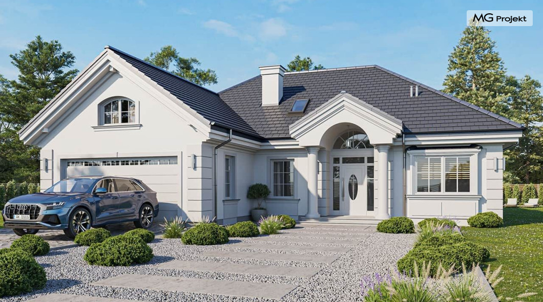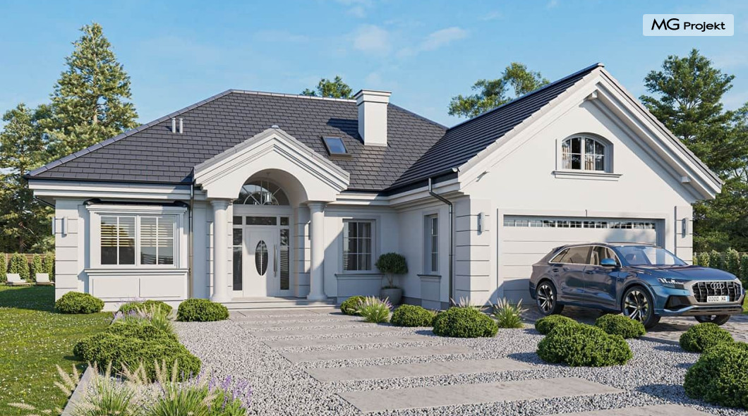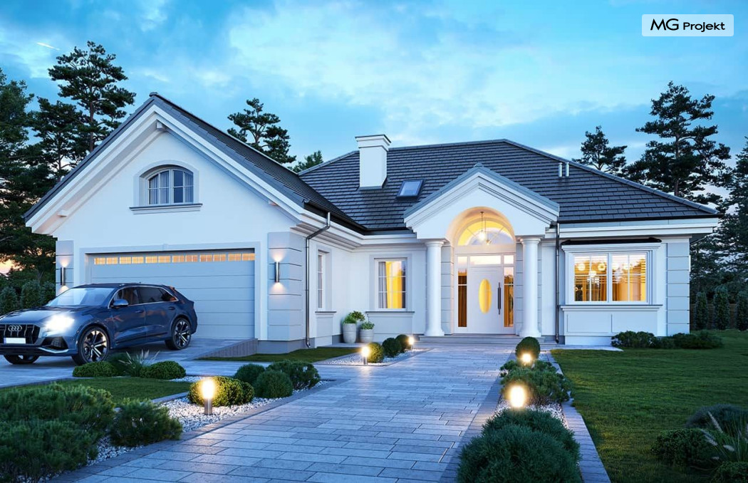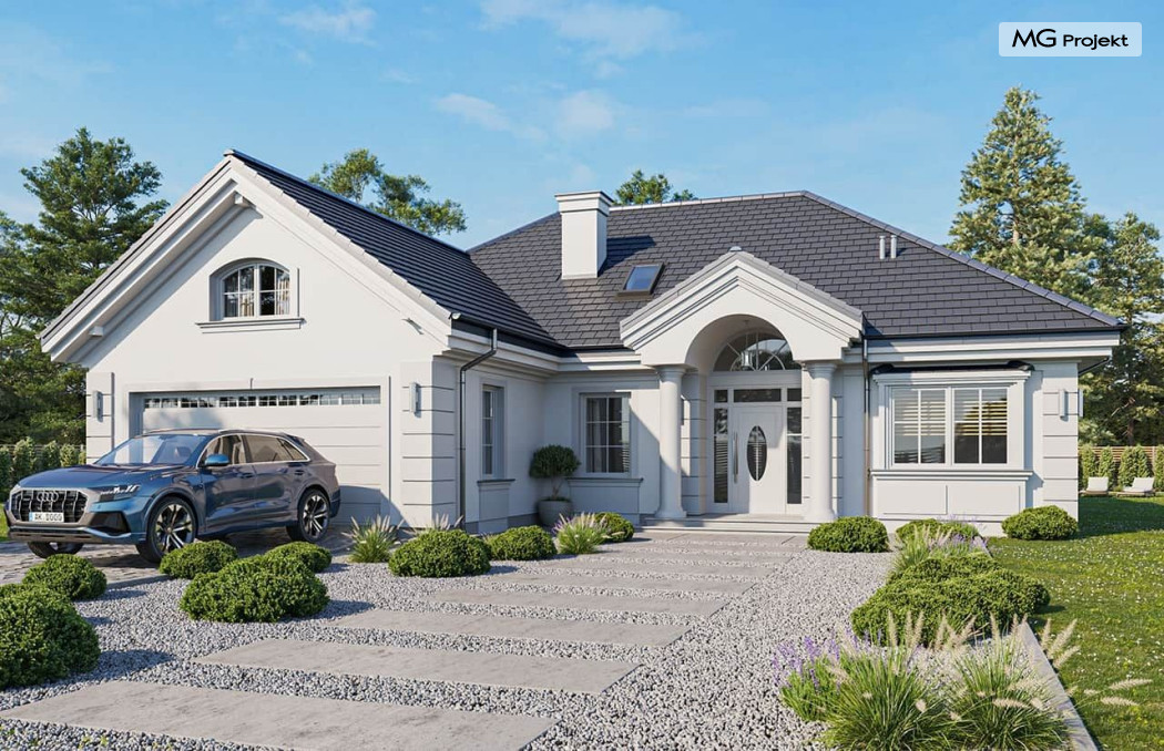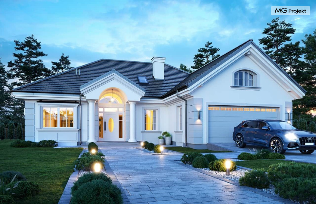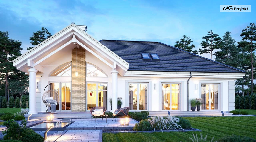 Koszt wzniesienia budynku wraz z pokryciem dachu i stolarką zewnętrzną (okna i drzwi). Bez instalacji, ocieplenia i robót wykończeniowych.