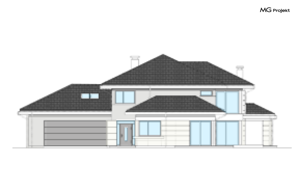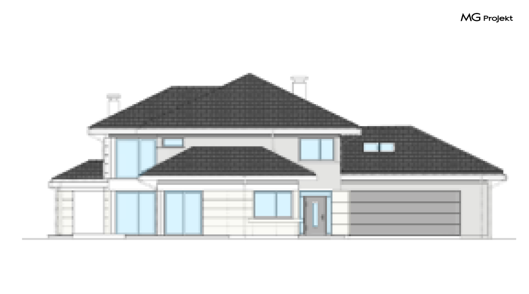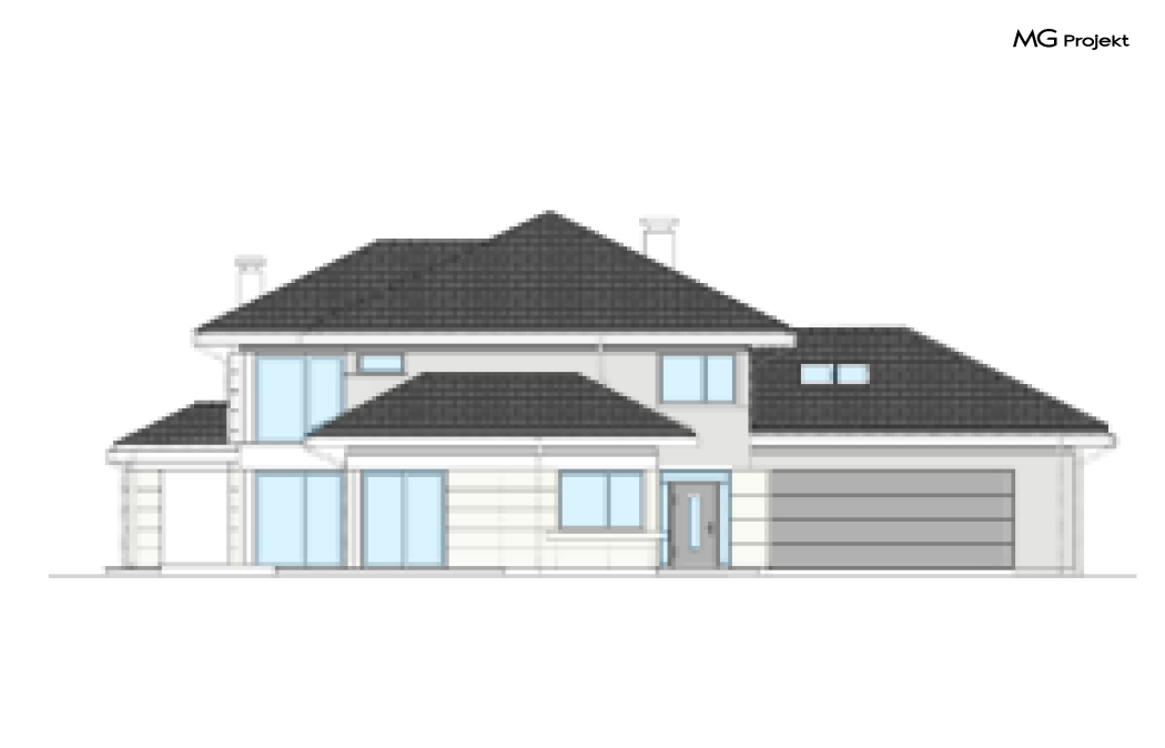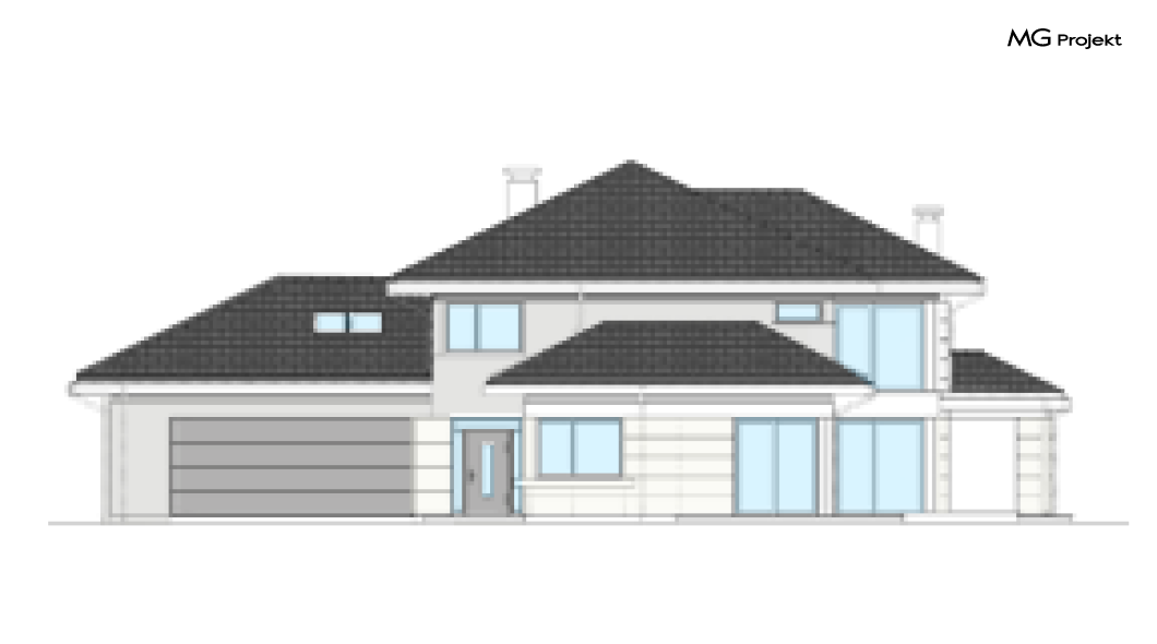 Wariant projektu z powiększonym garażem, zmienionym układem pomieszczeń, likwidacja otworu w stropie.
