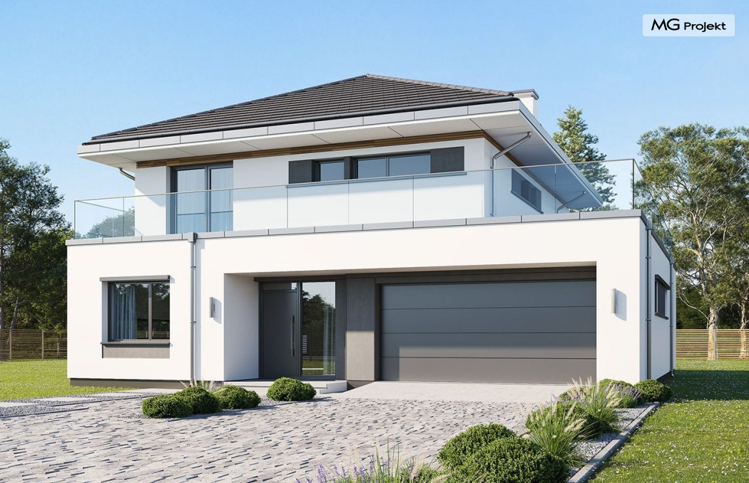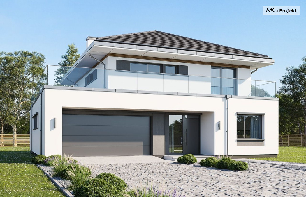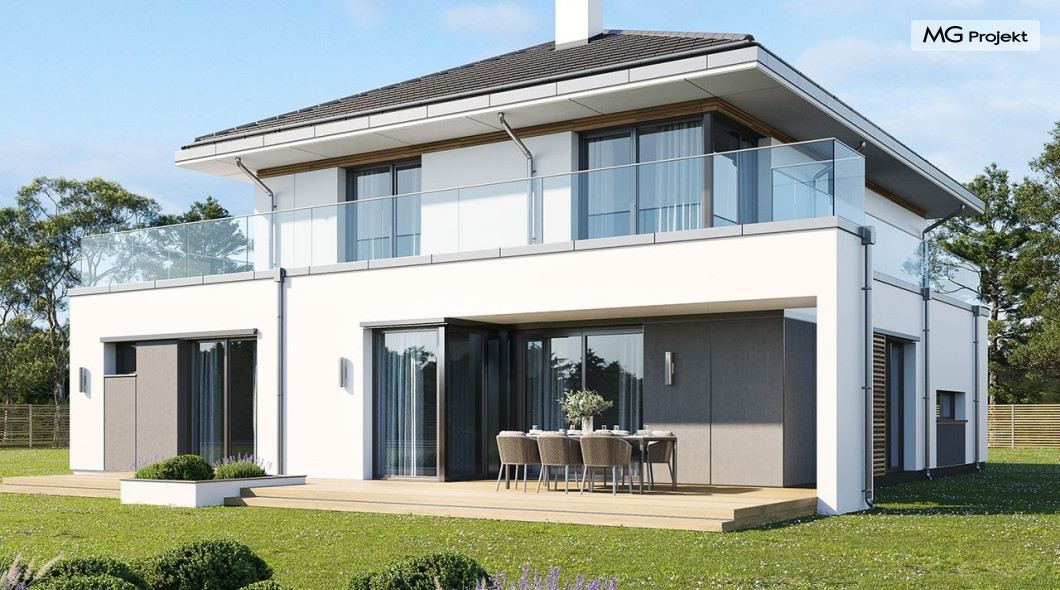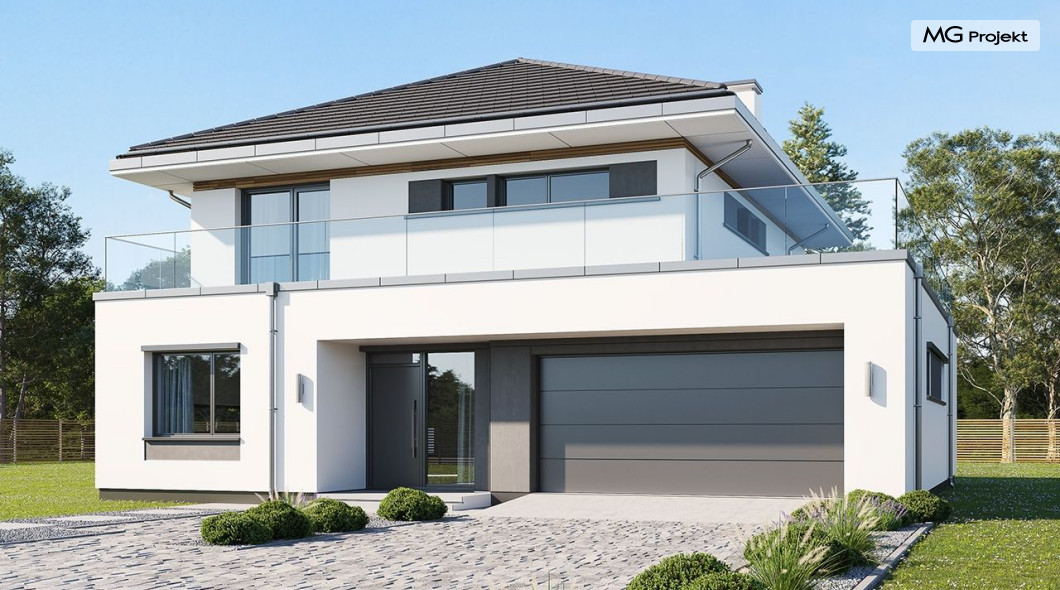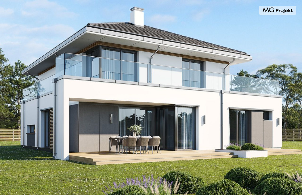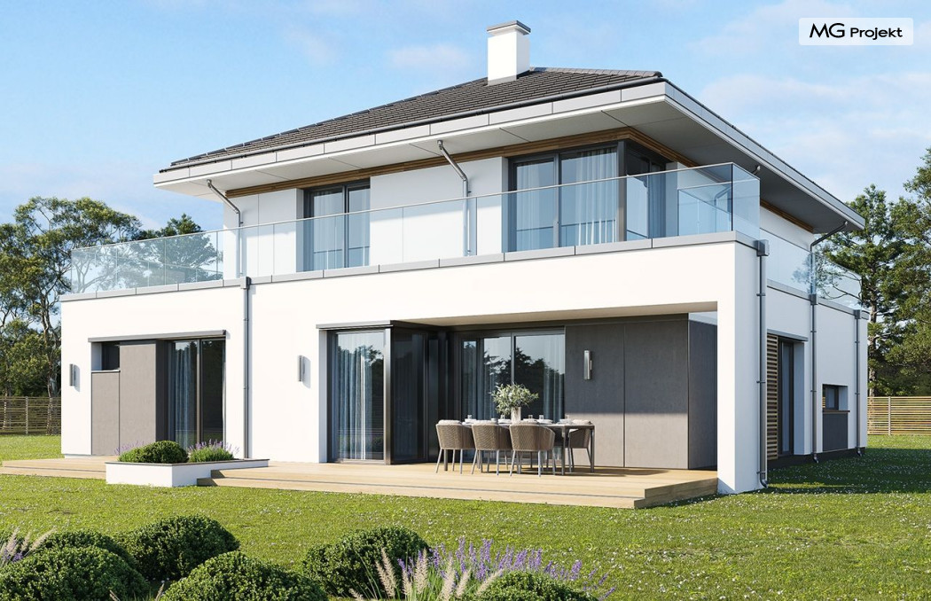 Koszt wzniesienia budynku wraz z pokryciem dachu i stolarką zewnętrzną (okna i drzwi). Bez instalacji, ocieplenia i robót wykończeniowych.