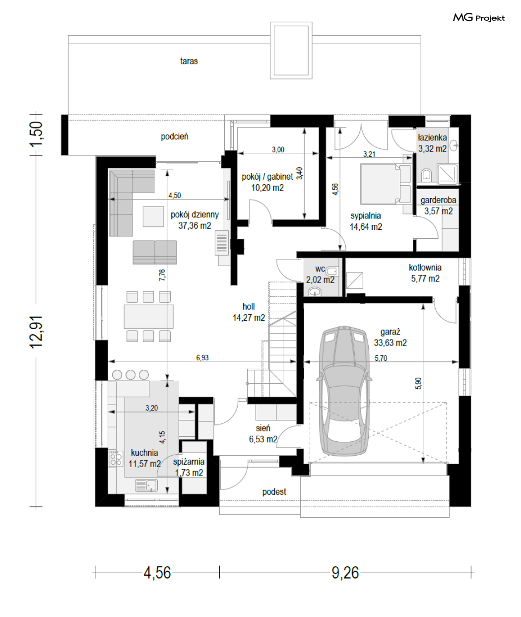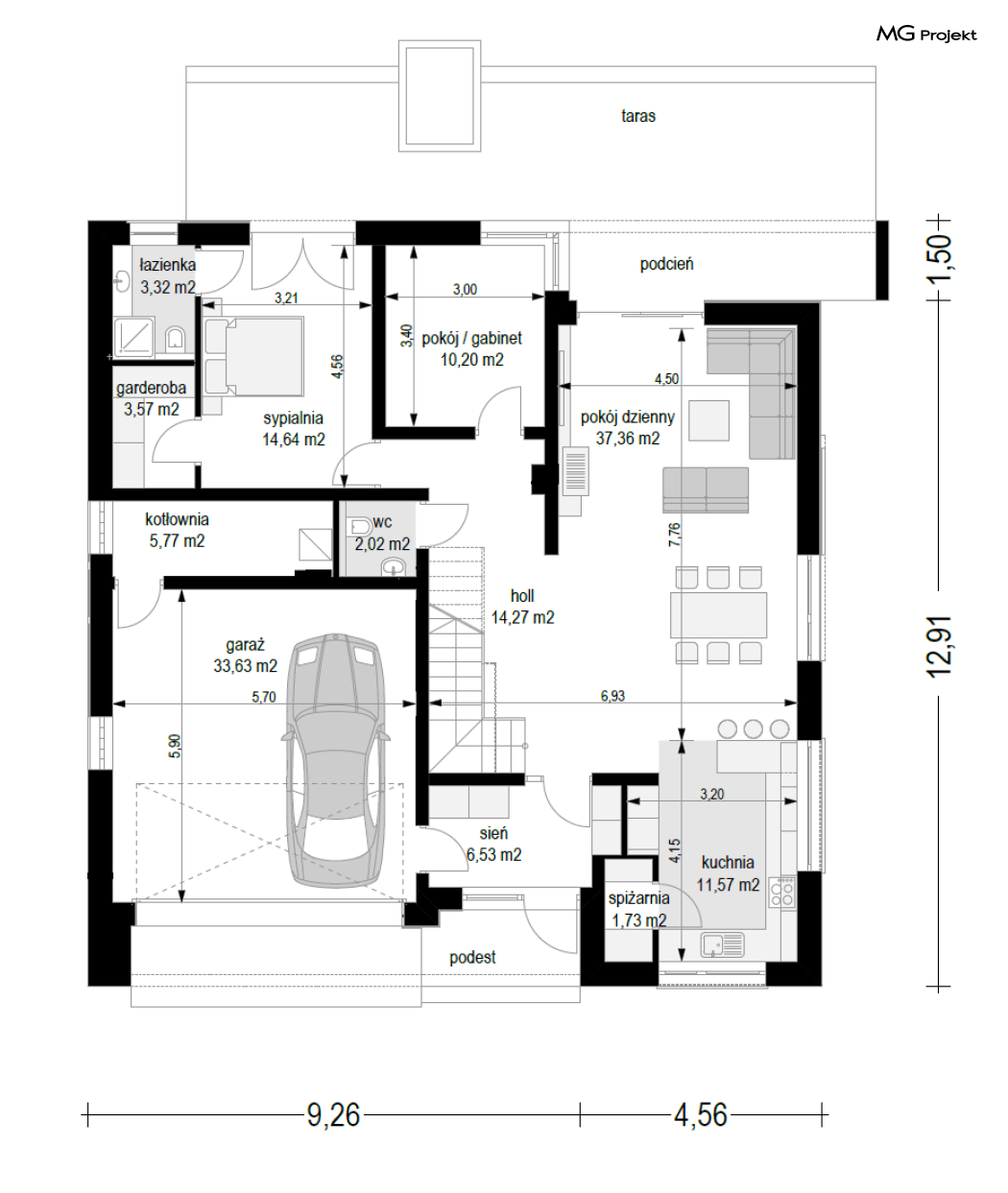 Łączna powierzchnia tzw. pomieszczeń użytkowych. Przede wszystkim nie zalicza się do niej powierzchni garażu, nieużytkowego strychu, piwnicy, kotłowni.