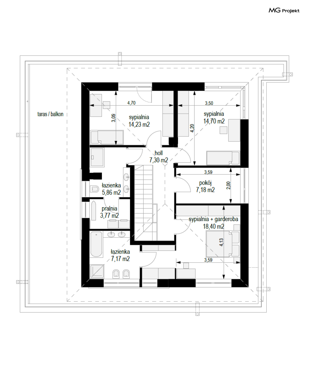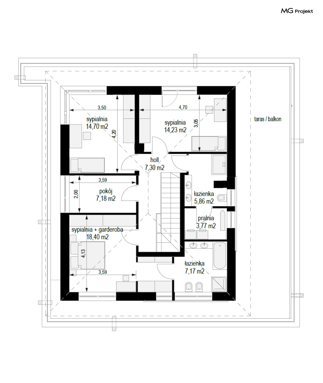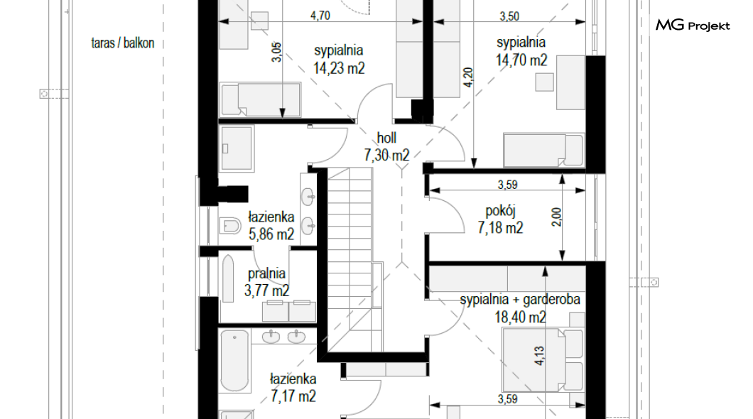 Zapoznaj się ze szczegółowymi rysunkami rzutów kondygnacji w PDF dla tego projektu.