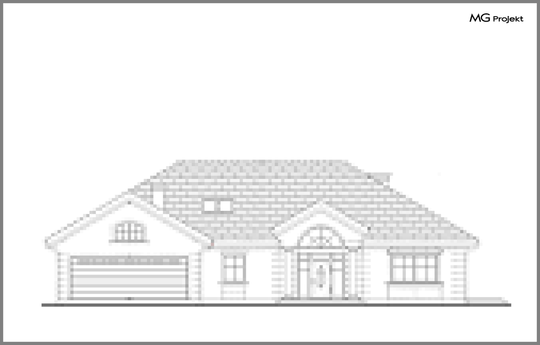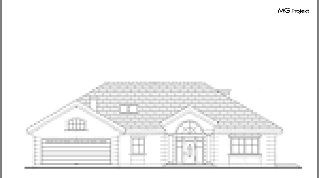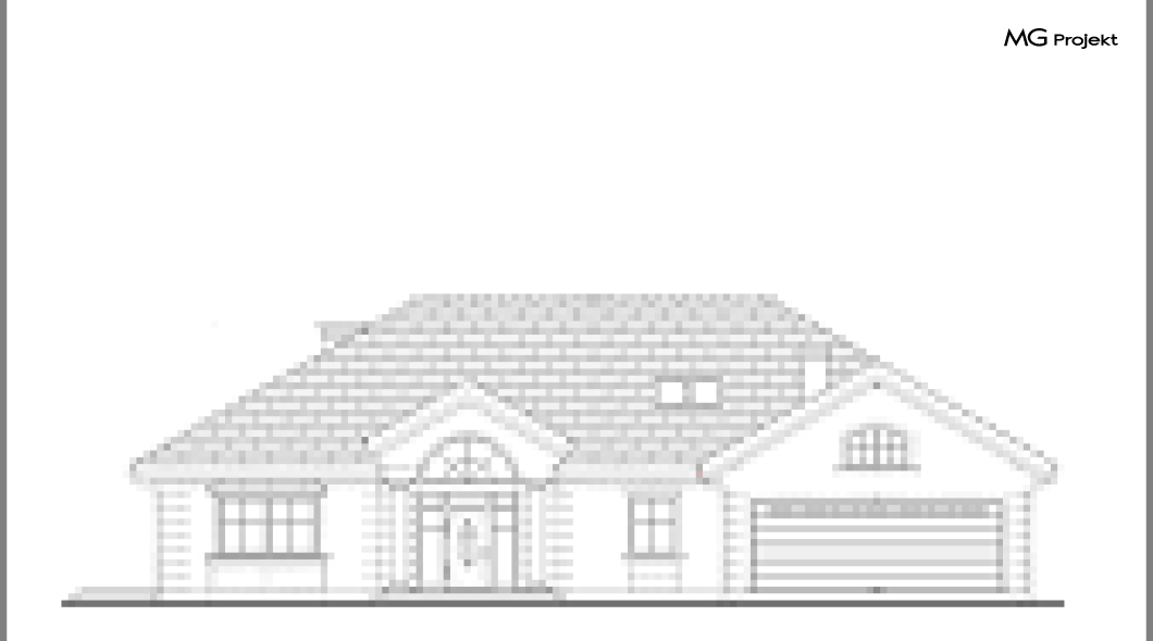 Wariant projektu ze zmienionym układem pomieszczeń, przesuniętym garażem, zmienionymi fundamentami na płytę fundamentową oraz stropem żelbetowym.