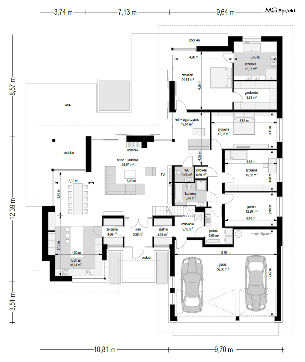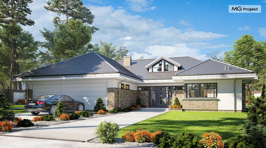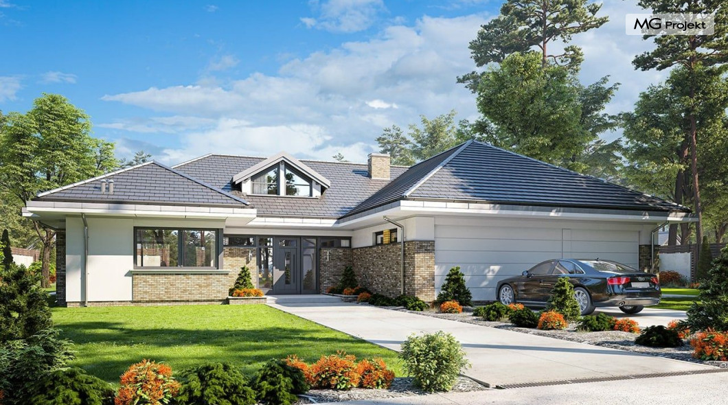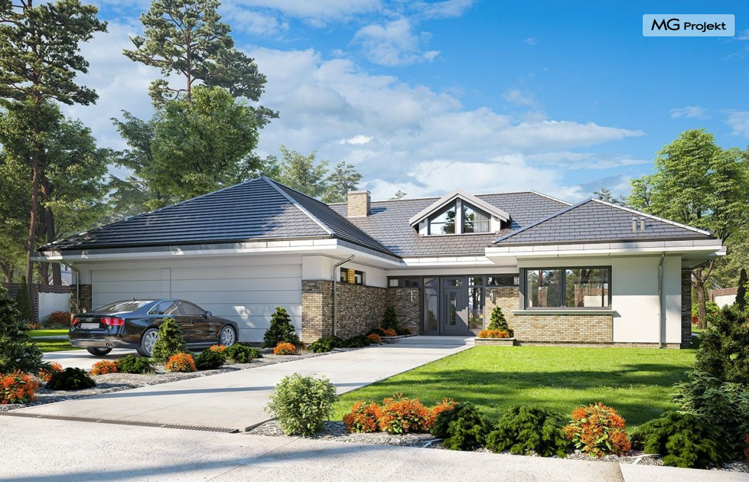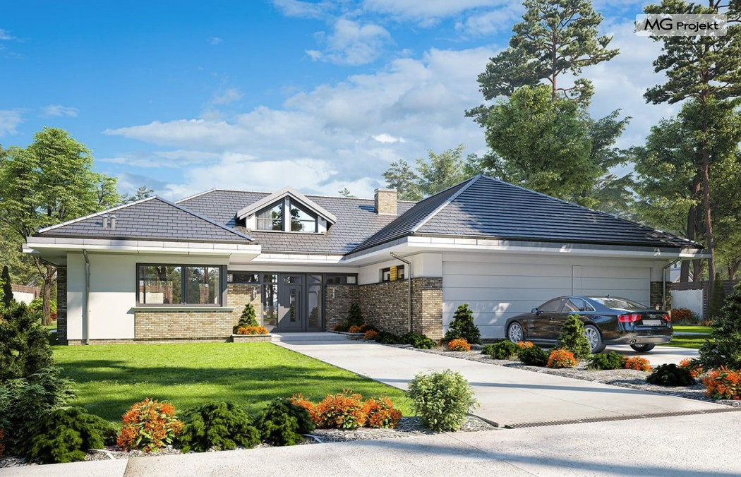 Wariant projektu z poszerzonym garażem i sypialnią rodziców.