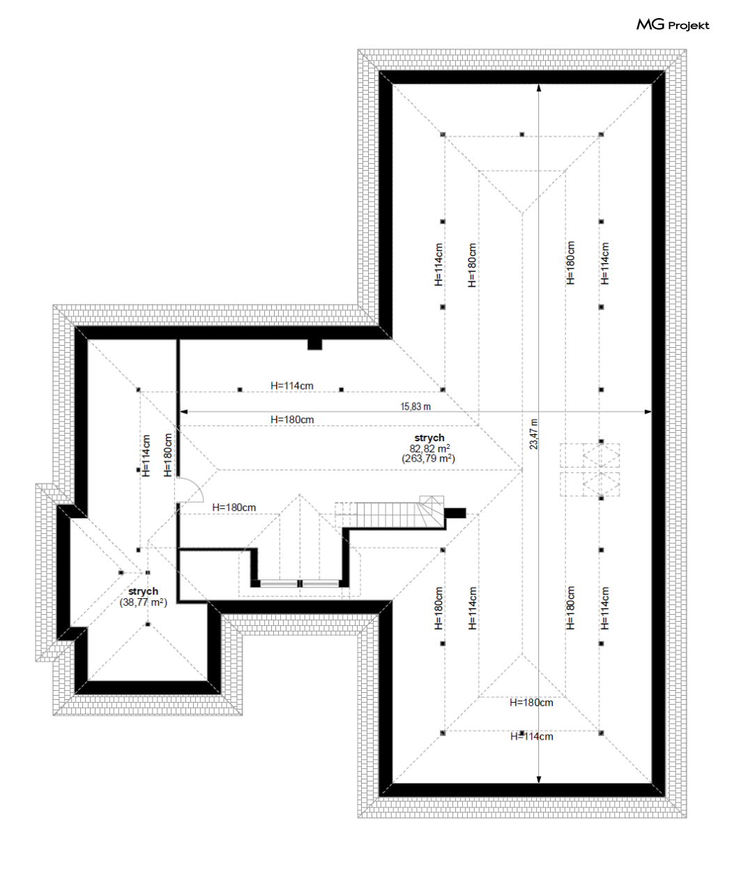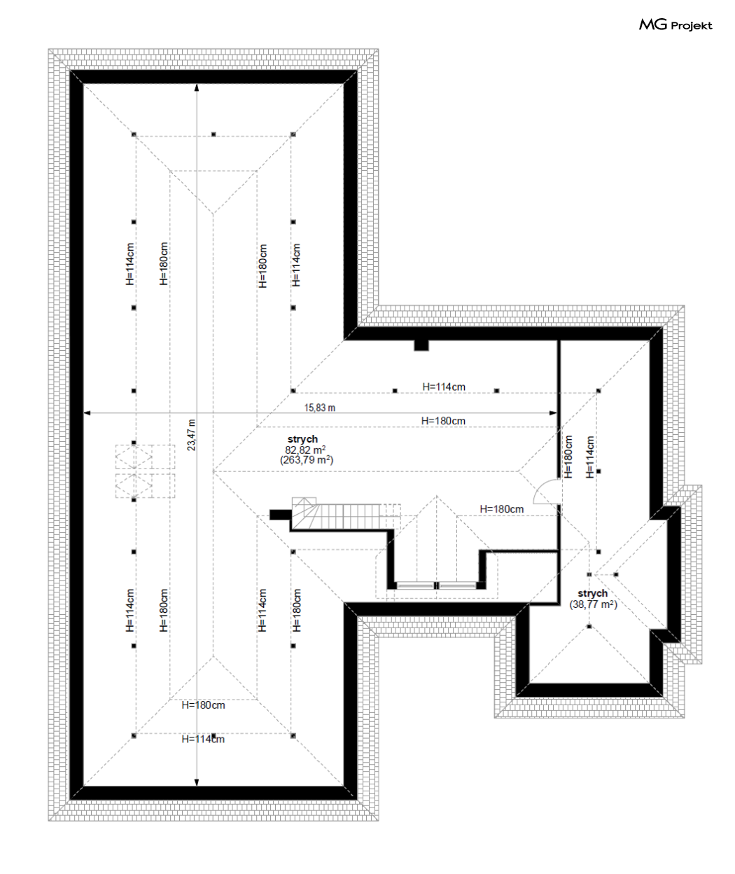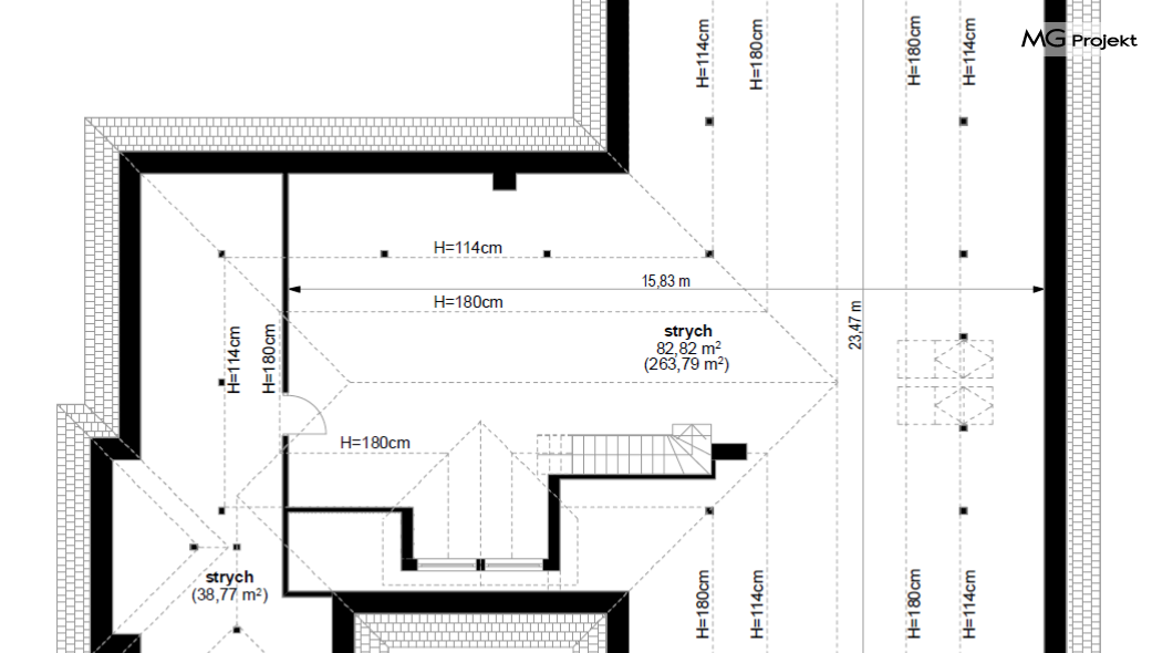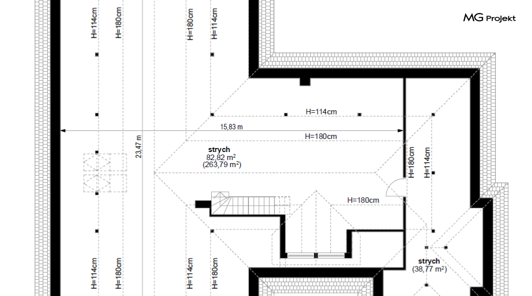 Wysokość wyznaczona od poziomu terenu do najwyżej położonej części dachu (np. kalenicy), zwykle bez uwzględnienia kominów.