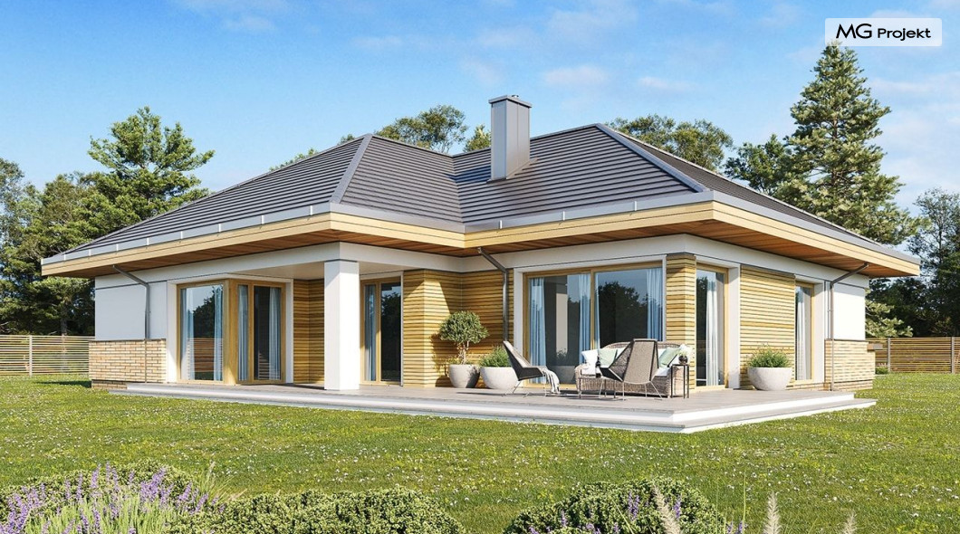 Koszt wzniesienia budynku wraz z pokryciem dachu i stolarką zewnętrzną (okna i drzwi). Bez instalacji, ocieplenia i robót wykończeniowych.