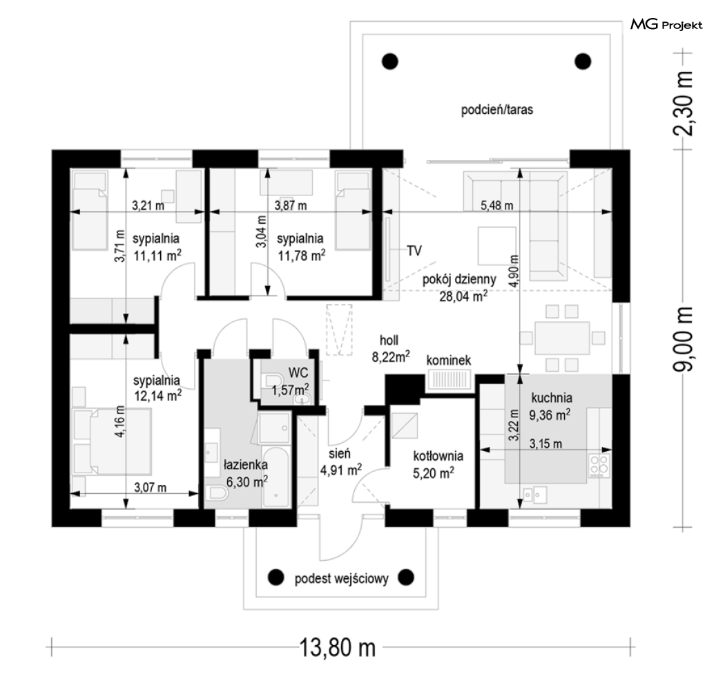 Łączna powierzchnia tzw. pomieszczeń użytkowych. Przede wszystkim nie zalicza się do niej powierzchni garażu, nieużytkowego strychu, piwnicy, kotłowni.