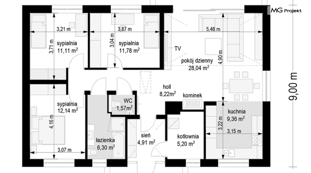 Obejmuje koszt wszystkich robót stanu surowego, wykonania instalacji wewnętrznych oraz robót wykończeniowych.