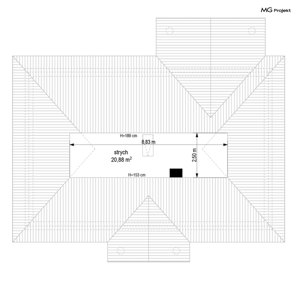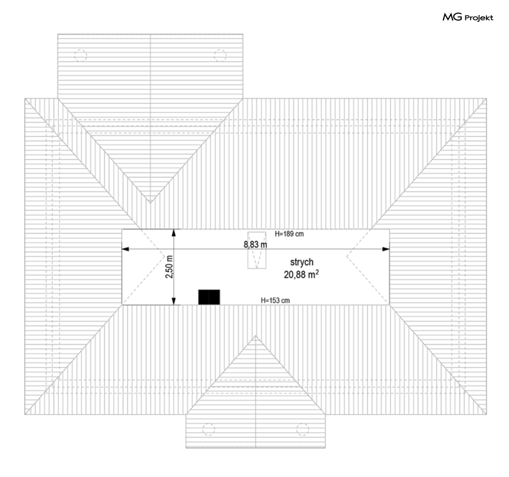 Wysokość wyznaczona od poziomu terenu do najwyżej położonej części dachu (np. kalenicy), zwykle bez uwzględnienia kominów.