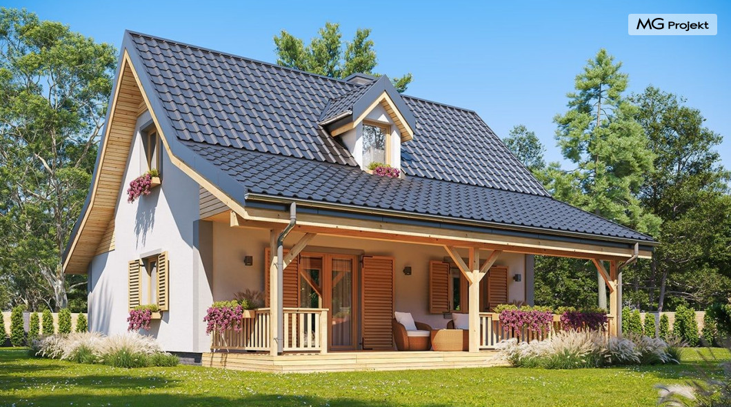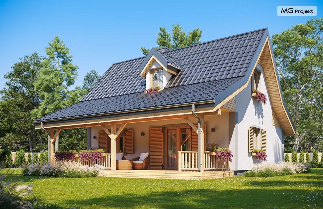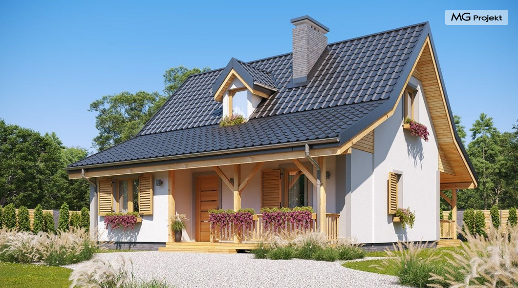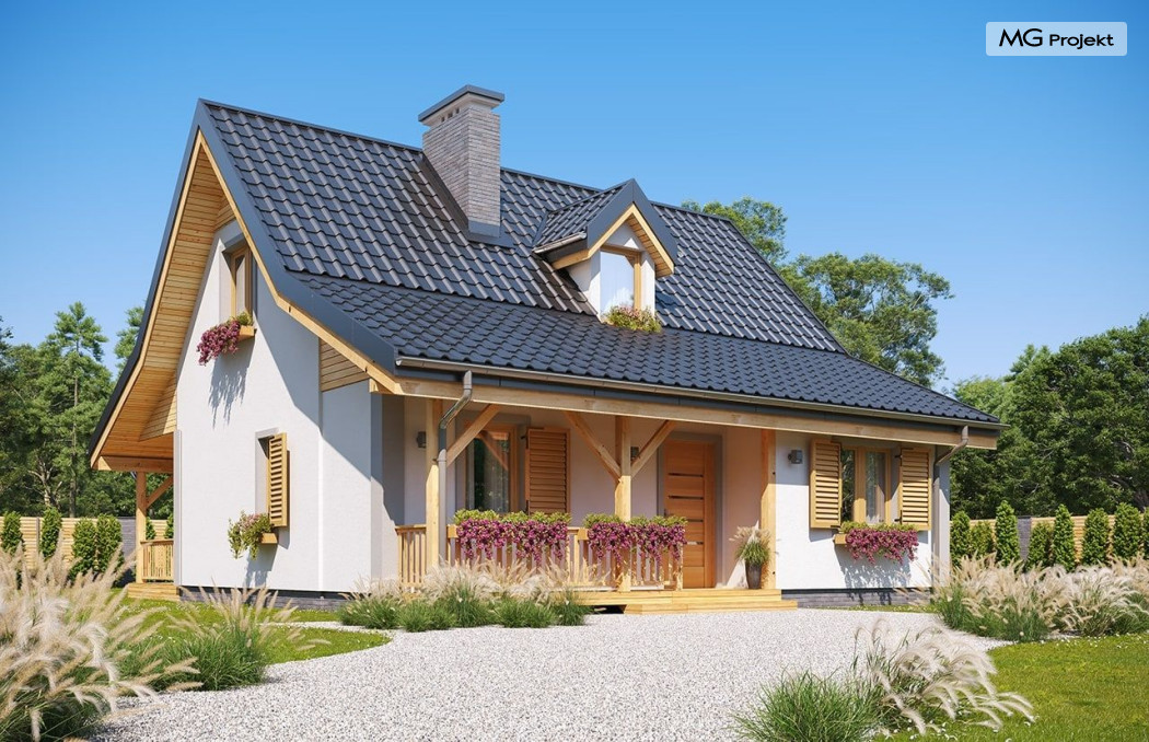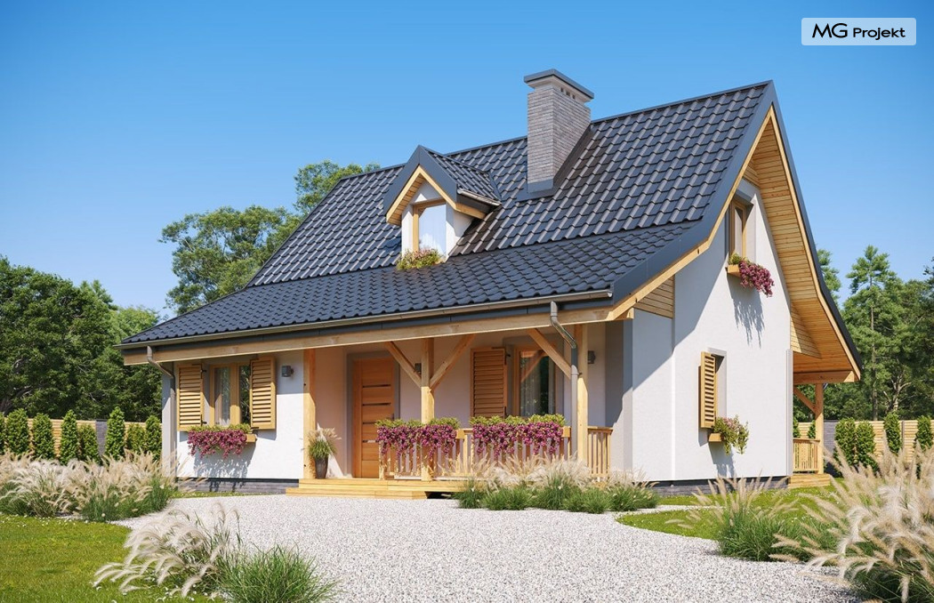 Koszt wzniesienia budynku wraz z pokryciem dachu i stolarką zewnętrzną (okna i drzwi). Bez instalacji, ocieplenia i robót wykończeniowych.