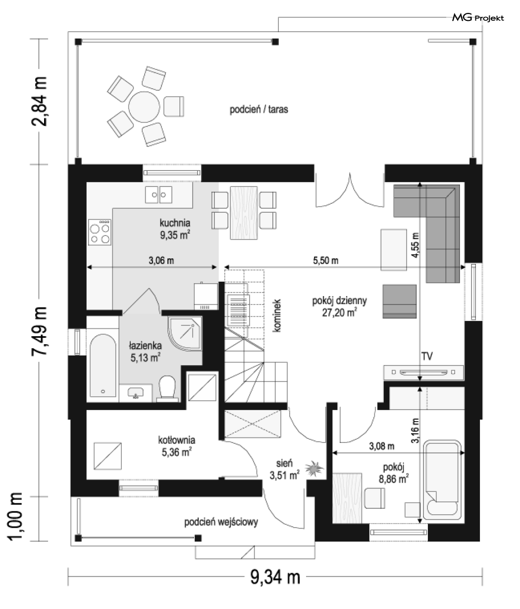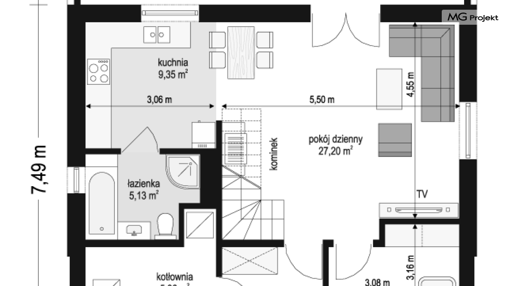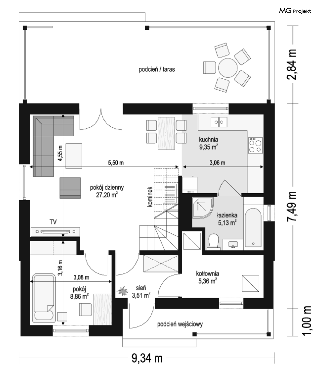 Łączna powierzchnia tzw. pomieszczeń użytkowych. Przede wszystkim nie zalicza się do niej powierzchni garażu, nieużytkowego strychu, piwnicy, kotłowni.
