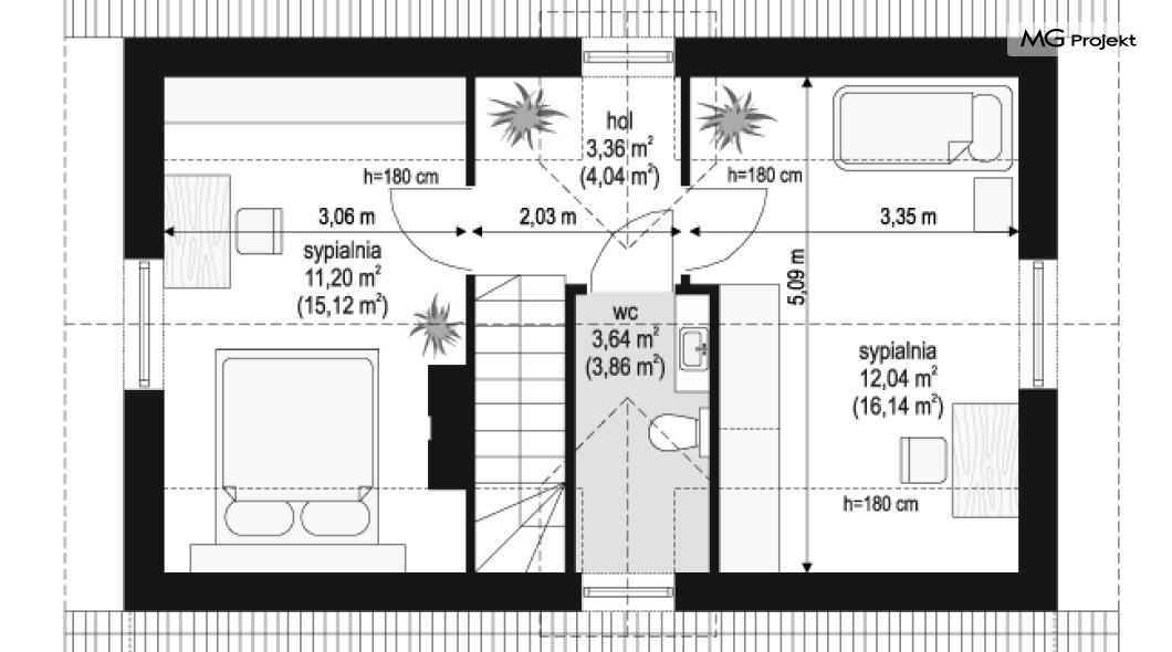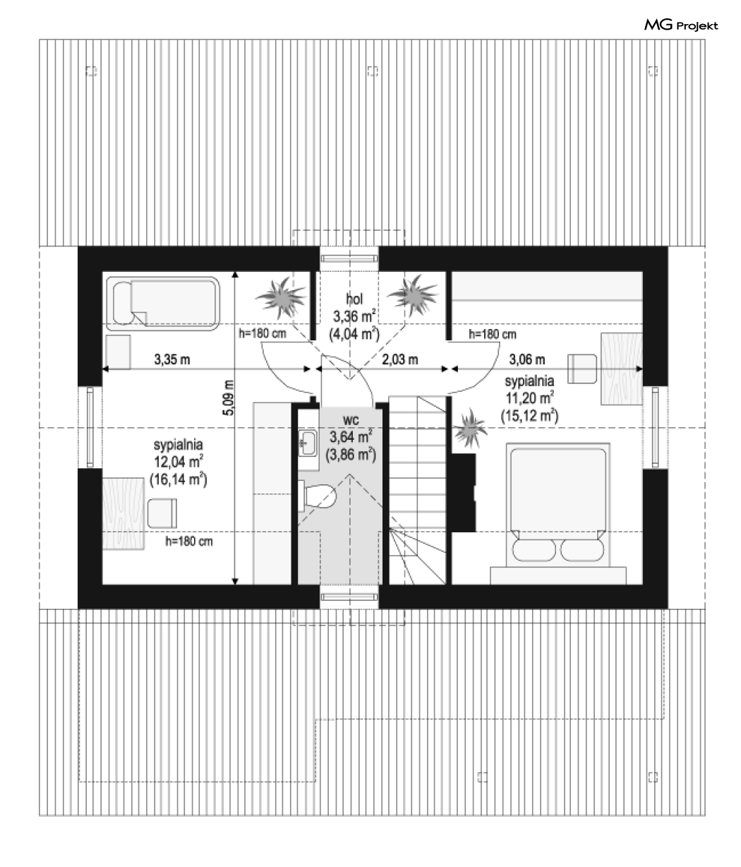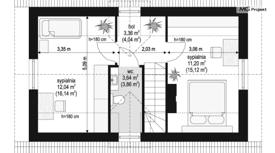 Wysokość wyznaczona od poziomu terenu do najwyżej położonej części dachu (np. kalenicy), zwykle bez uwzględnienia kominów.