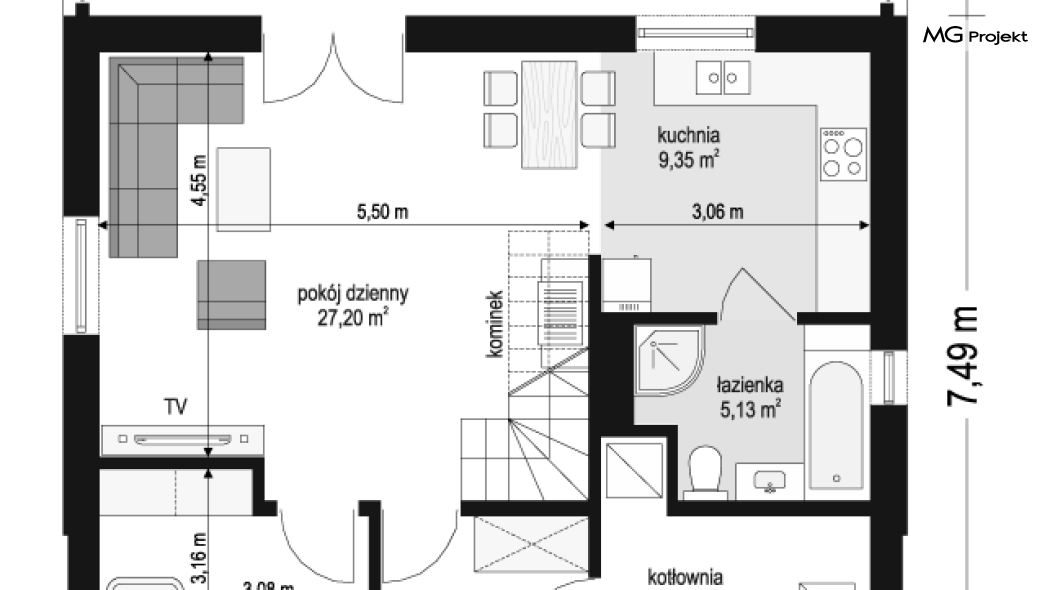 Obejmuje koszt wszystkich robót stanu surowego, wykonania instalacji wewnętrznych oraz robót wykończeniowych.