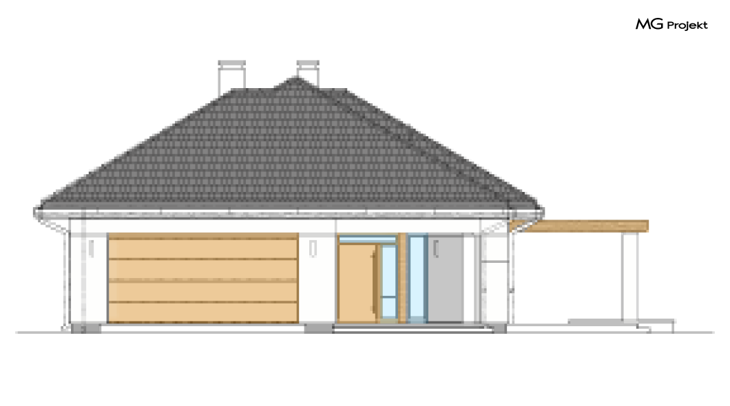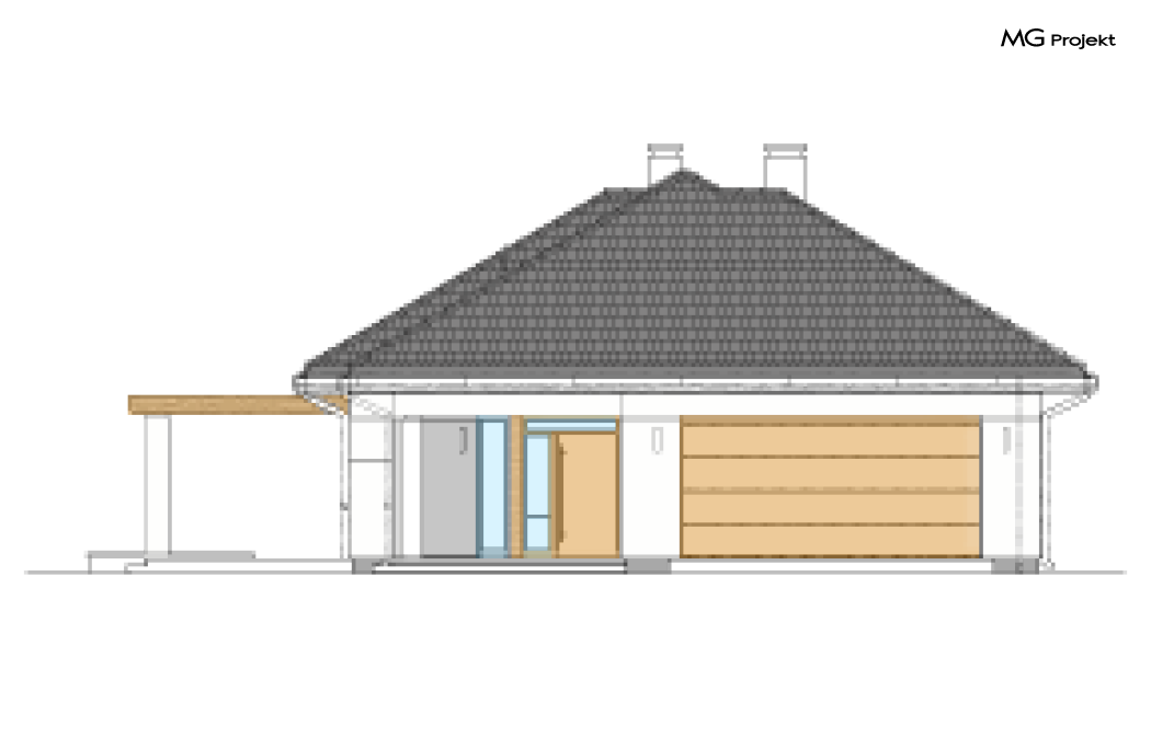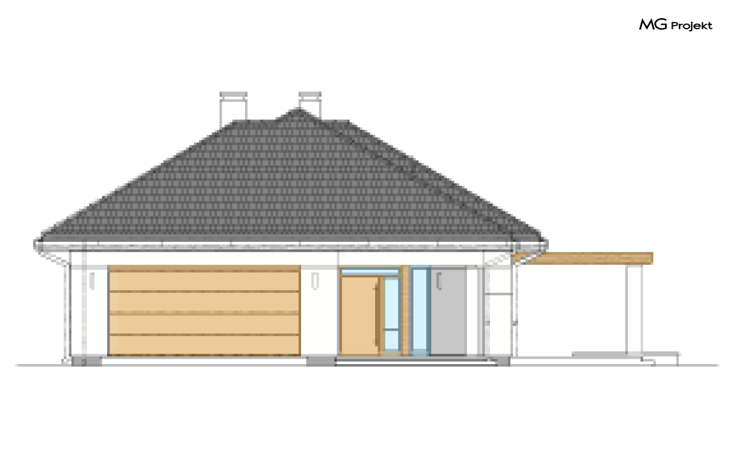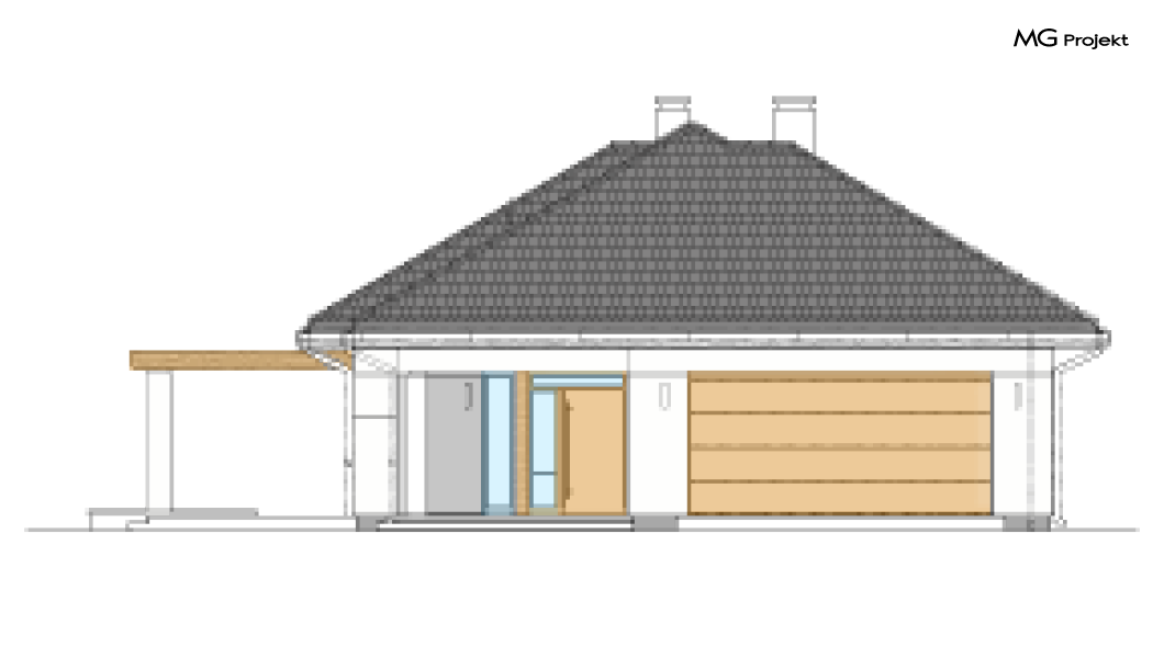 Wariant B z wiązarami prefabrykowanymi (wersja ekonomiczna) zamiast tradycyjnej więźby ciesielskiej, ze zwężonym wykuszem w kuchni o 40 cm.