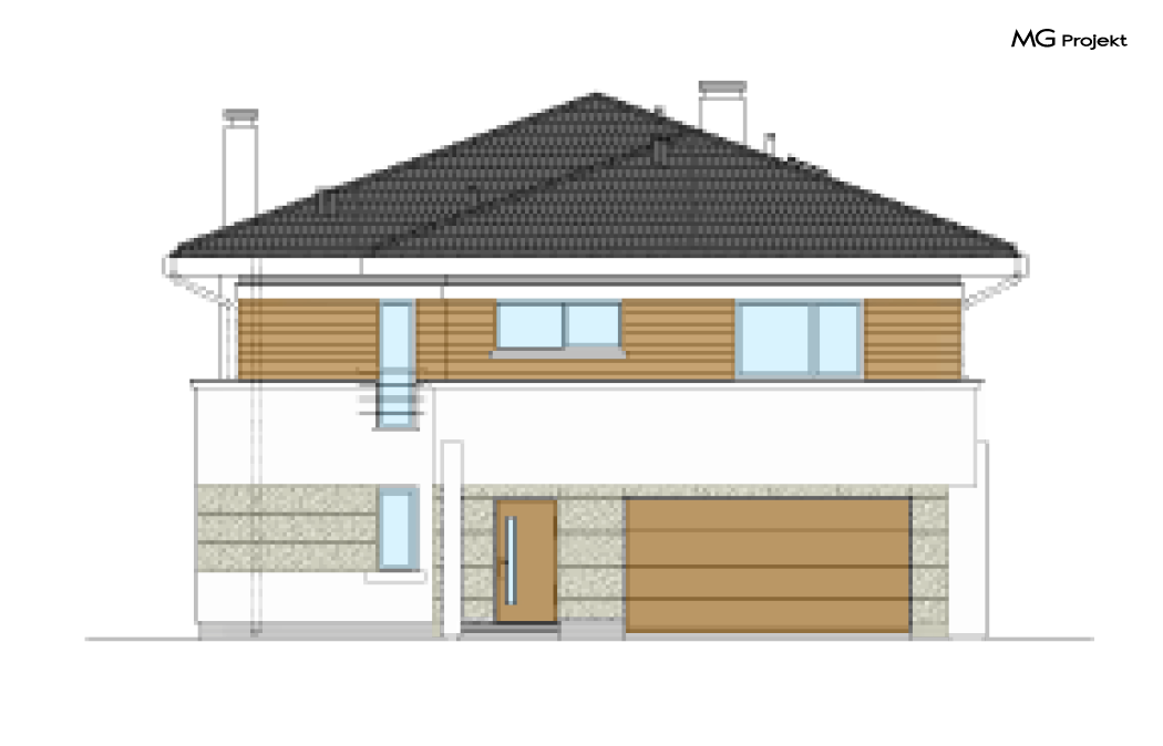 Wariant D ze zmienionym układem pomieszczeń, zmiany w stolarce okiennej, z usuniętym fragmentem balkonu.