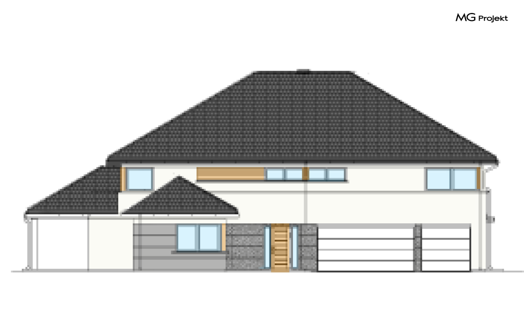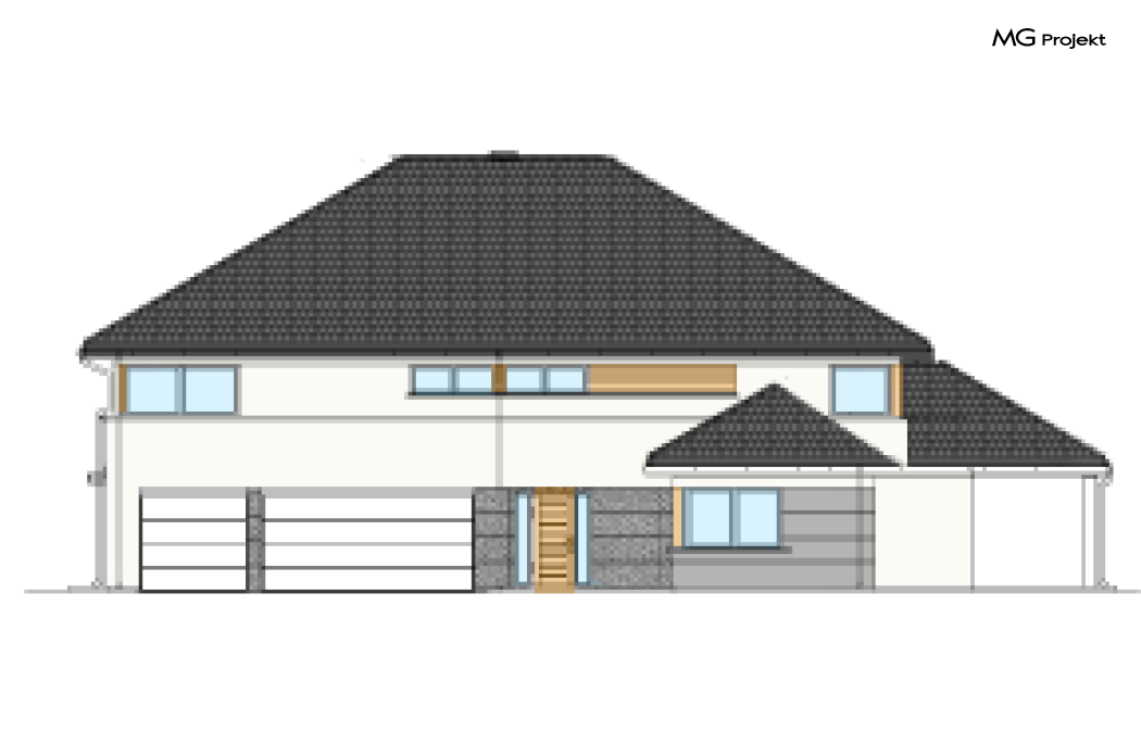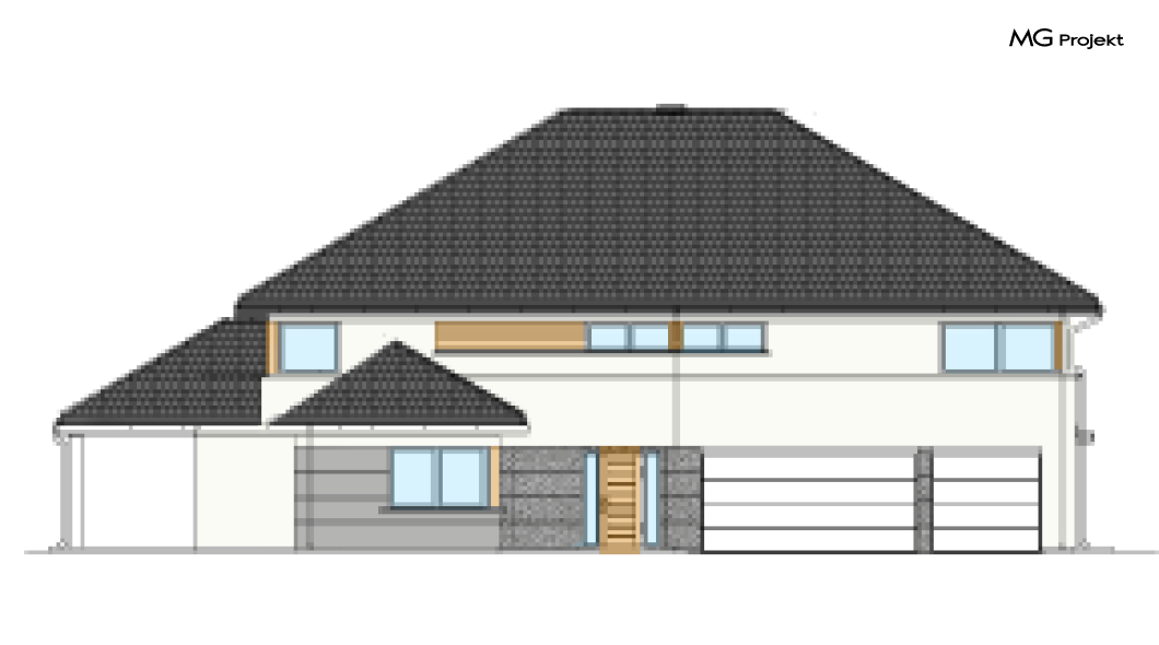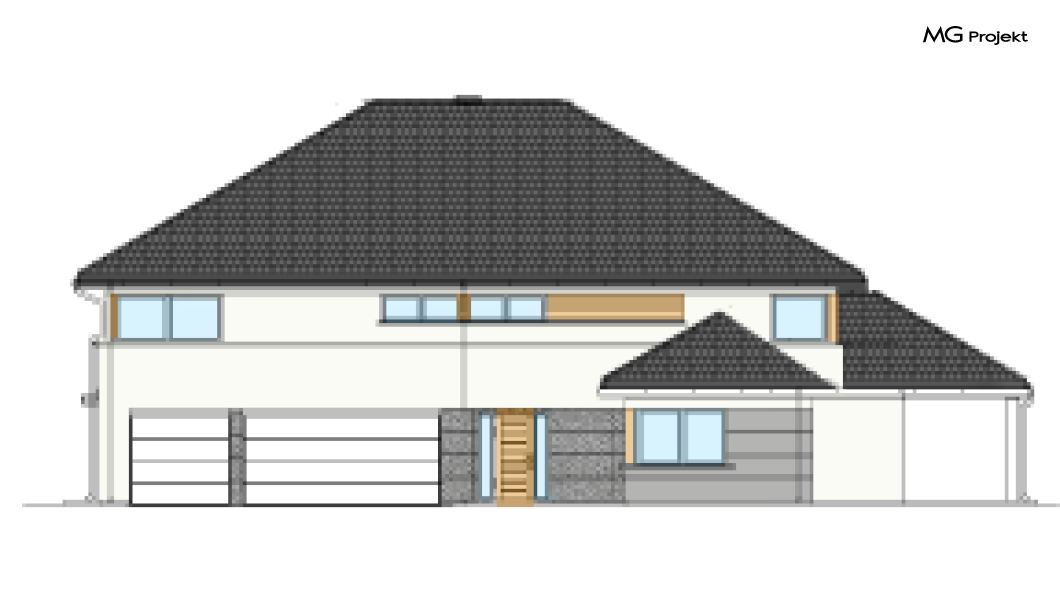 Wariant projektu powiększony, z garażem 3-stanowiskowym z dotatkową wnęką na 4 pojazd lub powierzchnia techniczna, zmiana układu pomieszczeń.