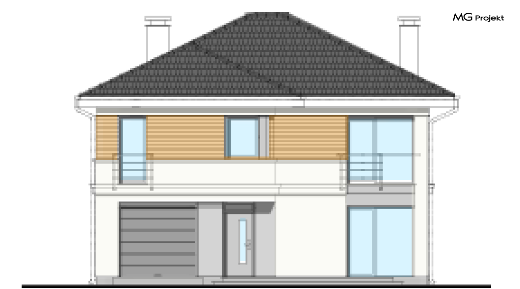 Wariant projektu poszerzony o 1,0 m, zmiana układu pomieszczeń na parterze.