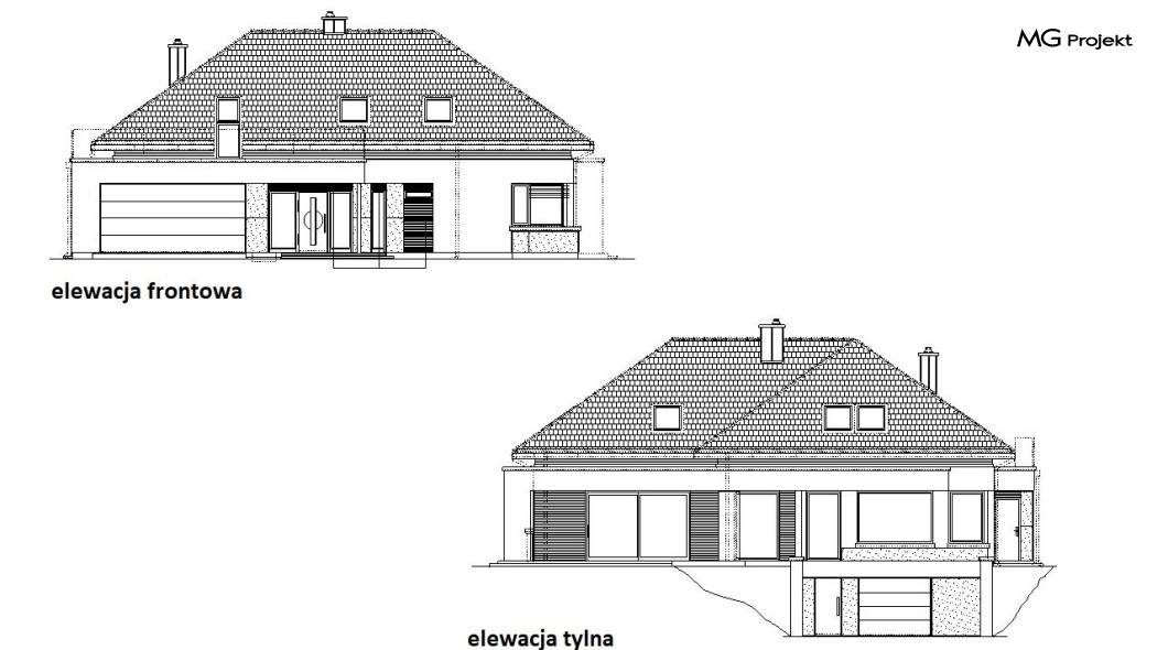 Wariant C z częściowym podpiwniczeniem, zmienionym rozplanowaniem parteru i poddasza, z wyjściem na taras nad garażem.