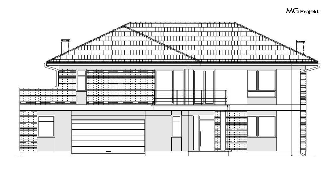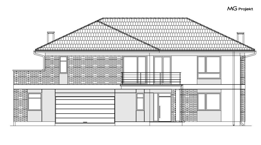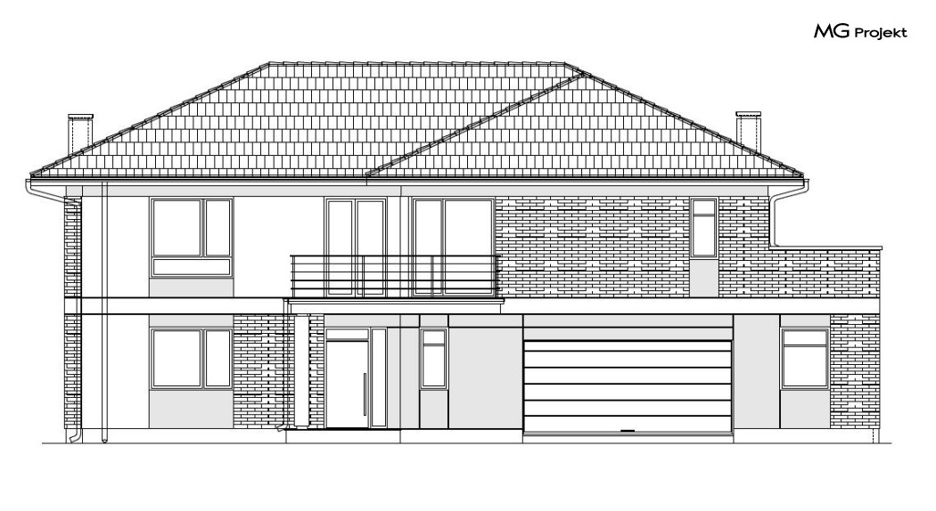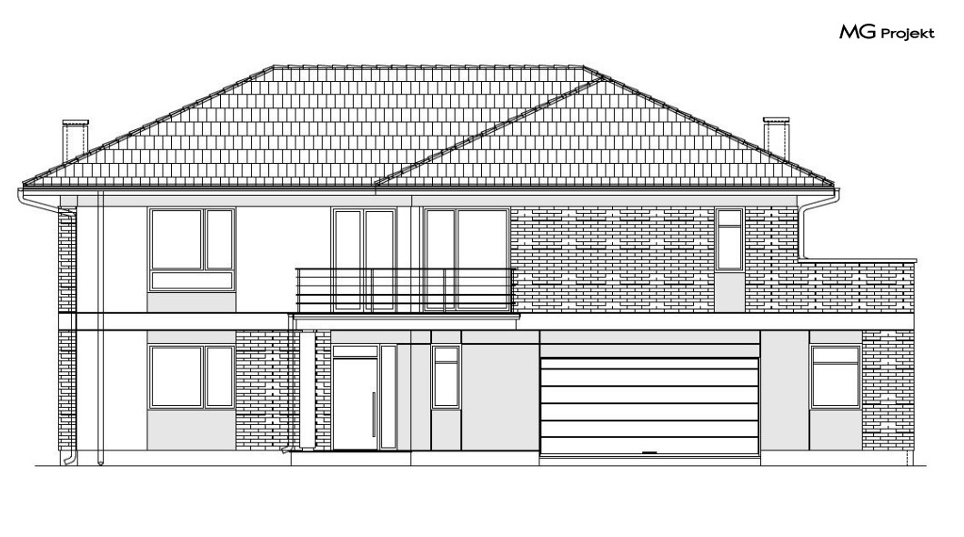 Zmiana stropu na żelbetowy, monolityczny. Powiększenie salonu, zmiana geometrii schodów wewnętrznych, zmiany w programie użytkowym na parterze, powiększenie łazienki ogólnej na piętrze oraz zmiany w lokalizacji łazienki i garderoby przy dużej sypialni. Zmiany w stolarce okiennej oraz projekt elewacji pokrytej płytkami klinkierowymi.
