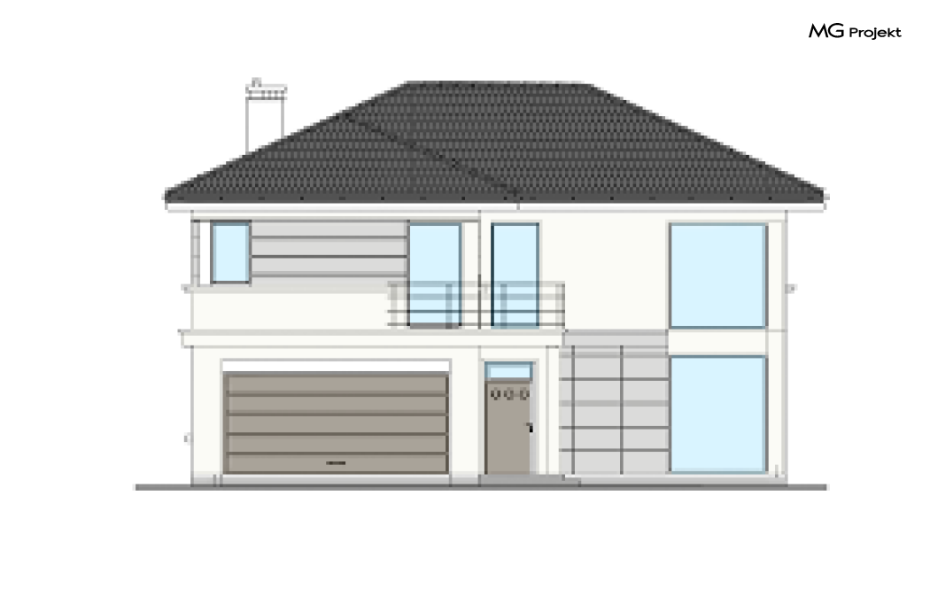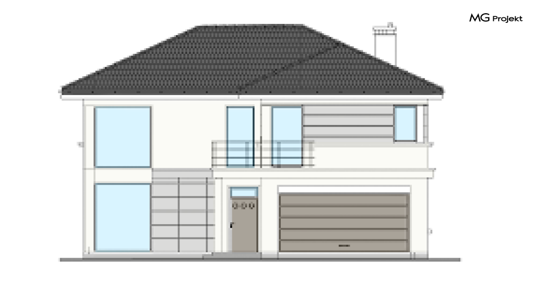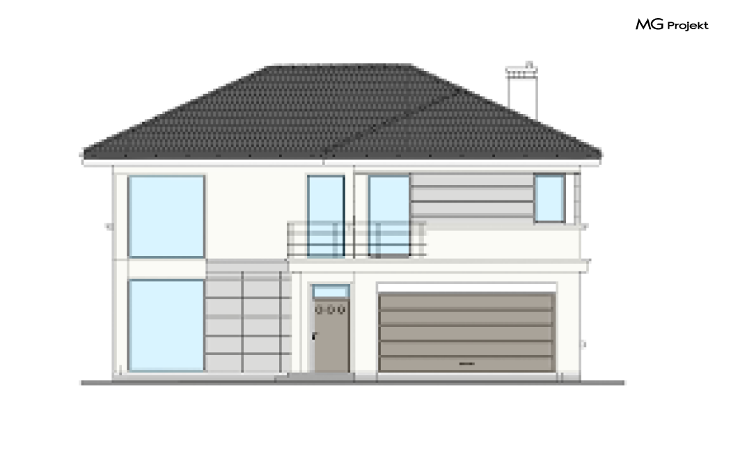 Zmiany względem projektu bazowego: likwidacja kominka, pełne podpiwniczenie budynku, posadowienie budynku na płycie, likwidacja okien w piwnicy, zaprojektowanie pomieszczenia z sauną w piwnicy, zaprojektowanie rolet antywłamaniowych pod nadprożami
