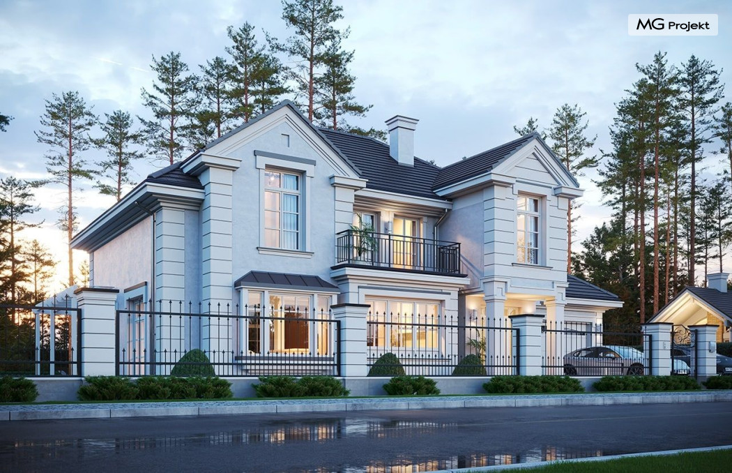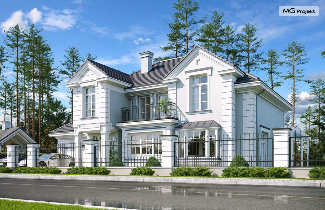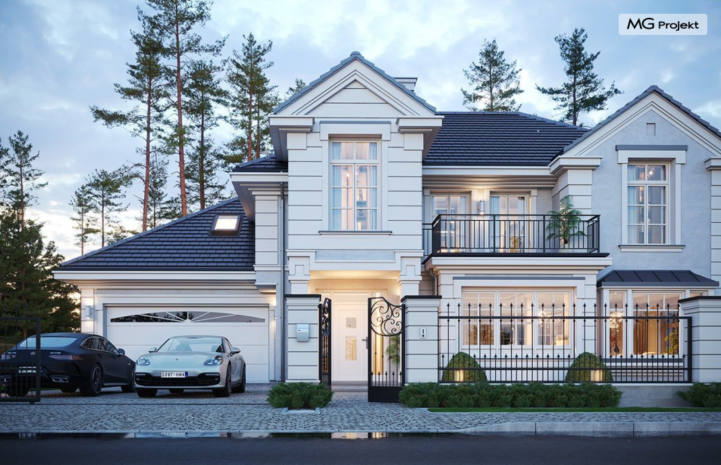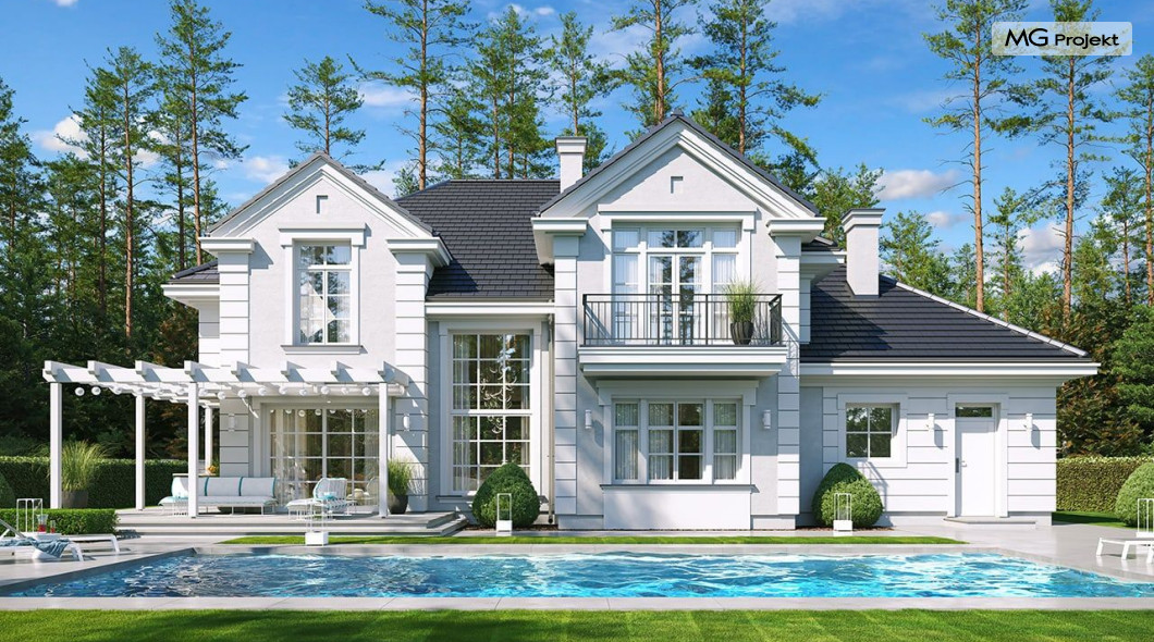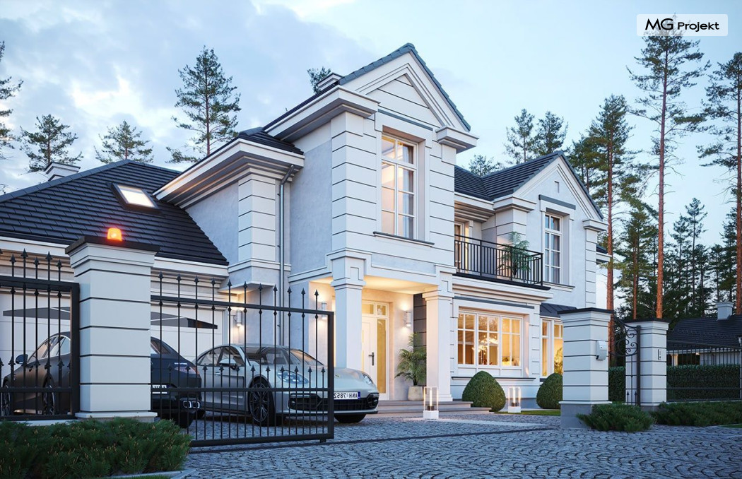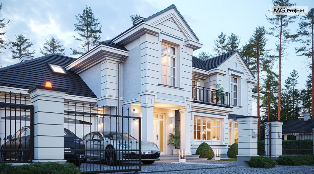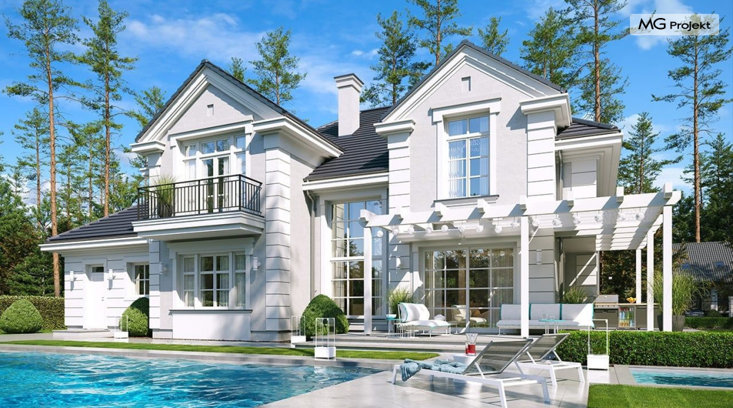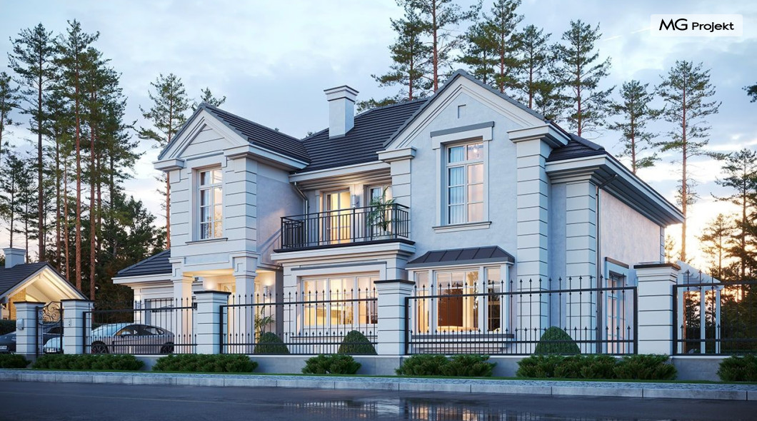 Projekt domu Willa Siedziba 3 to nowa odsłona cieszącego się uznaniem projektu Willa Siedziba. Nowy wariant to zmniejszony o 50 m2 dom, ze zwężoną o 5 metrów szerokością bryły, dzięki czemu budynek zmieści się na węższej 26-metrowej działce. Willa Siedziba 3 to reprezentacyjna miejska willa, nawiązująca swoją formą i stylistyką do wczesno dwudziestowiecznych rezydencji, jakie możemy spotkać do dziś w prestiżowych willowych dzielnicach większych miast. Dom ma powierzchnię użytkową wynoszącą ca 240 m2 i jest przeznaczony dla 4-6cioosobowej rodziny. Bryłę budynku zaprojektowano na prostokątnym planie i składa się z dwóch części - wyżej mieszkalnej, przykrytej czterospadowym dachem, oraz niższej bryły garażu. Dach budynku został osadzony na wysokości umożliwiającej interpretację tego budynku jako dom z poddaszem użytkowym. Główna bryła urozmaicona została czterema masywnymi lukarnami, skrywającymi w swojej szerokości pokoje górnej kondygnacji. Od strony elewacji fontowej willi mamy reprezentacyjne wejście z szerokimi drzwiami z naświetlami. Następnie dwa wykusze - kuchenny i jadalni - oba o innej formie, ale harmonizujące ze sobą. Dalej balkon z ozdobną balustradą, dostępny z holu-saloniku piętra, oraz wspomniane dwie lukarny pokoi piętra spinające całą kompozycję bryły. Trochę wycofany garaż nie narzuca się i pozwala znaleźć miejsce na swobodne parkowanie aut przed drzwiami garażowymi. Strona ogrodowa to jeszcze bardziej urozmaicona fasada. Mamy tutaj wystające lukarny pięter, między nimi dwupiętrowe okno salonu, balkon sypialni master, oraz przepiękną pergolę przykrywającą częściowo taras. Wnętrze domu na parterze to przede wszystkim duża przestrzeń dzienna połączonych pomieszczeń salonu, kuchni i jadalni, tworząca razem ponad 80-metrową powierzchnię. Dodatkowym urozmaiceniem jest tutaj otwarcie przestrzenne - pustka nad salonem, połączona z antresolą piętra, gdzie znajduje się hol-salonik. Do domu wchodzimy przez wygodny przedsionek z szatnią, do holu z reprezentacyjnymi schodami, a dalej do przestrzeni dziennej. Dodatkowe pomieszczenia na parterze to oczywiście duży garaż z pomieszczeniem technicznym, oraz oddzielony akustycznie gabinet. Na piętrze zaprojektowano 4 pokoje sypialne, w tym apartament master z oddzielną łazienką i garderobami. Willa Siedziba 3 została zaprojektowana jako dom energooszczędny, z dobrej jakości materiałów, z dobrą izolacją termiczną i z nowoczesnymi instalacjami. Budynek mimo skomplikowanej formy wykonano w tradycyjnej technologii, z rozwiązaniami spotykanymi na każdej budowie. Budowa budynku nie powinna być problematyczna dla fachowego wykonawcy. Willa Siedziba 3 to propozycja dla Inwestorów marzących o budowie prawdziwego pełnokrwistego domu o odpowiedniej skali, dającego przestrzeń do komfortowego życia, marzących o realizacji projektu nietuzinkowego o ponadczasowej stylistyce. Zapraszamy !