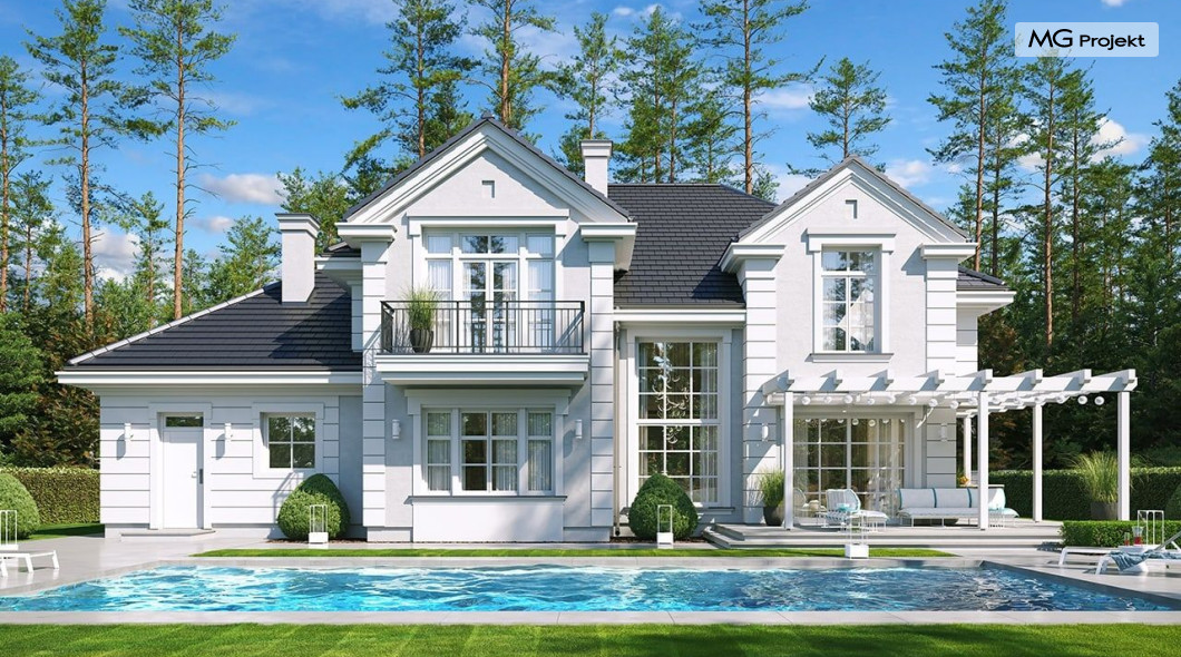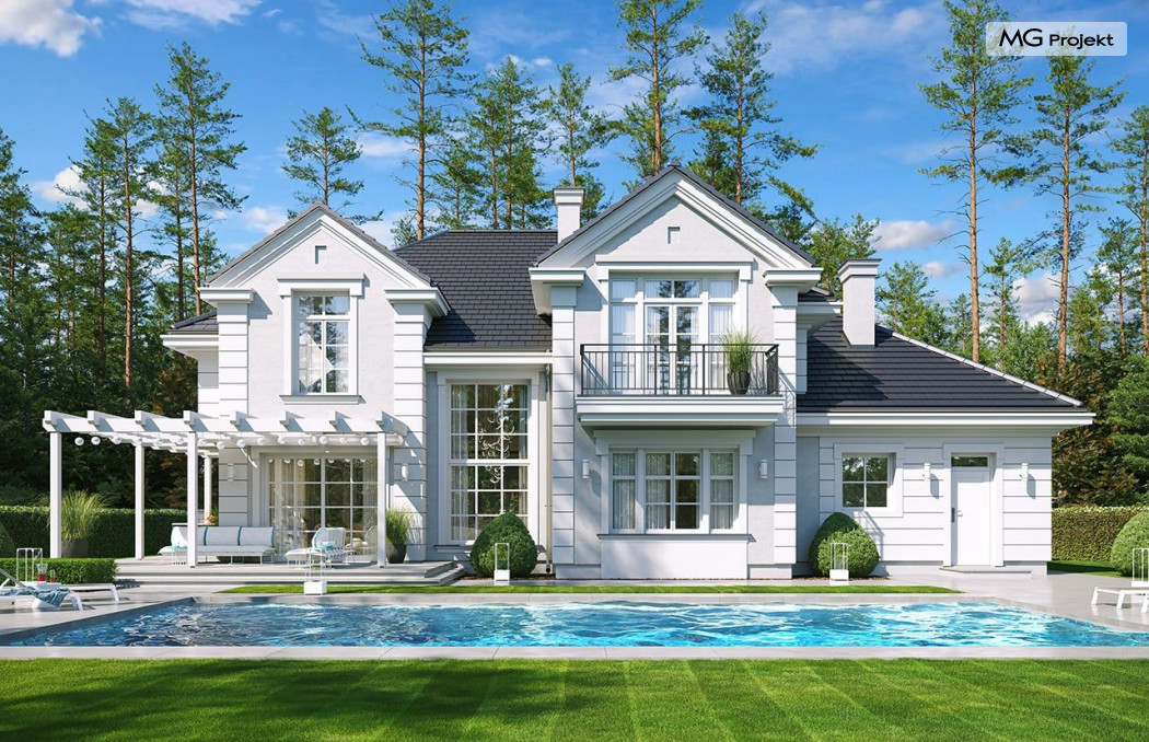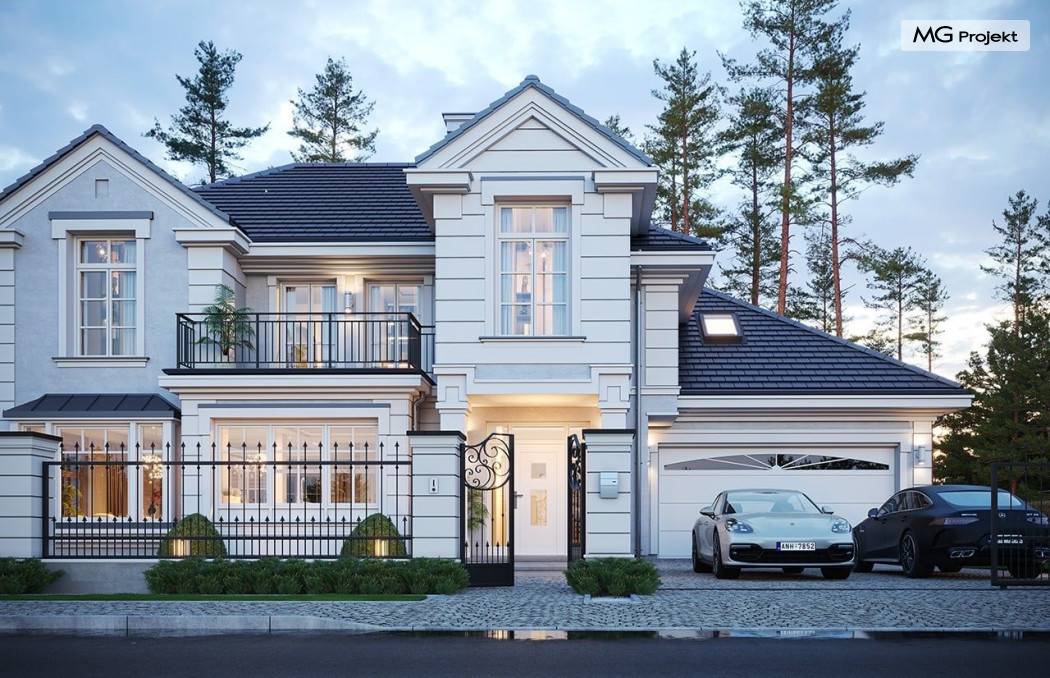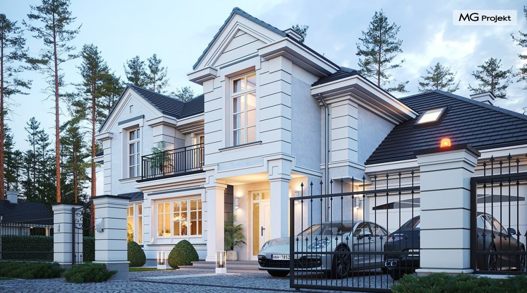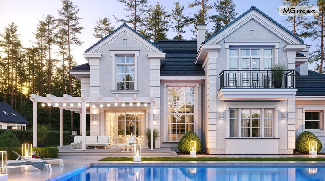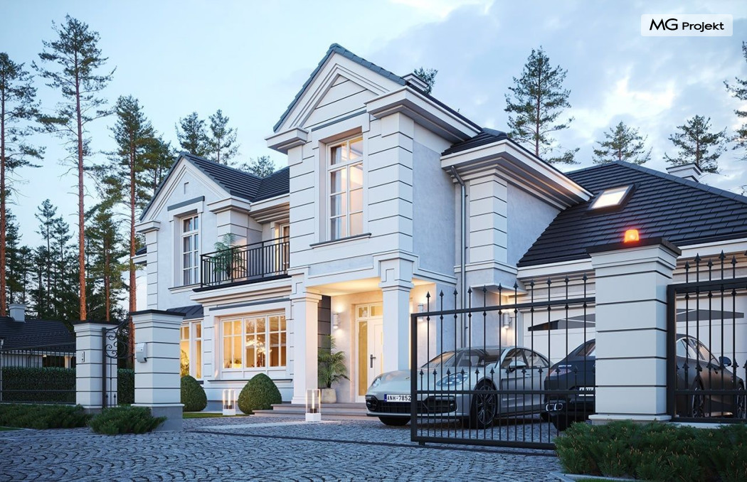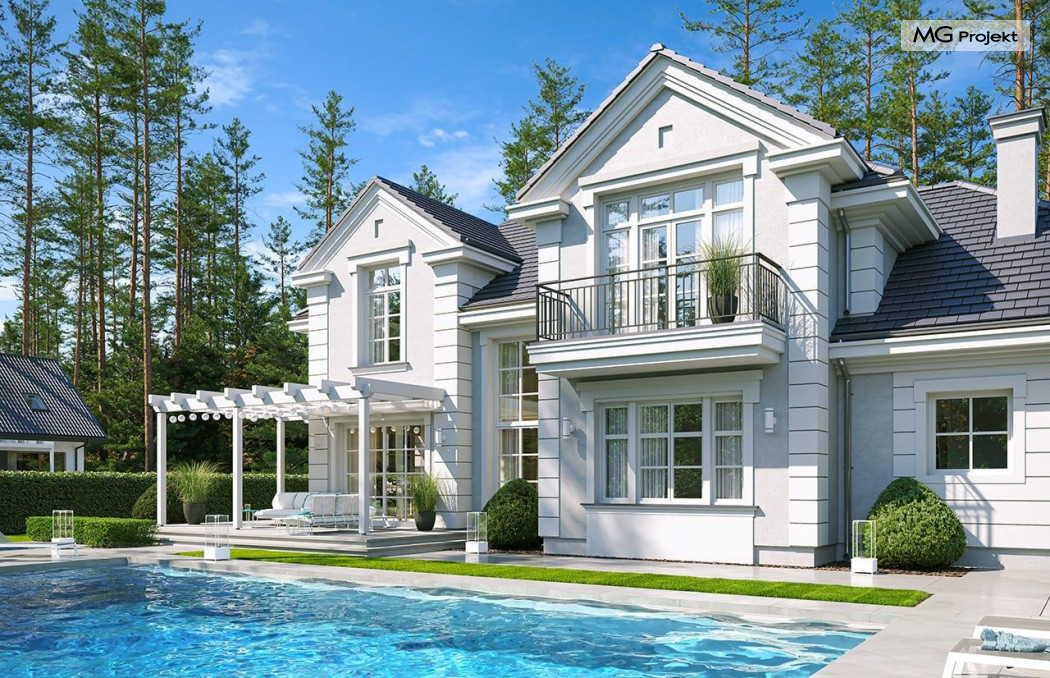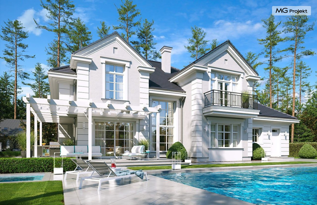 Projekt domu Willa Siedziba 3 to nowa odsłona cieszącego się uznaniem projektu Willa Siedziba. Nowy wariant to zmniejszony o 50 m2 dom, ze zwężoną o 5 metrów szerokością bryły, dzięki czemu budynek zmieści się na węższej 26-metrowej działce. Willa Siedziba 3 to reprezentacyjna miejska willa, nawiązująca swoją formą i stylistyką do wczesno dwudziestowiecznych rezydencji, jakie możemy spotkać do dziś w prestiżowych willowych dzielnicach większych miast. Dom ma powierzchnię użytkową wynoszącą ca 240 m2 i jest przeznaczony dla 4-6cioosobowej rodziny. Bryłę budynku zaprojektowano na prostokątnym planie i składa się z dwóch części - wyżej mieszkalnej, przykrytej czterospadowym dachem, oraz niższej bryły garażu. Dach budynku został osadzony na wysokości umożliwiającej interpretację tego budynku jako dom z poddaszem użytkowym. Główna bryła urozmaicona została czterema masywnymi lukarnami, skrywającymi w swojej szerokości pokoje górnej kondygnacji. Od strony elewacji fontowej willi mamy reprezentacyjne wejście z szerokimi drzwiami z naświetlami. Następnie dwa wykusze - kuchenny i jadalni - oba o innej formie, ale harmonizujące ze sobą. Dalej balkon z ozdobną balustradą, dostępny z holu-saloniku piętra, oraz wspomniane dwie lukarny pokoi piętra spinające całą kompozycję bryły. Trochę wycofany garaż nie narzuca się i pozwala znaleźć miejsce na swobodne parkowanie aut przed drzwiami garażowymi. Strona ogrodowa to jeszcze bardziej urozmaicona fasada. Mamy tutaj wystające lukarny pięter, między nimi dwupiętrowe okno salonu, balkon sypialni master, oraz przepiękną pergolę przykrywającą częściowo taras. Wnętrze domu na parterze to przede wszystkim duża przestrzeń dzienna połączonych pomieszczeń salonu, kuchni i jadalni, tworząca razem ponad 80-metrową powierzchnię. Dodatkowym urozmaiceniem jest tutaj otwarcie przestrzenne - pustka nad salonem, połączona z antresolą piętra, gdzie znajduje się hol-salonik. Do domu wchodzimy przez wygodny przedsionek z szatnią, do holu z reprezentacyjnymi schodami, a dalej do przestrzeni dziennej. Dodatkowe pomieszczenia na parterze to oczywiście duży garaż z pomieszczeniem technicznym, oraz oddzielony akustycznie gabinet. Na piętrze zaprojektowano 4 pokoje sypialne, w tym apartament master z oddzielną łazienką i garderobami. Willa Siedziba 3 została zaprojektowana jako dom energooszczędny, z dobrej jakości materiałów, z dobrą izolacją termiczną i z nowoczesnymi instalacjami. Budynek mimo skomplikowanej formy wykonano w tradycyjnej technologii, z rozwiązaniami spotykanymi na każdej budowie. Budowa budynku nie powinna być problematyczna dla fachowego wykonawcy. Willa Siedziba 3 to propozycja dla Inwestorów marzących o budowie prawdziwego pełnokrwistego domu o odpowiedniej skali, dającego przestrzeń do komfortowego życia, marzących o realizacji projektu nietuzinkowego o ponadczasowej stylistyce. Zapraszamy !